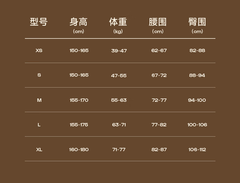 China (cm) 160-165/84-86 165-170 / 88-90 167-172 / 92-96 168-173 / 98-102 170-176 / 106-110