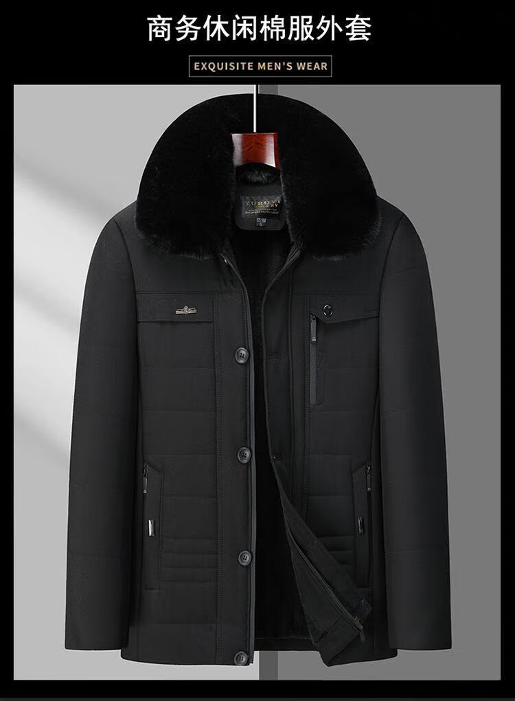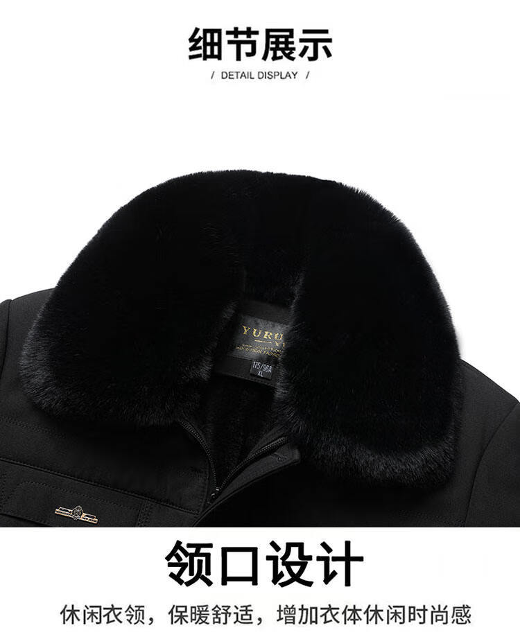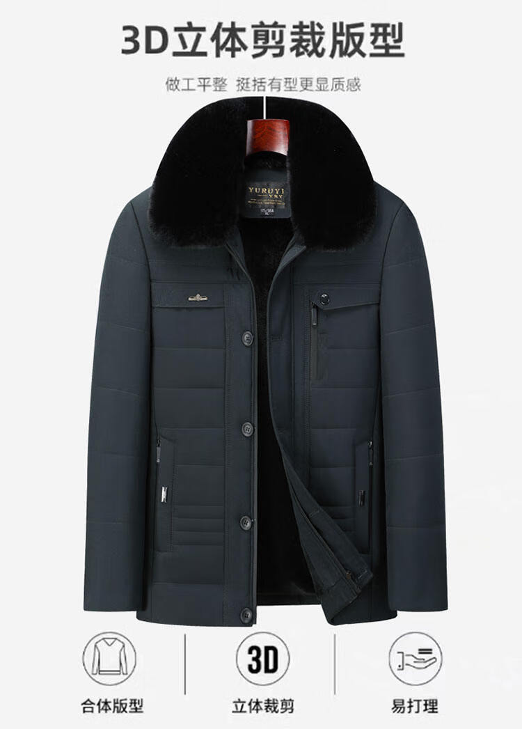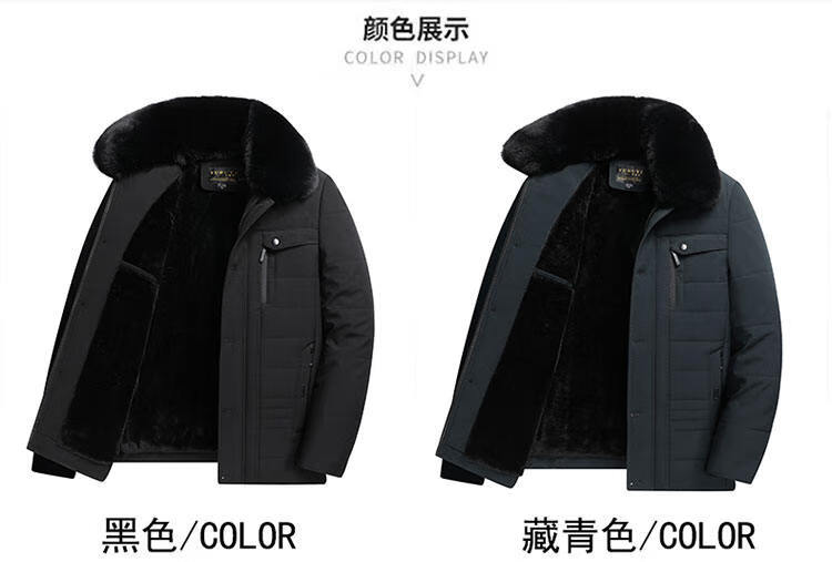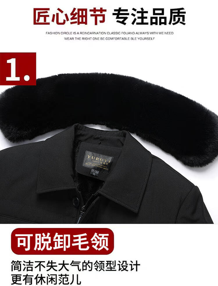 Men's winter warm cotton coat for middle-aged and elderly men's removable large fur collar velvet thickened coat for the elderly Navy XL Recommended 115-130 Jin Jin equals 0.5 kg