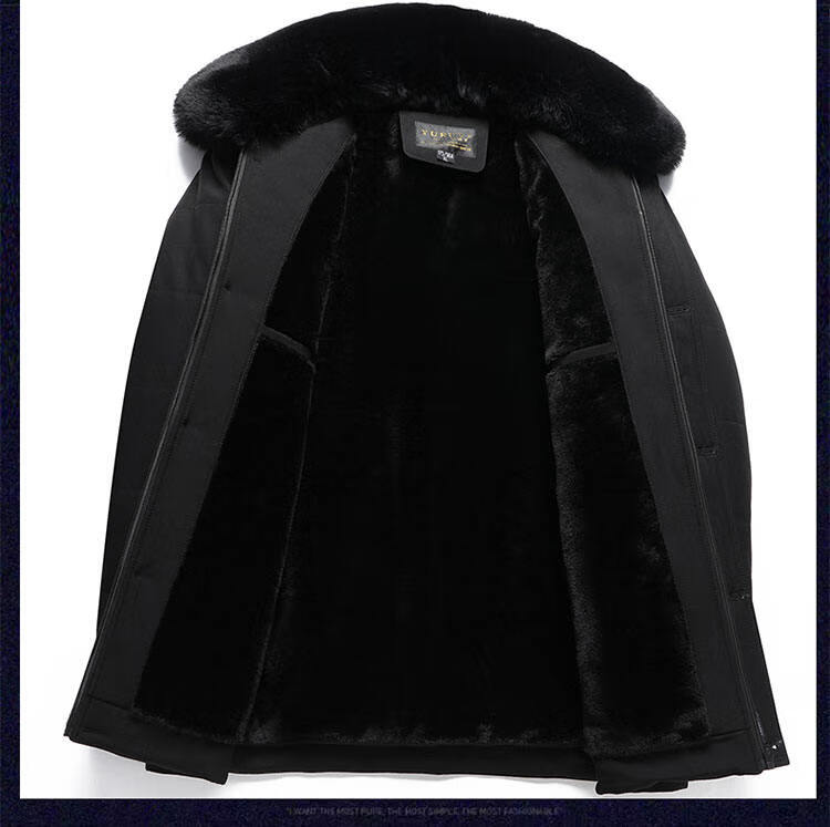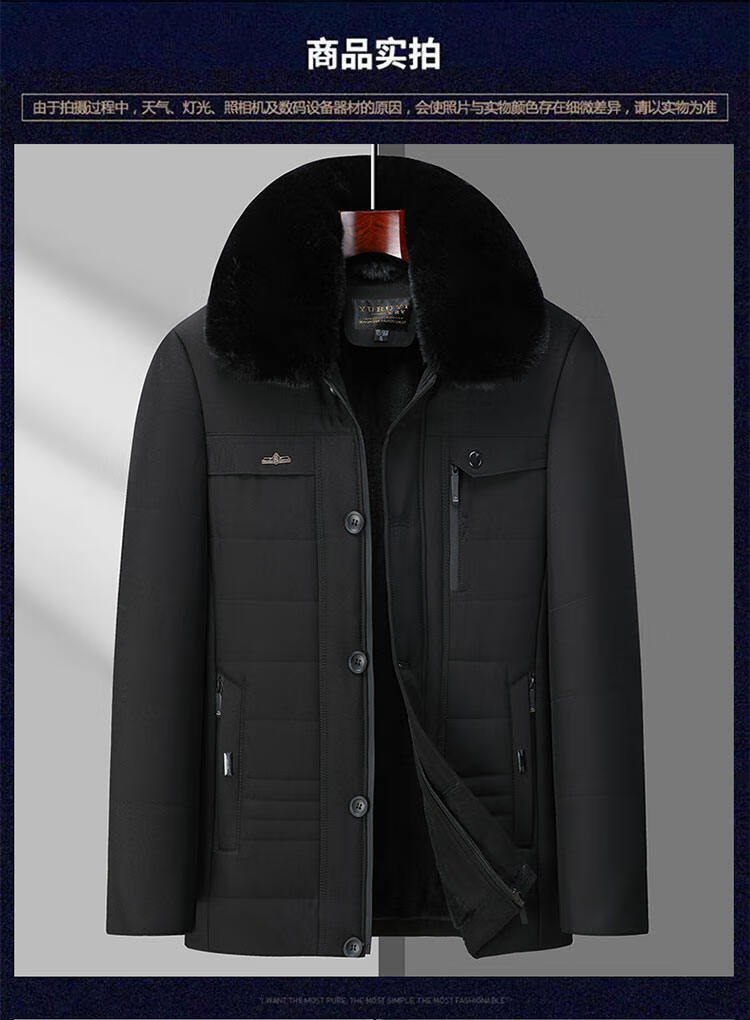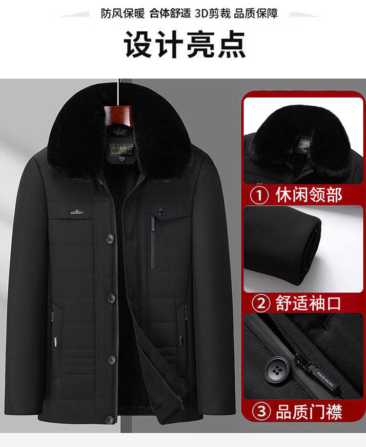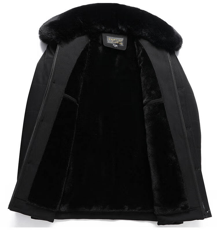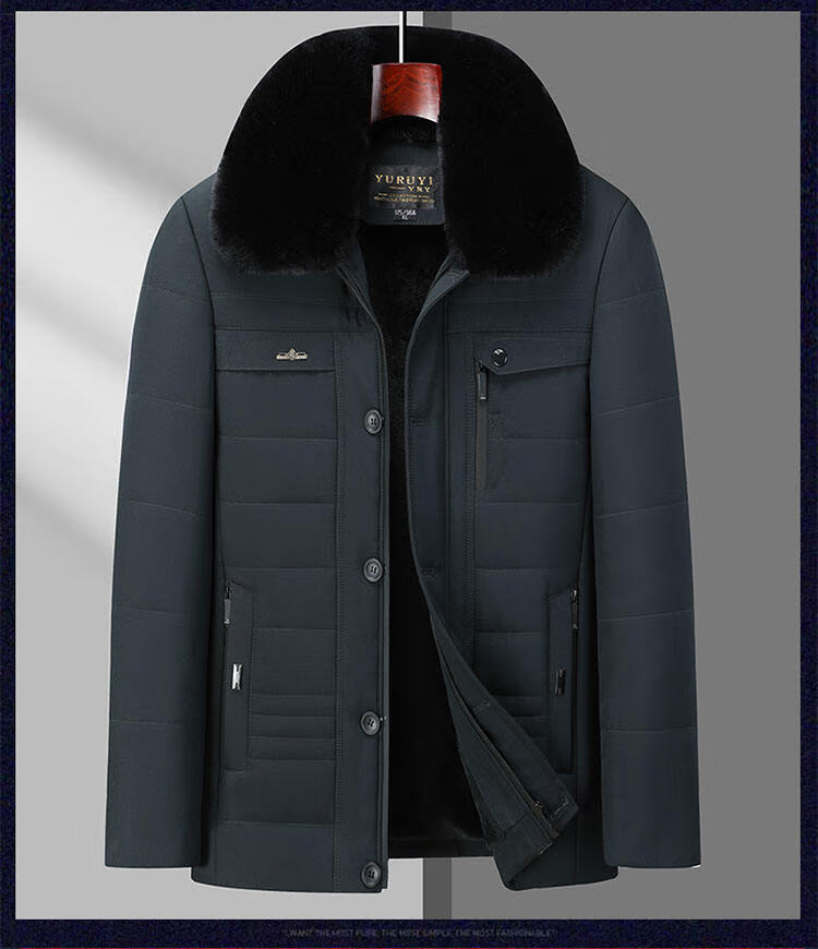 Men's winter warm cotton coat for middle-aged and elderly men's removable large fur collar velvet thickened coat for the elderly Navy XL Recommended 115-130 Jin Jin equals 0.5 kg