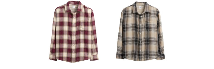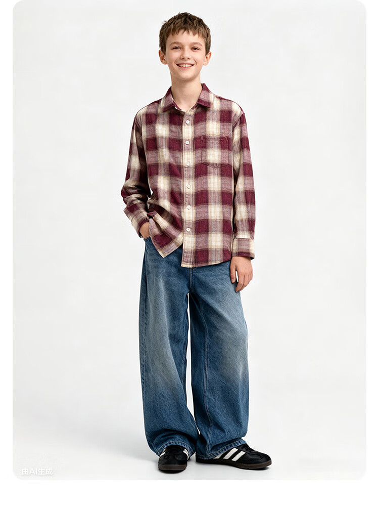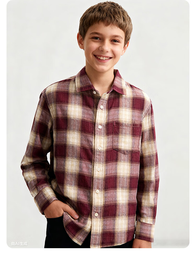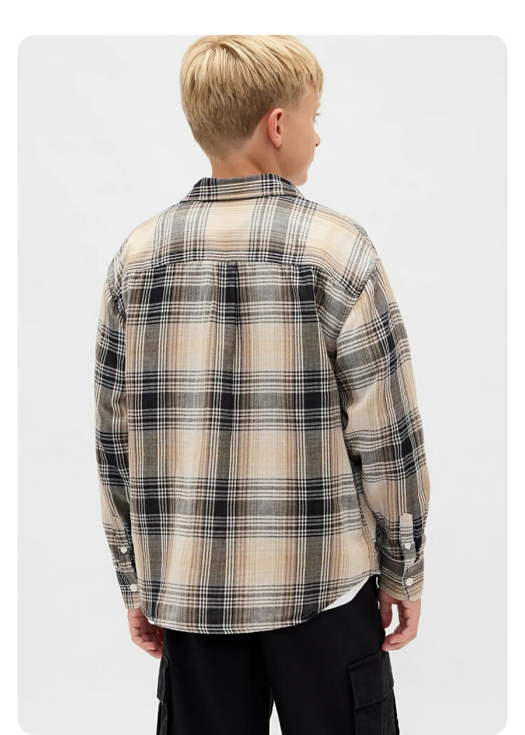 Gap Boys 2025 Autumn New Cotton Flannel Plaid Lapel Shirt Children's Clothing American Version Maroon Plaid 140/72 (10-11 years old)