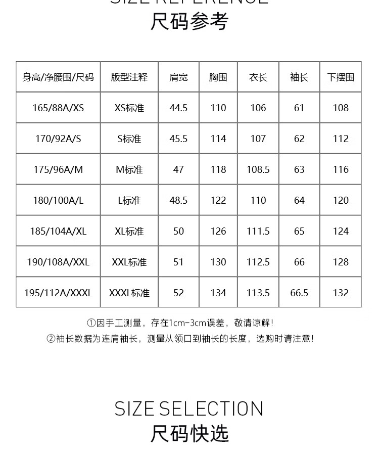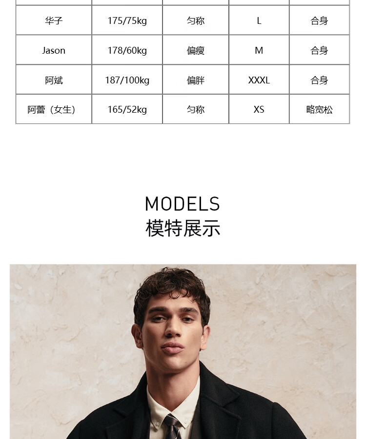 China (cm) 165 / 88-90 170 / 96-98 175 / 108-110 180 / 118-122 185 / 126-130