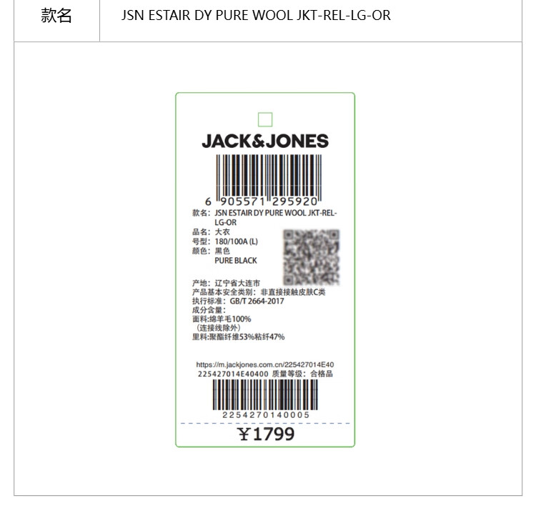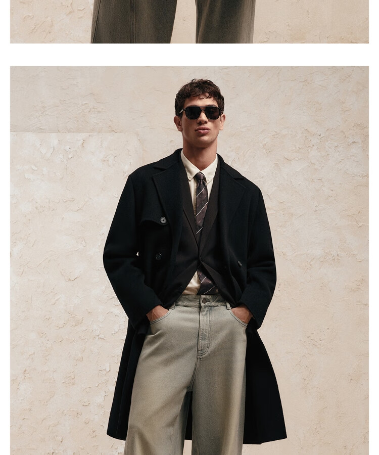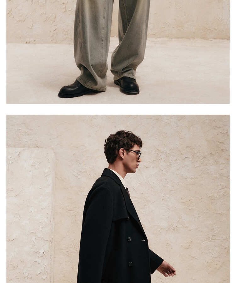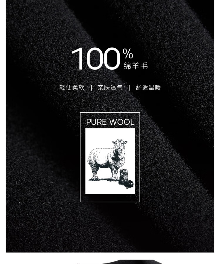 JACK&JONES Men's 25th Autumn and Winter Double-sided Woolen Coat Men's Mid-Length 100% Wool Business Casual Woolen Jacket E40 Black L (180)
