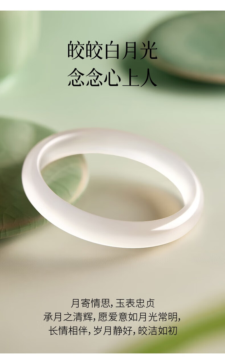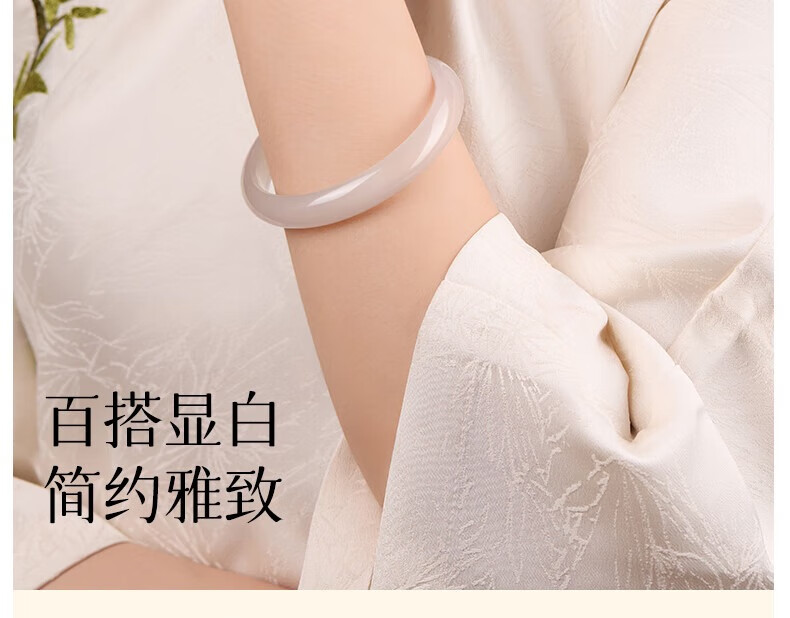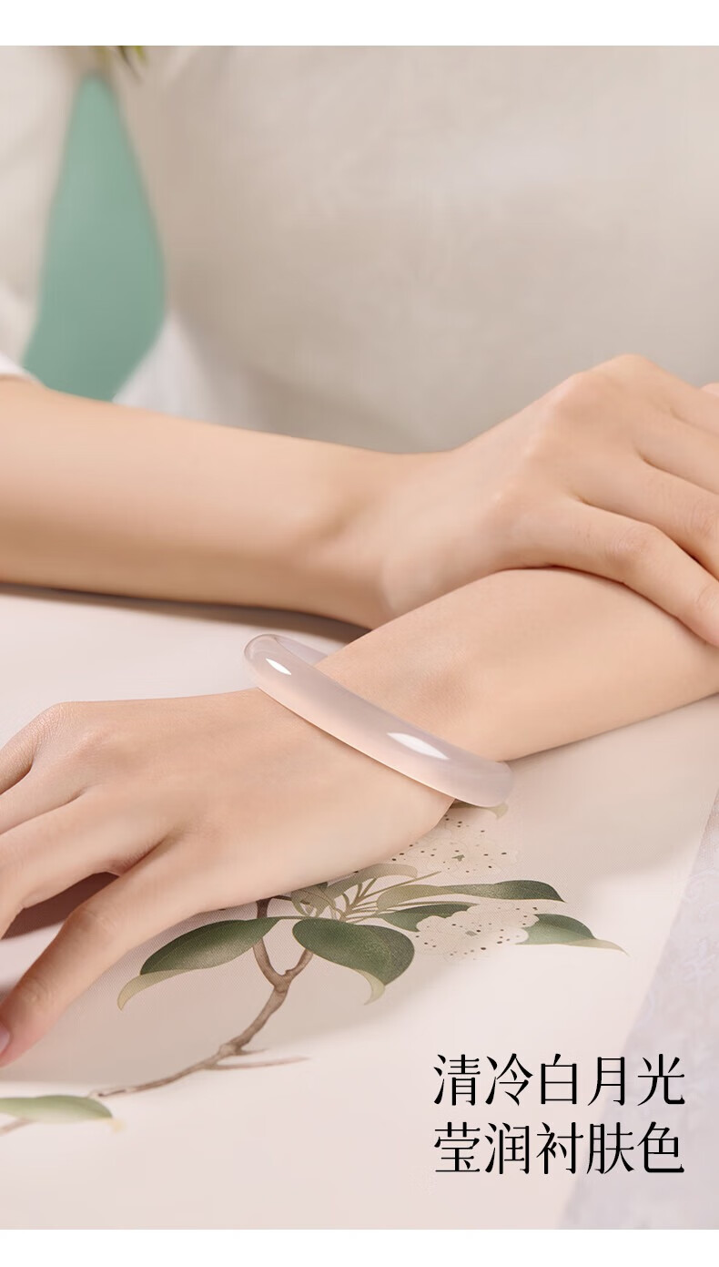 Lao Fengxiang's premium ice-transparent white moonlight jade bracelet for women, wide chalcedony bracelet, jade bracelet jewelry, birthday gift for girlfriend and wife. Shipped by Jingdong Bakura * same day/next day delivery - premium ice-transparent white moonlight bracelet, 58# ring, suitable for 105-115 Jin Jin equals 0.5 kg