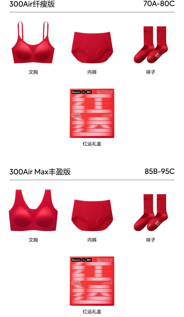 Jiao Nei Liu Haocun's same style red plan 3 series no size women's underwear bra zodiac year of the horse lucky gift box spokesperson's same style slim version good luck red one size