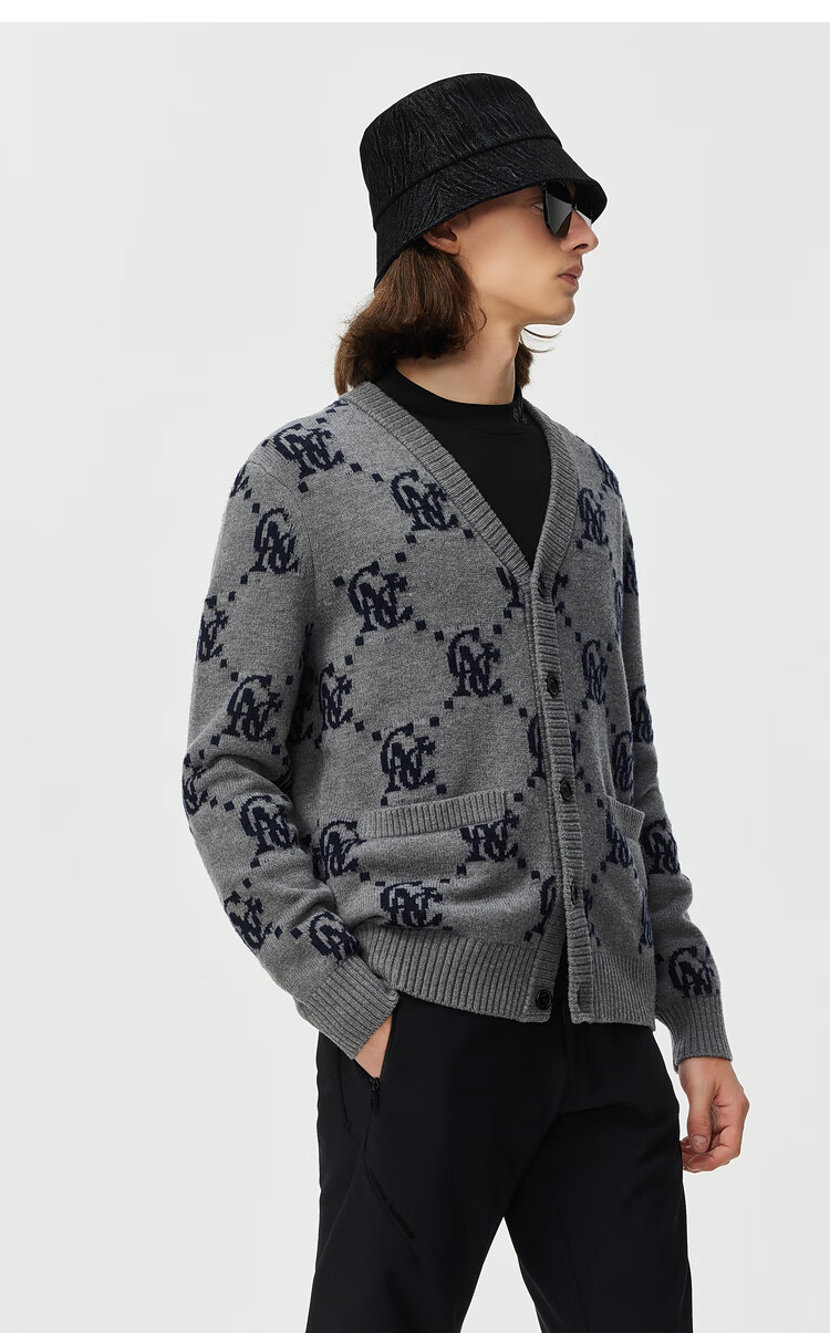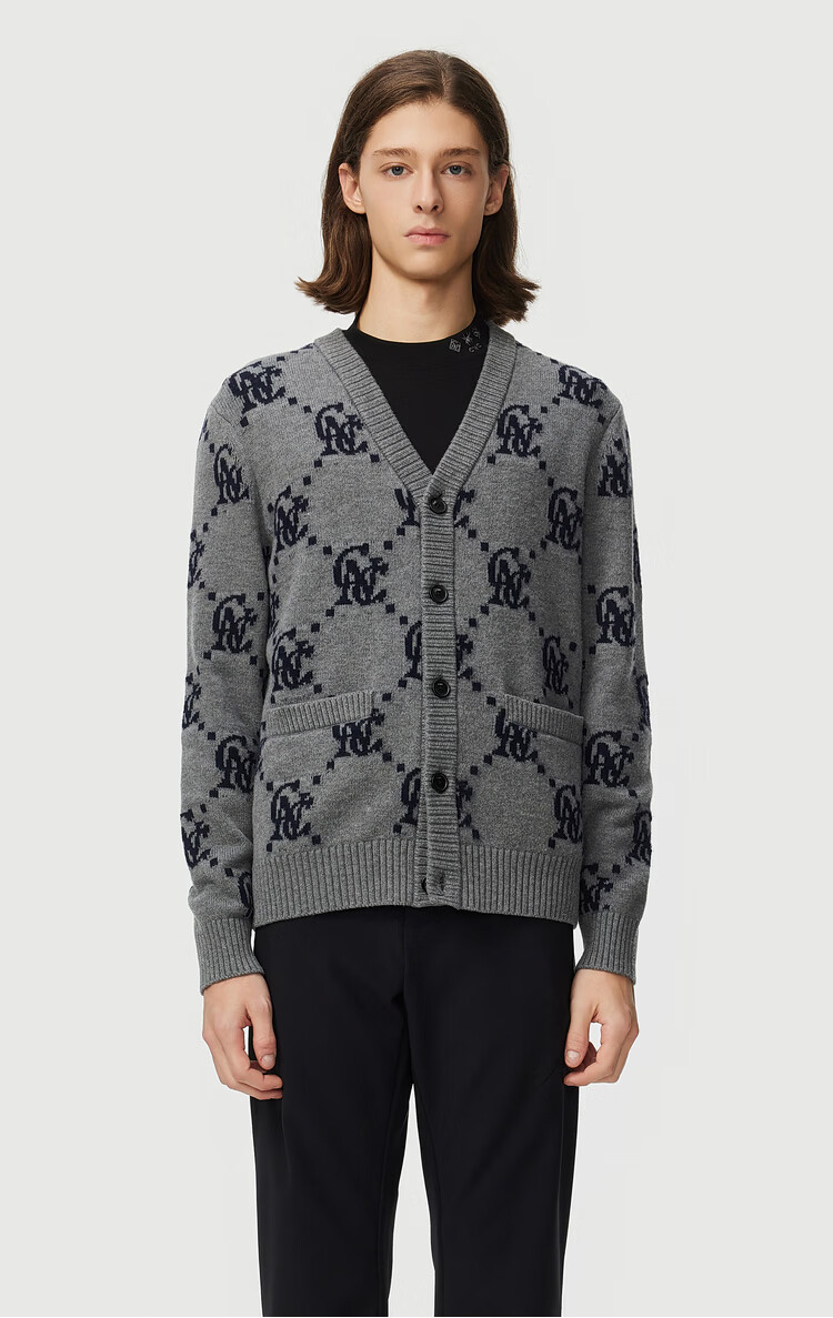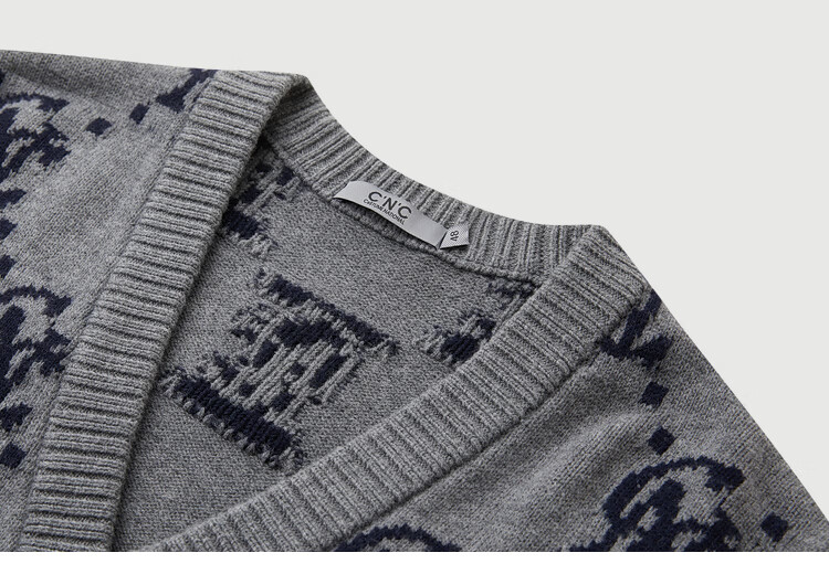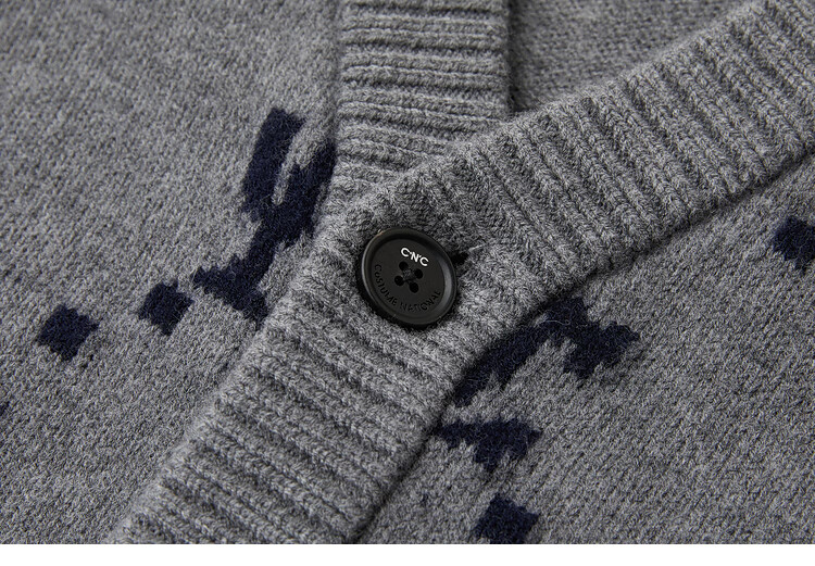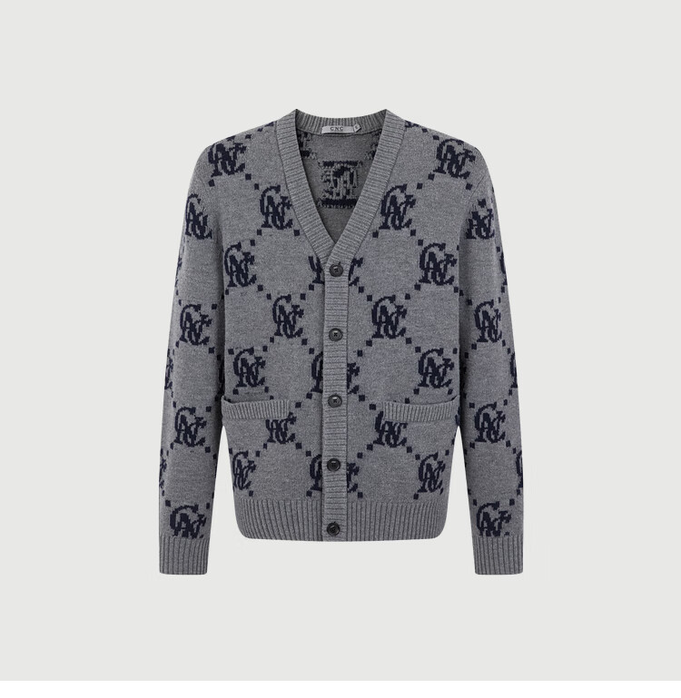 C N C light luxury men's sheep wool cardigan autumn and winter full bottom logo warm sweater jacket top gray pattern M /50/(175/92A)