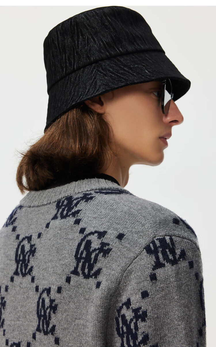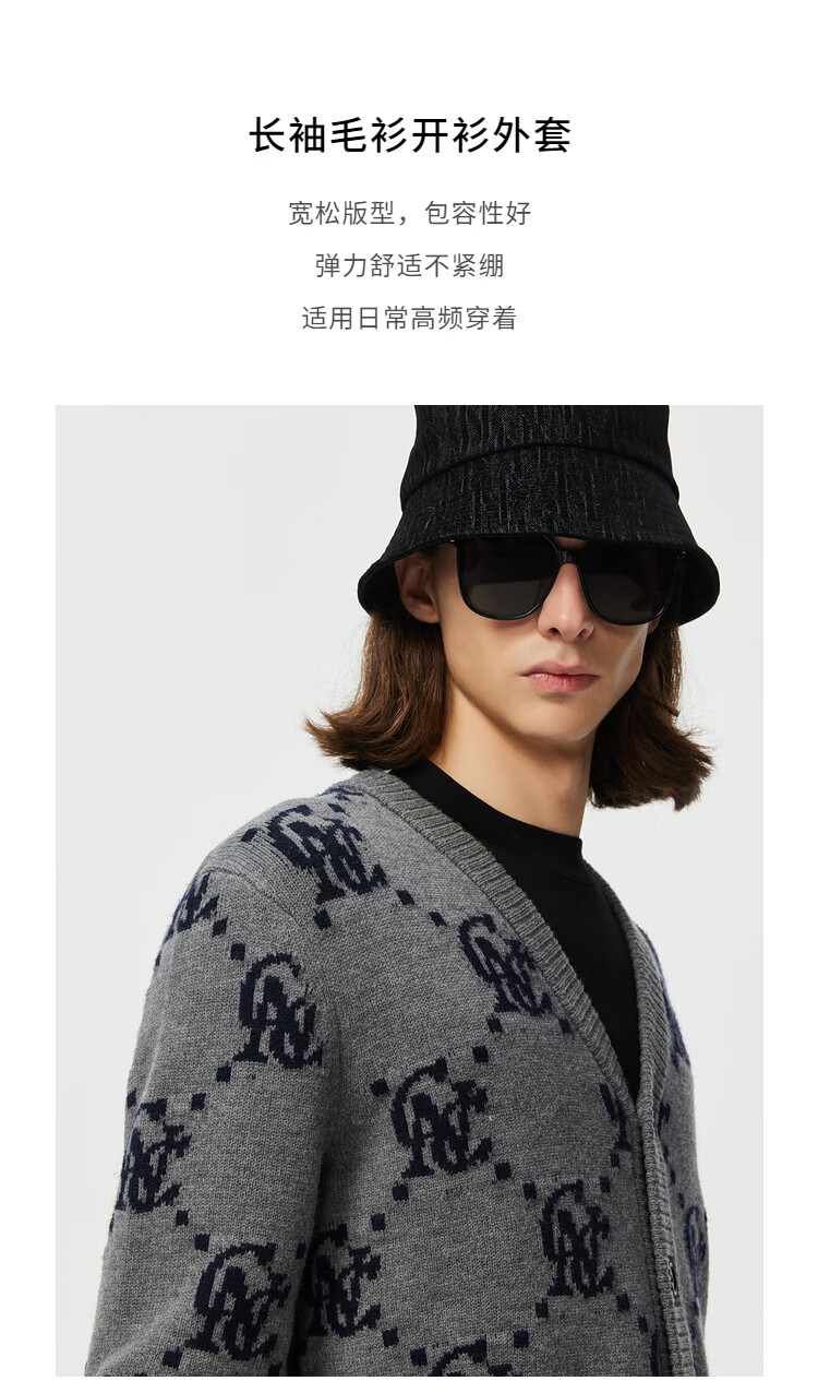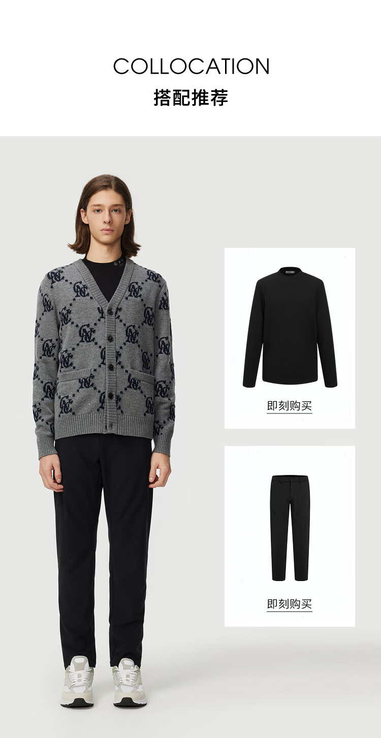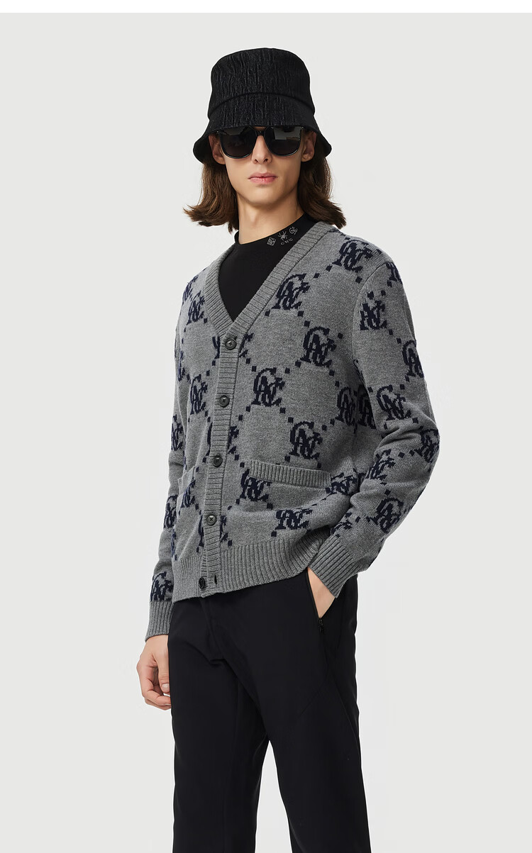 C N C light luxury men's sheep wool cardigan autumn and winter full bottom logo warm sweater jacket top gray pattern M /50/(175/92A)