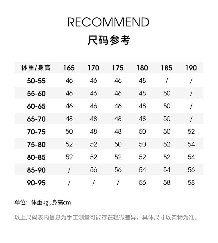 China (cm) 160-165/84-86 165-170 / 88-90 167-172 / 92-96 168-173 / 98-102 170-176 / 106-110