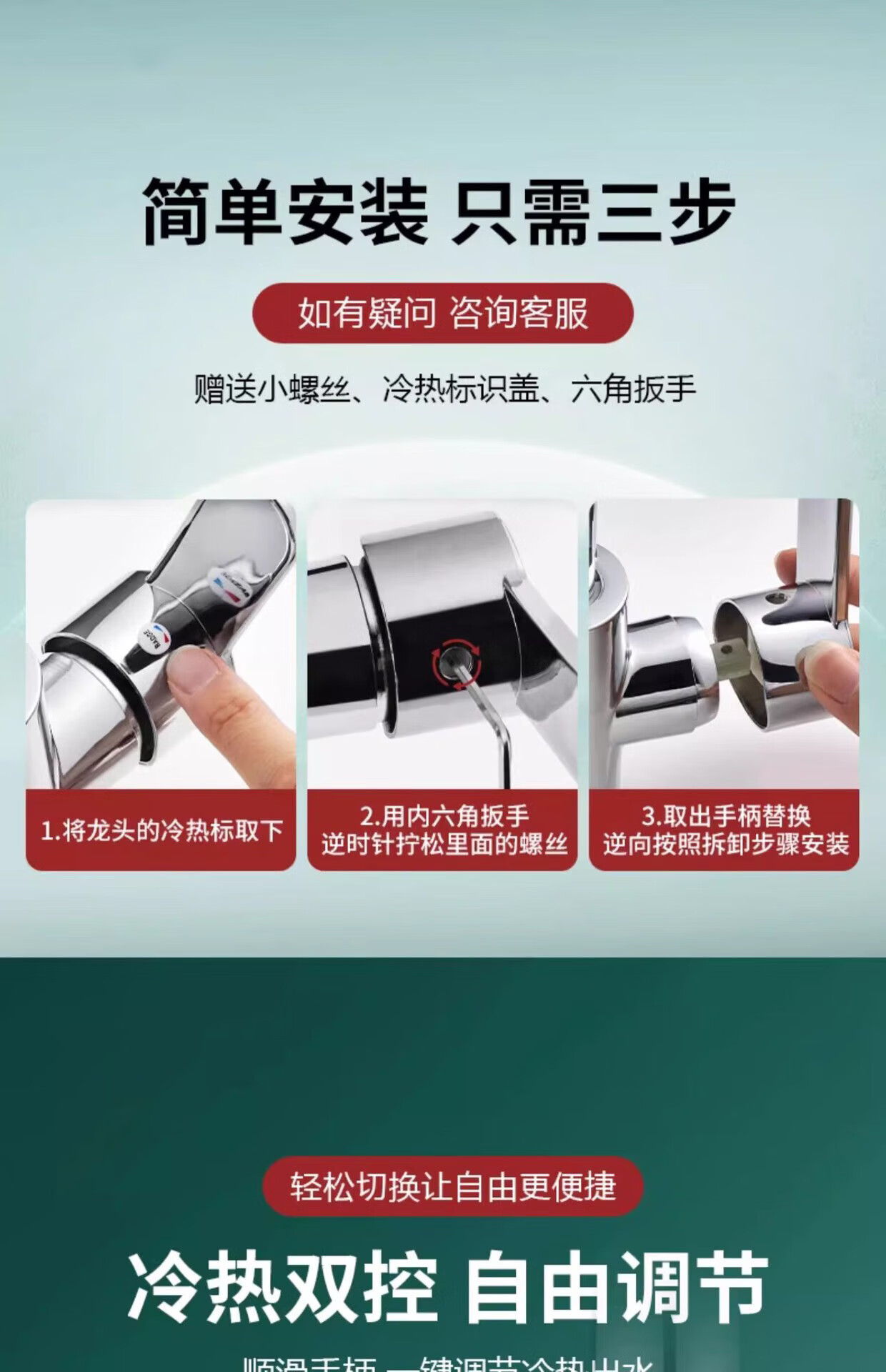 Jiangjusheng kitchen hot and cold faucet switch handle washbasin shower shower mixing valve faucet handle universal accessories hot and cold faucet switch handle thickened electroplating type 35 with installation tools