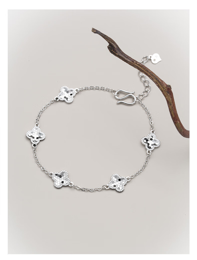 Diamond Family PT950 platinum bracelet, four-leaf clover platinum bracelet, platinum bracelet, elegant and simple holiday gift, platinum bracelet, about 5.18g