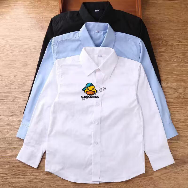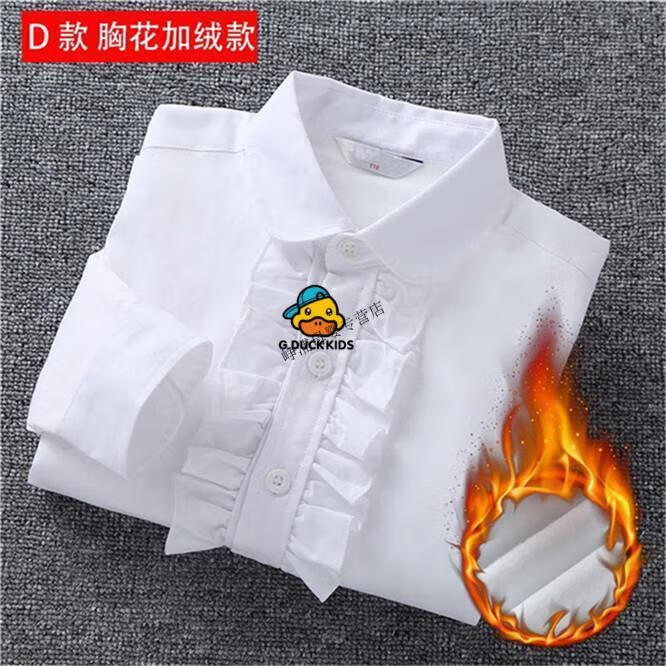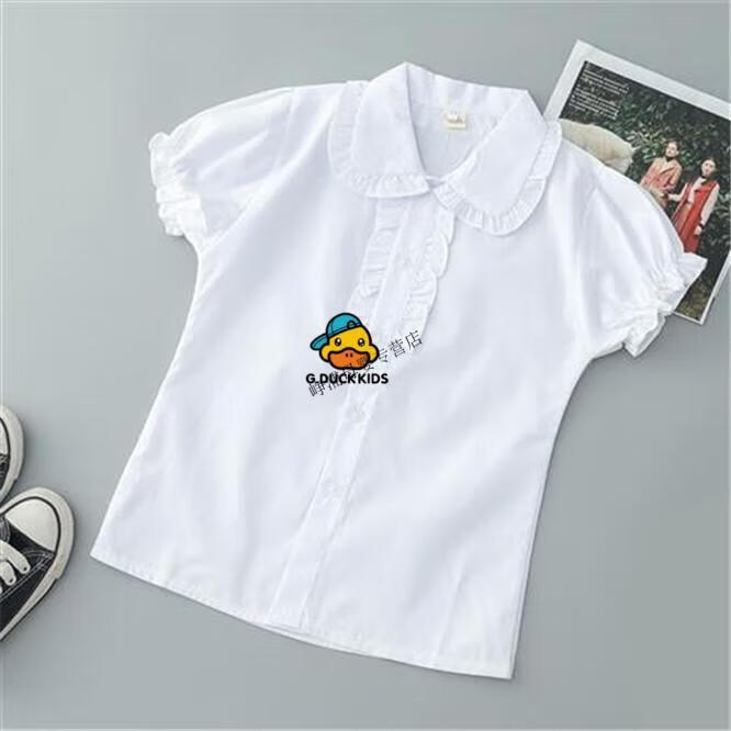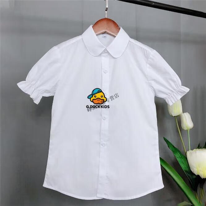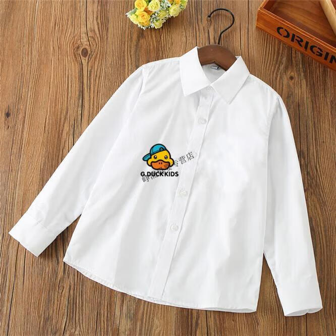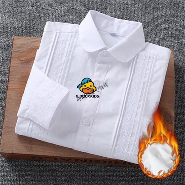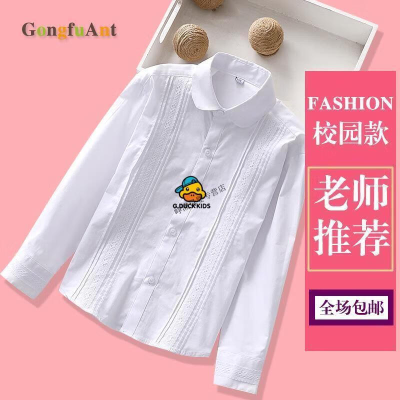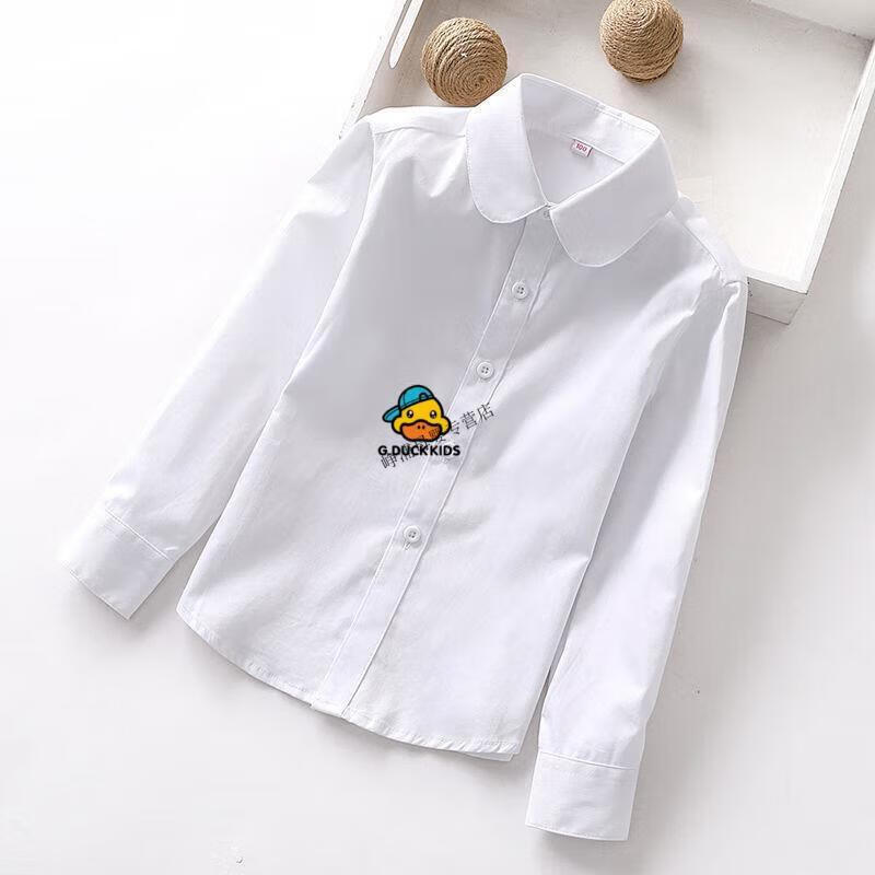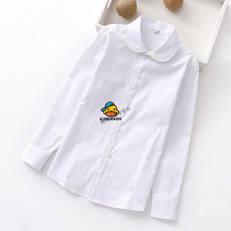 G.duck Little Yellow Duck Girls Polyester Cotton White Shirt Spring and Autumn Long Sleeve Primary School Uniform Middle and Large Children White Shirt Campus Model Lace White Long Sleeve 90 cn