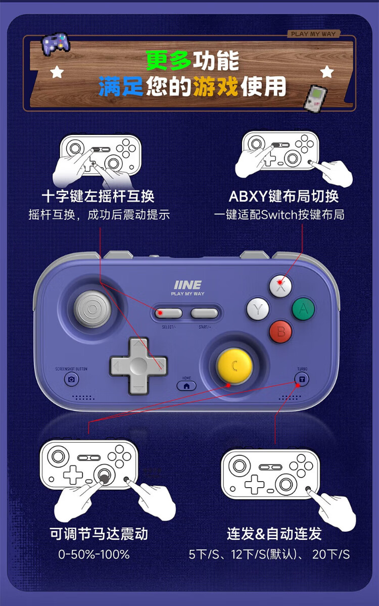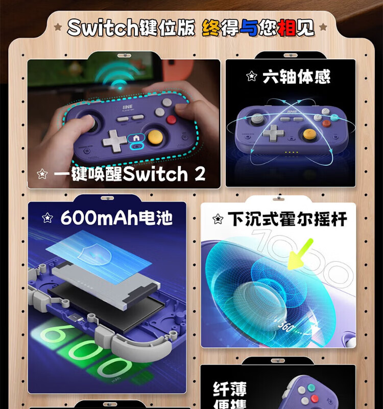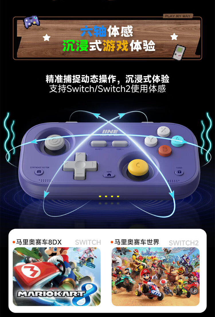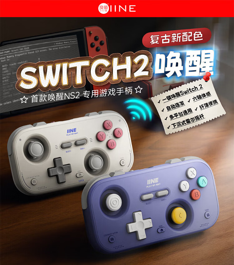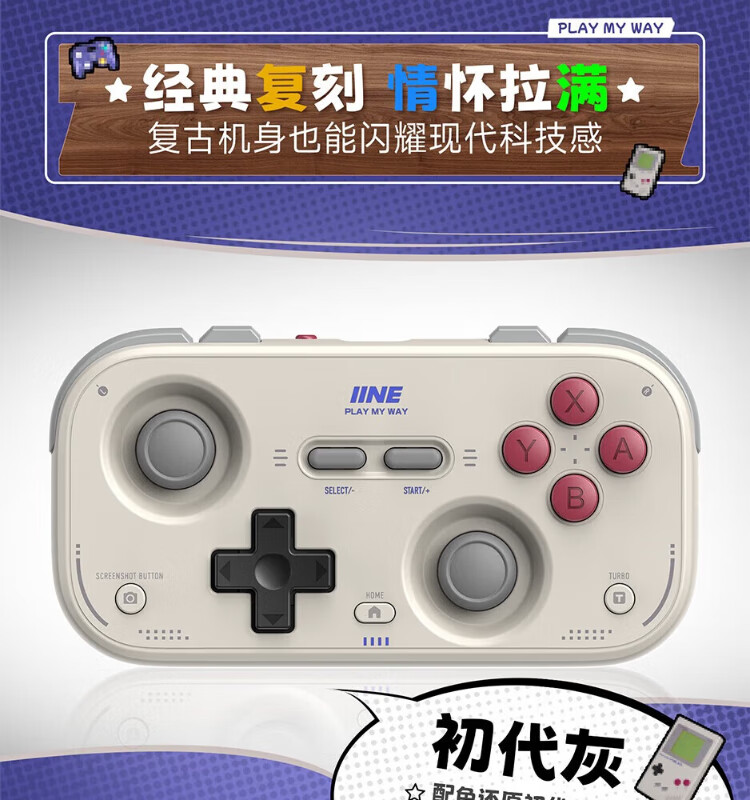 Good value retro card game controller Switch2 wake-up mini controller supports page turning streaming simulator Android IOS mobile phone PC car NS accessories DW12C retro gray-L1194 (Okura Straight Hair)
