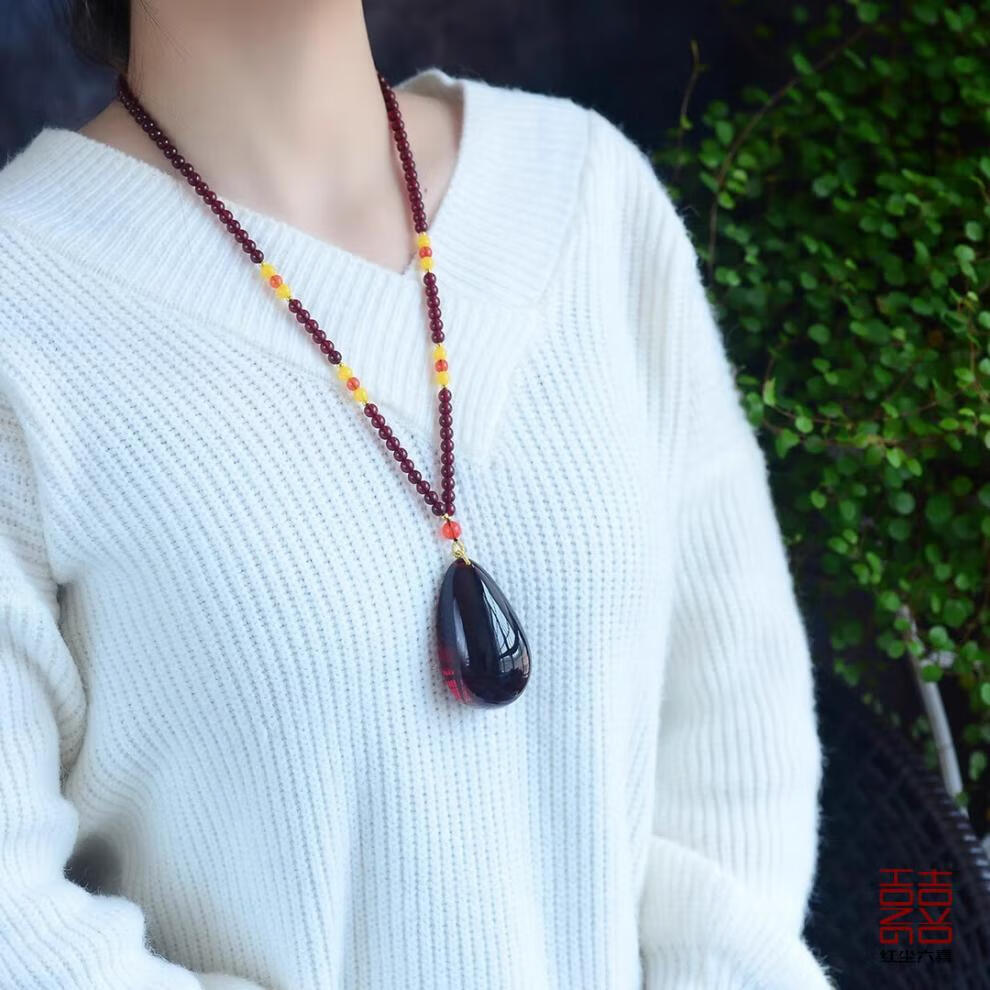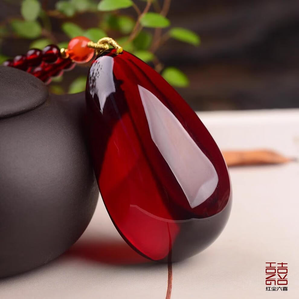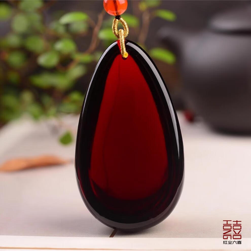 Six Senses of Red Dust Baltic Sea natural blood amber water drop pendant for men and women, authentic red amber old honey sweater necklace pendant, blood amber pendant chain