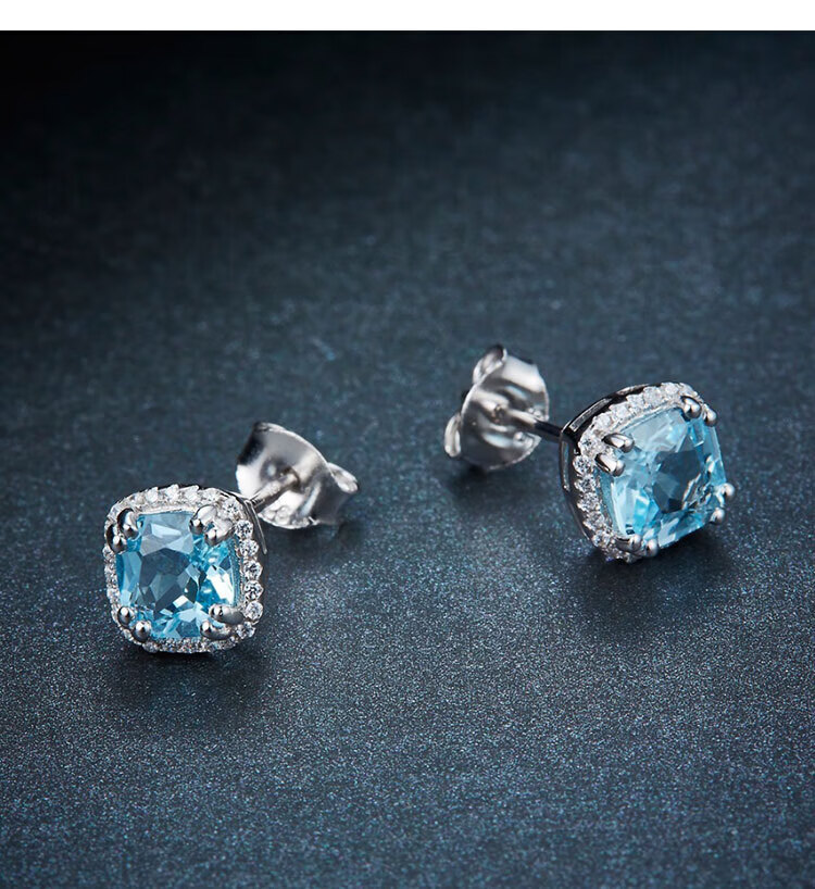 Keshan topaz earrings for women, daily commuting, simple, 925 silver, given as a gift, for self-wear, natural colored gemstones, jewelry and gemstones