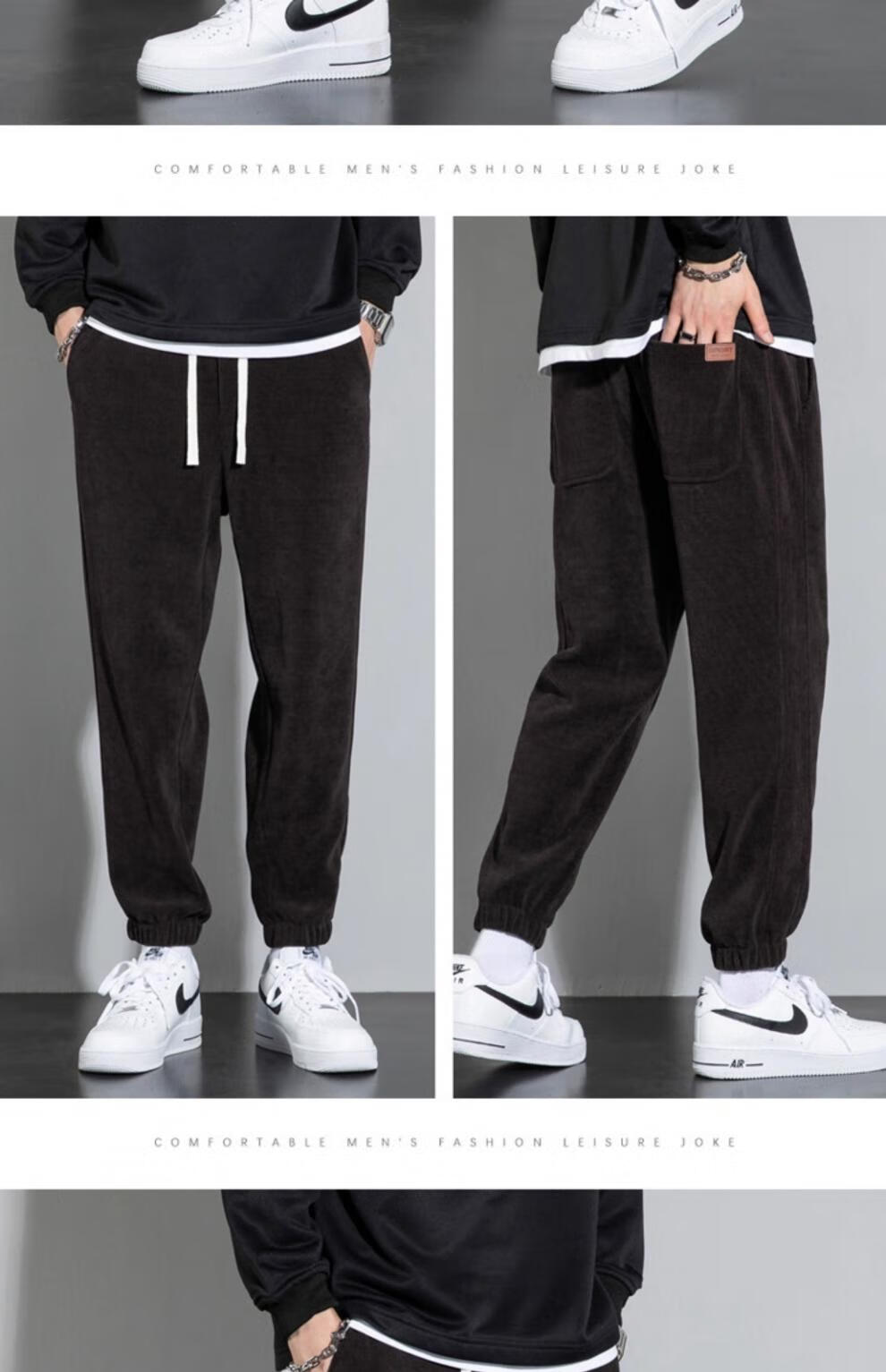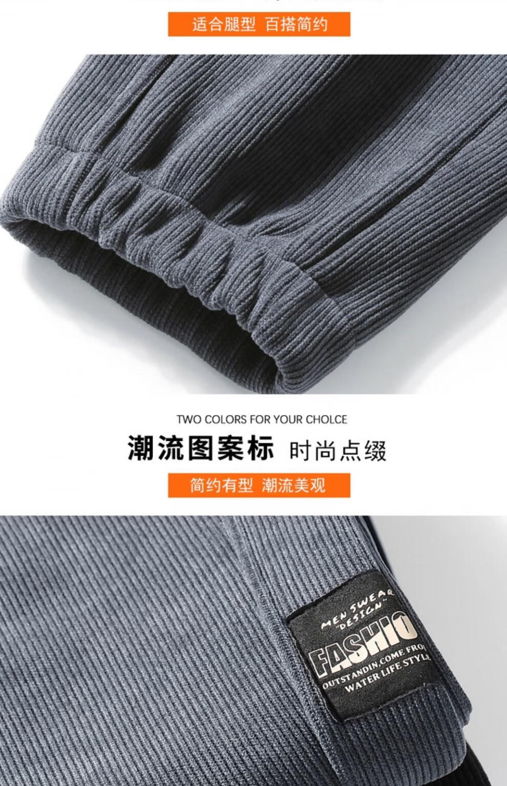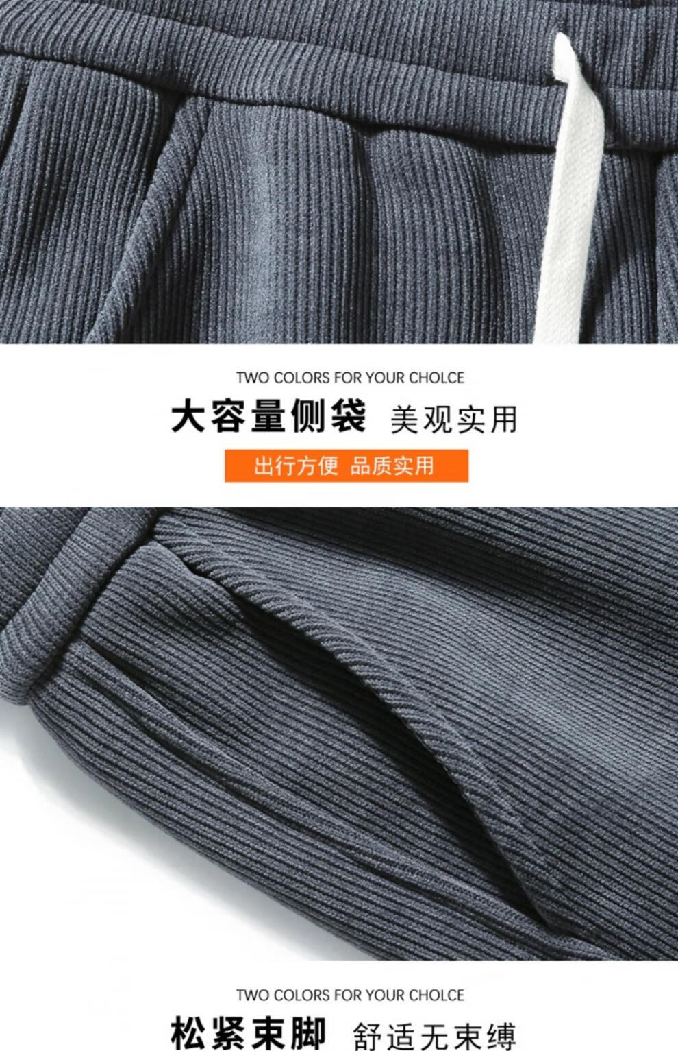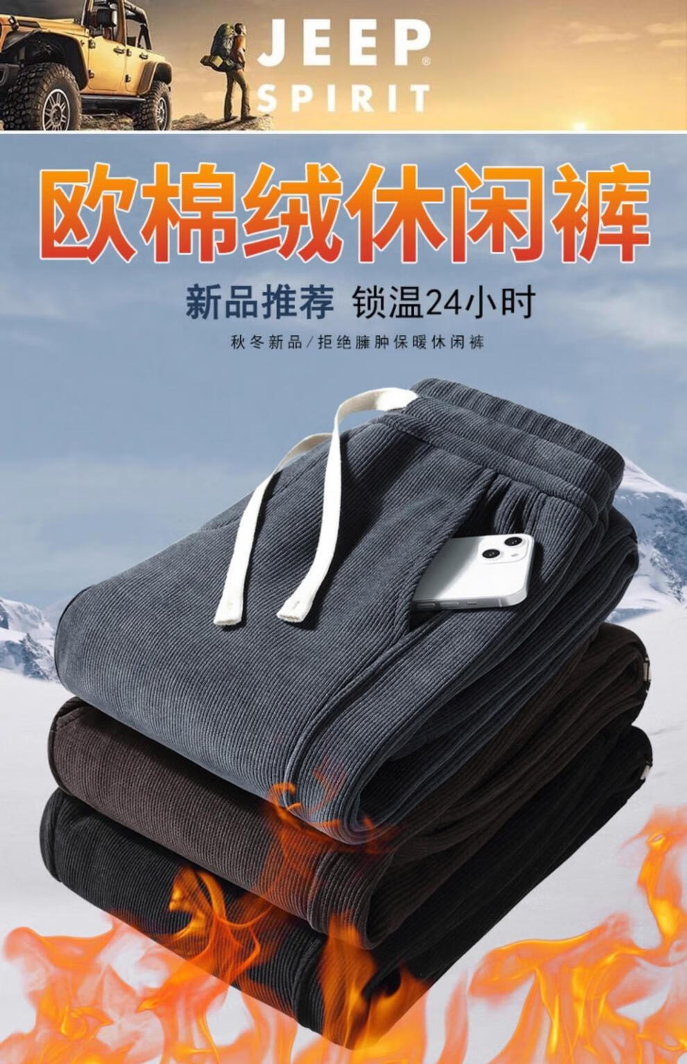 JEEP Light Luxury Corduroy Sweatpants Men's Autumn and Winter Plus Velvet Thickened Large Size Loose Sports Pants Winter Casual Long Pants Gray Leg-tie Spring and Autumn Style Regular M (Recommended 85-100 Jin Jin is equal to about 0.5 kg)