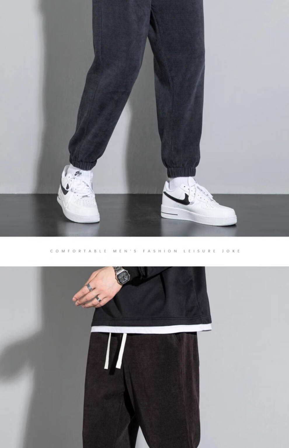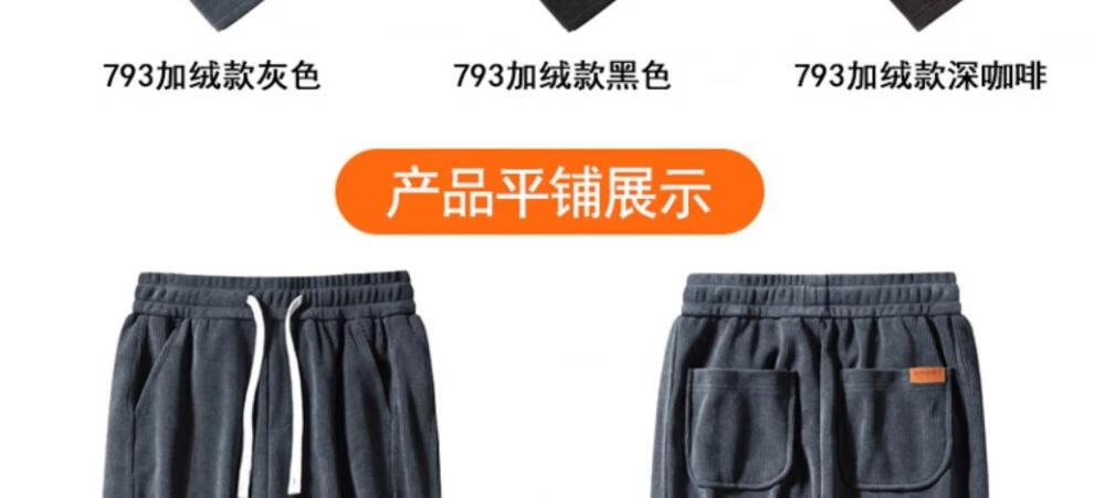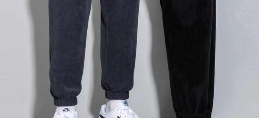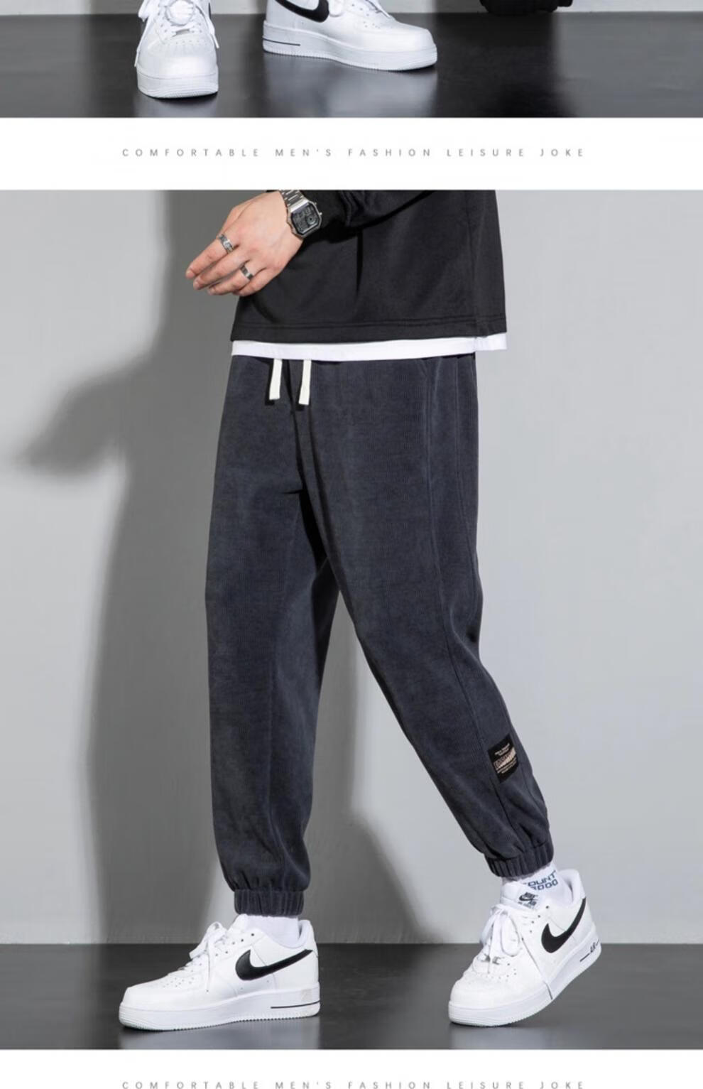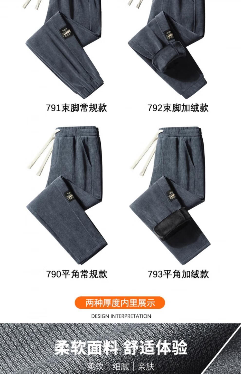 JEEP Light Luxury Corduroy Sweatpants Men's Autumn and Winter Plus Velvet Thickened Large Size Loose Sports Pants Winter Casual Long Pants Gray Leg-tie Spring and Autumn Style Regular M (Recommended 85-100 Jin Jin is equal to about 0.5 kg)