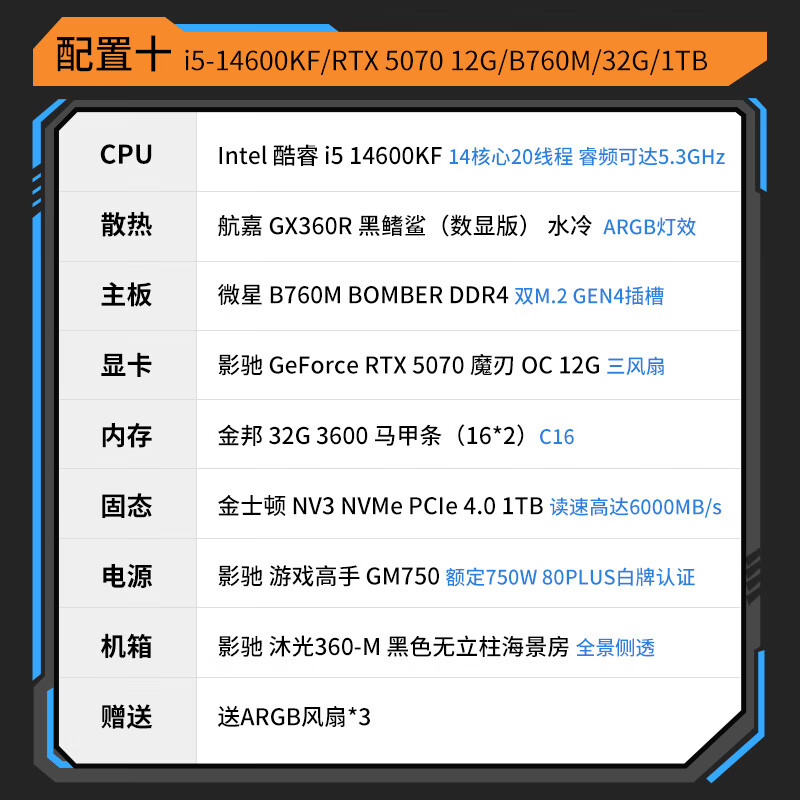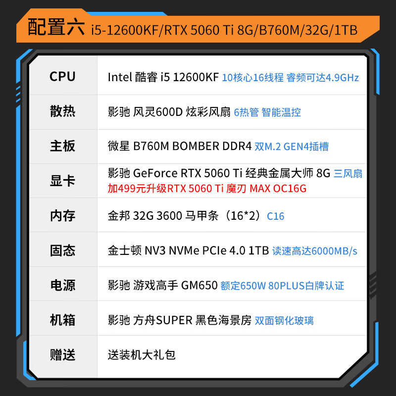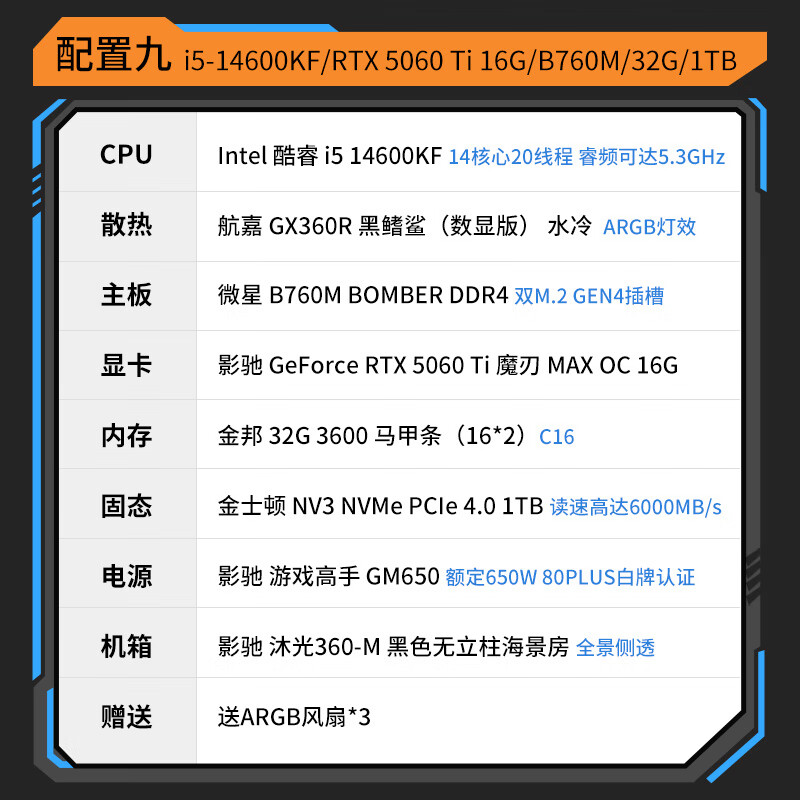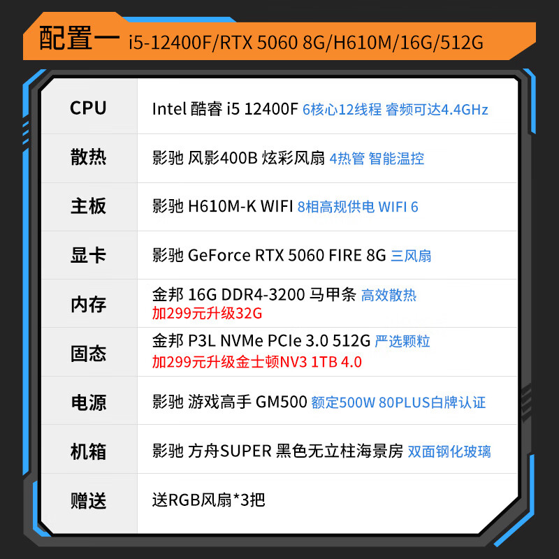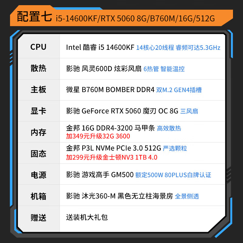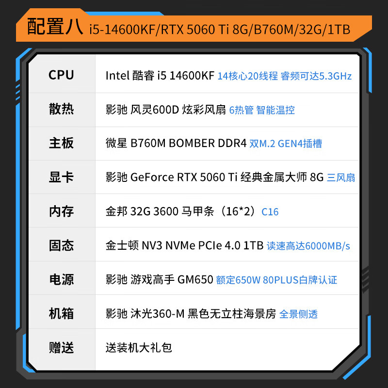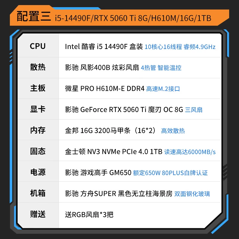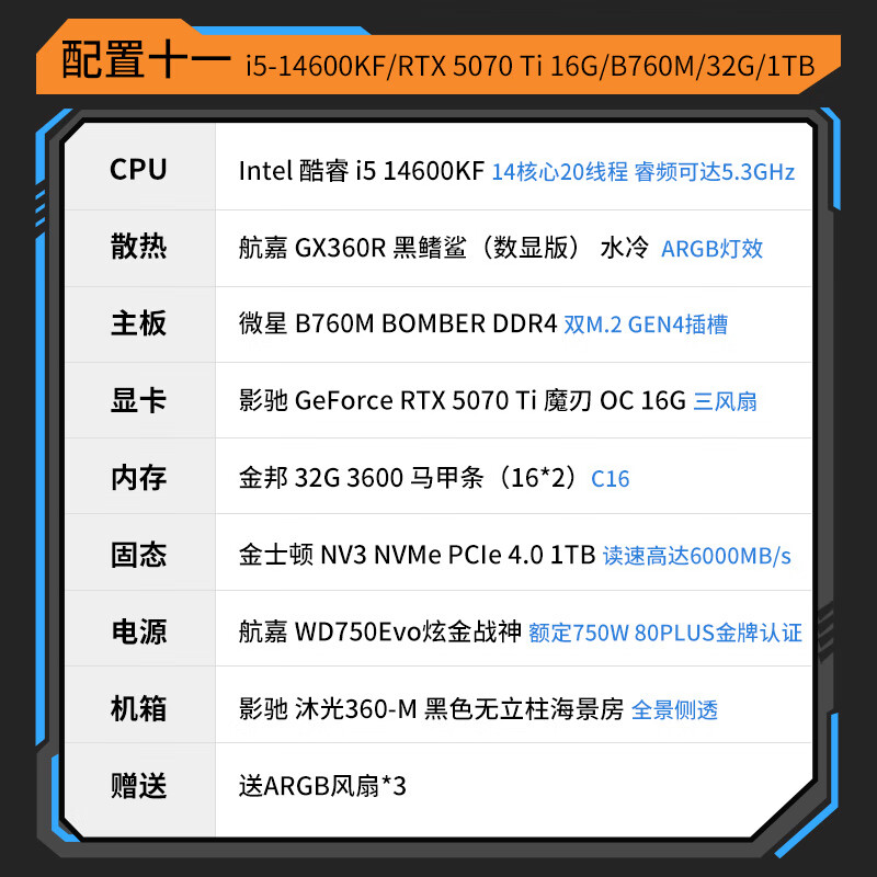 GALAX family bucket sea view room i5 12600KF/14600KF/RTX5060/5060Ti design live game e-sports delta assembly computer DIY assembly machine desktop DIY modification upgrade/additional configuration (contact customer service)