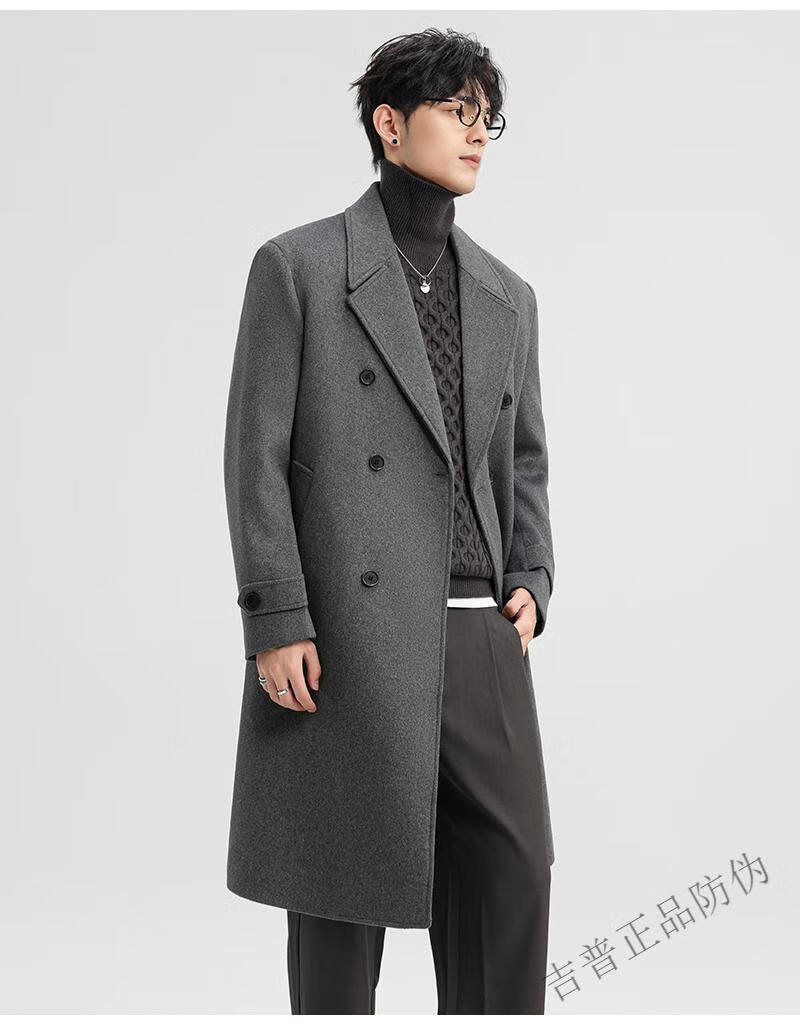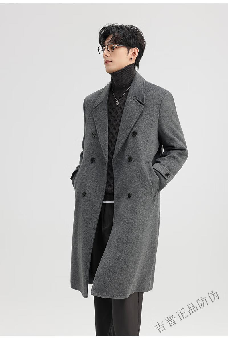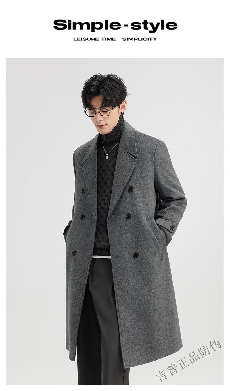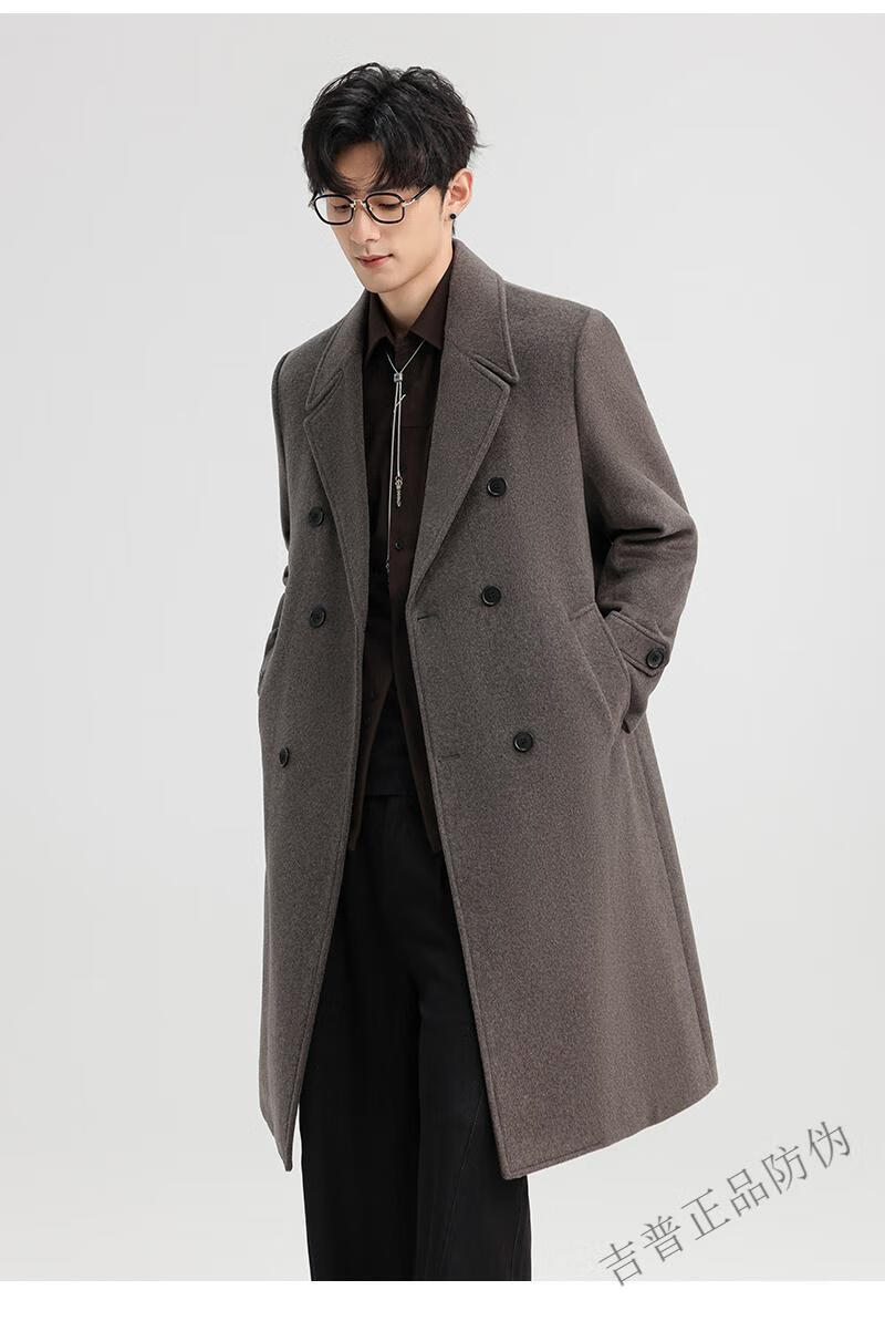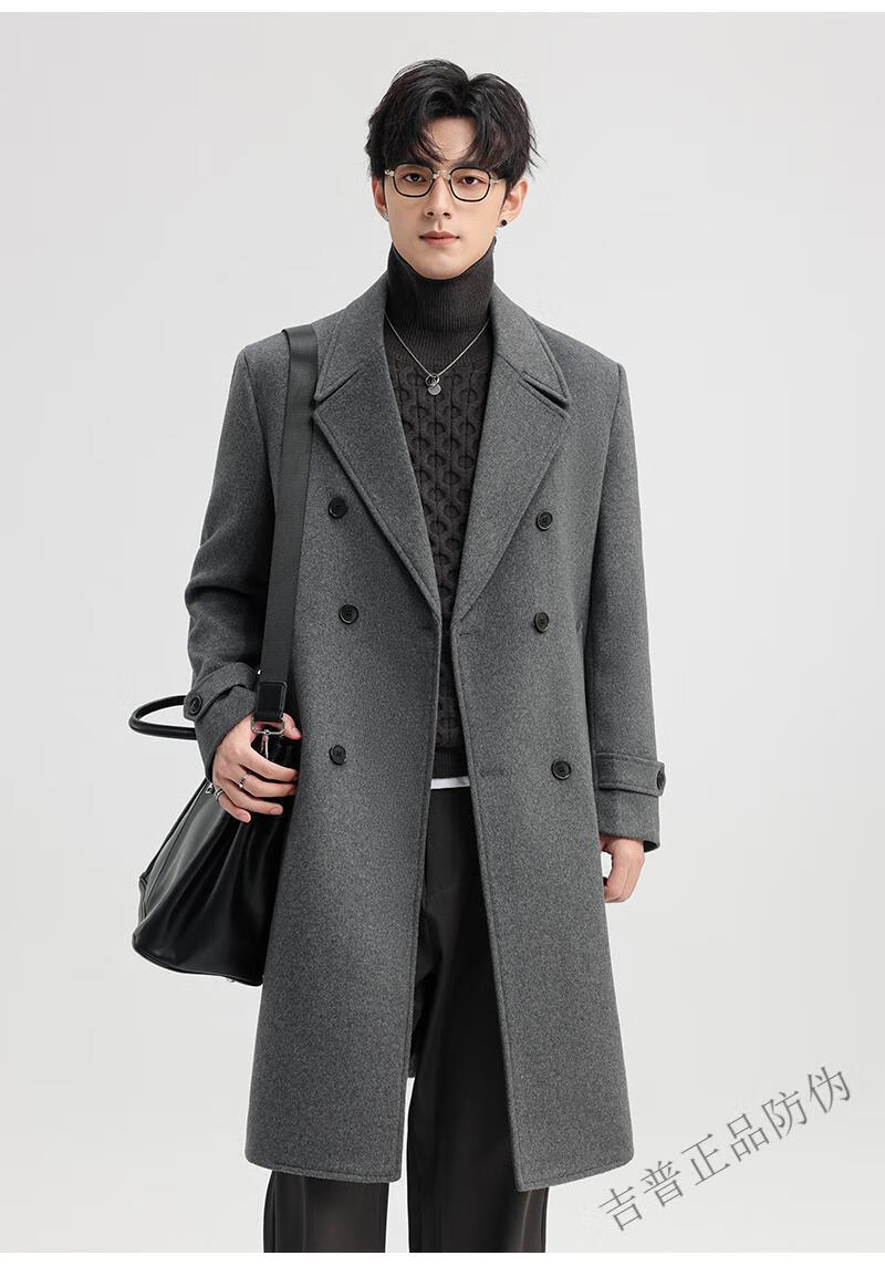 JEEP SPIRIT New Double-sided Woolen Coat Men's Medium and Long New Autumn and Winter Double-breasted Casual Over-the-Knee Youth Woolen Woolen Jacket Gray Coffee M 170 Recommended 100-120Jin Jin is equal to 0.5 kg