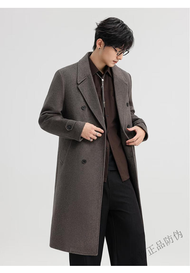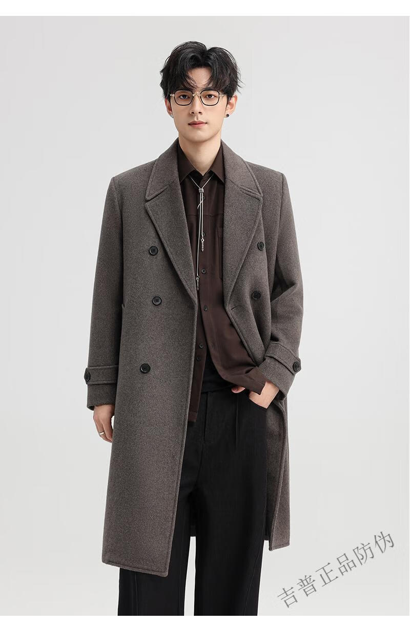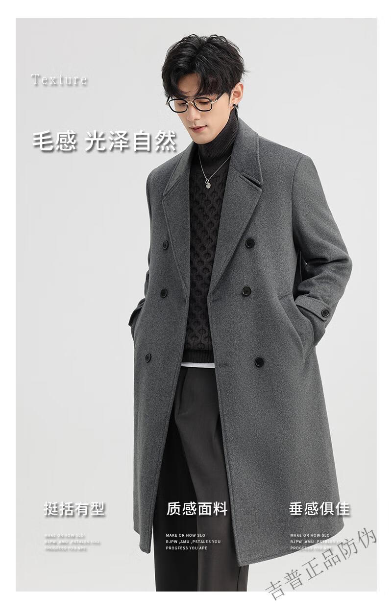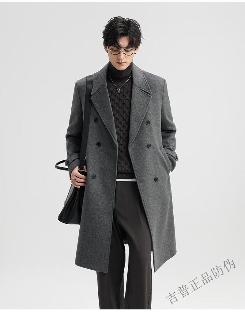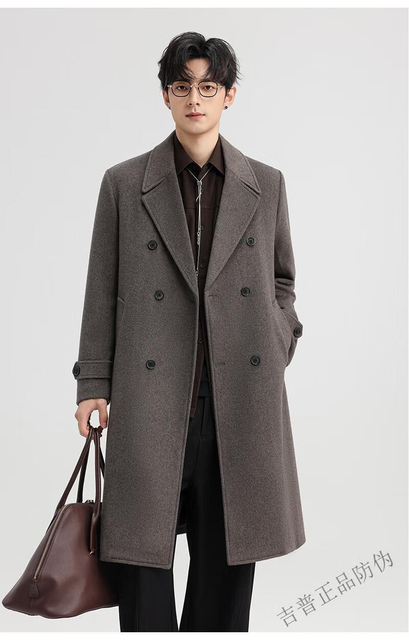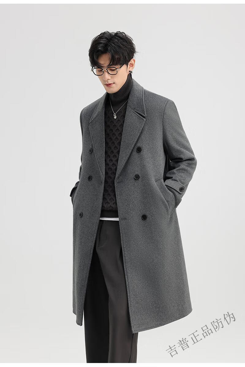 JEEP SPIRIT New Double-sided Woolen Coat Men's Medium and Long New Autumn and Winter Double-breasted Casual Over-the-Knee Youth Woolen Woolen Jacket Gray Coffee M 170 Recommended 100-120Jin Jin is equal to 0.5 kg