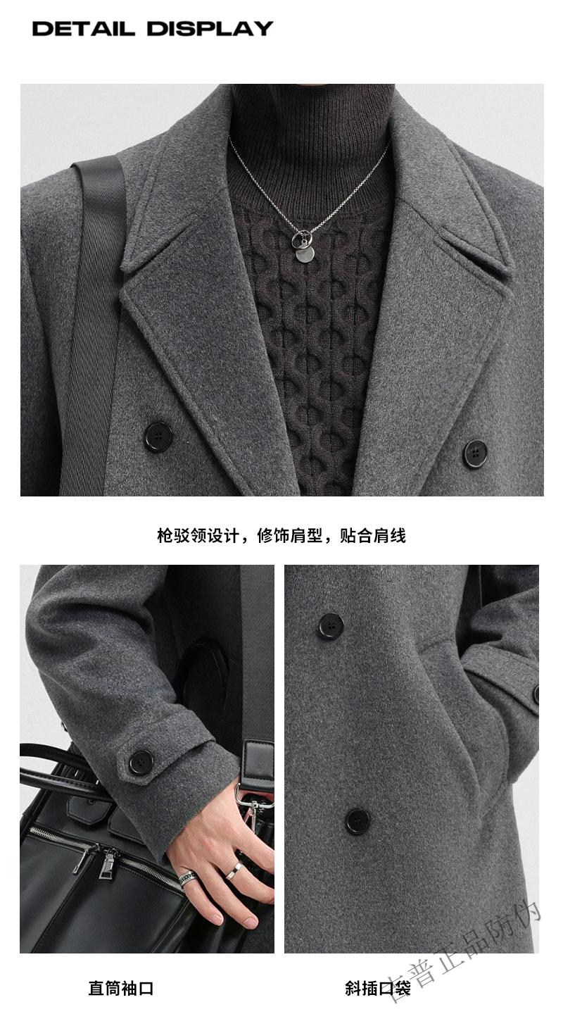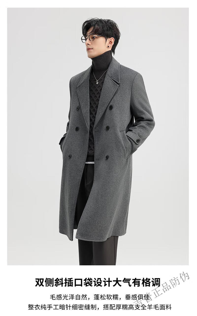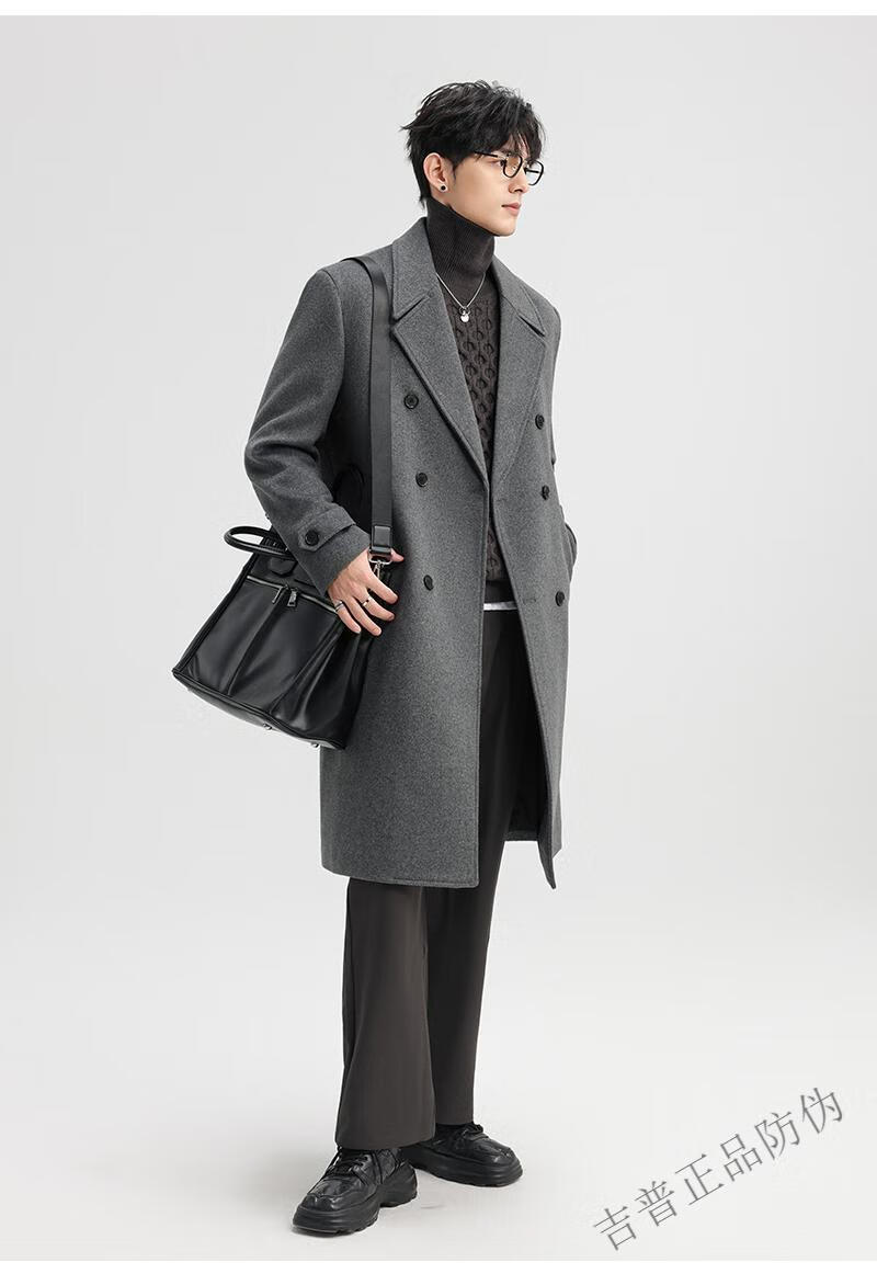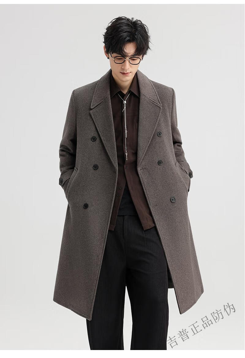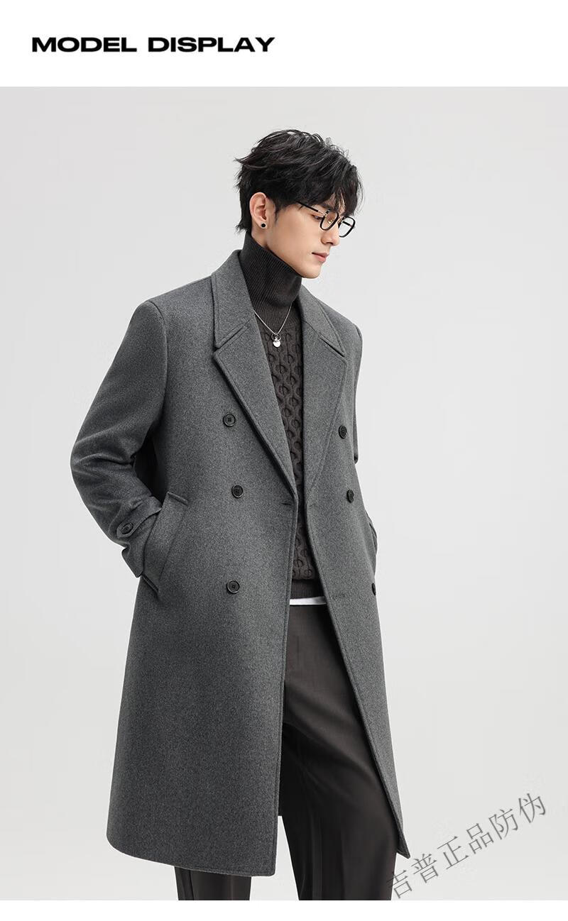 JEEP SPIRIT New Double-sided Woolen Coat Men's Medium and Long New Autumn and Winter Double-breasted Casual Over-the-Knee Youth Woolen Woolen Jacket Gray Coffee M 170 Recommended 100-120Jin Jin is equal to 0.5 kg