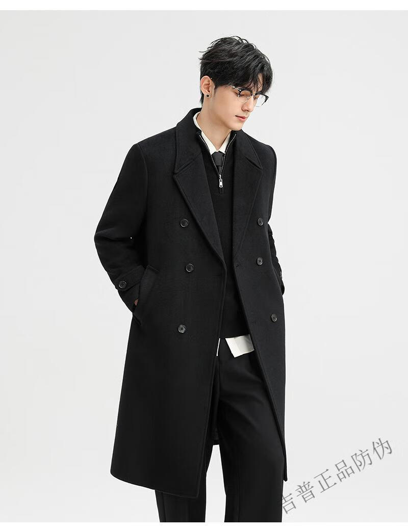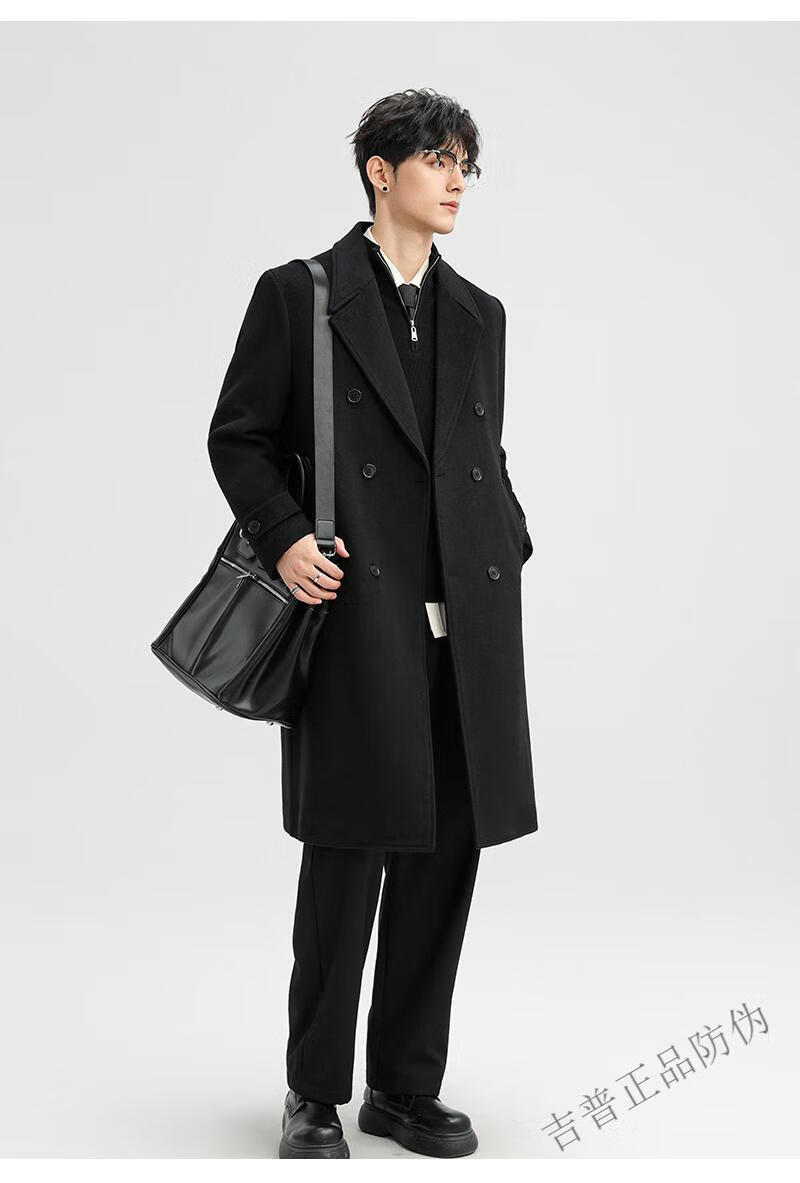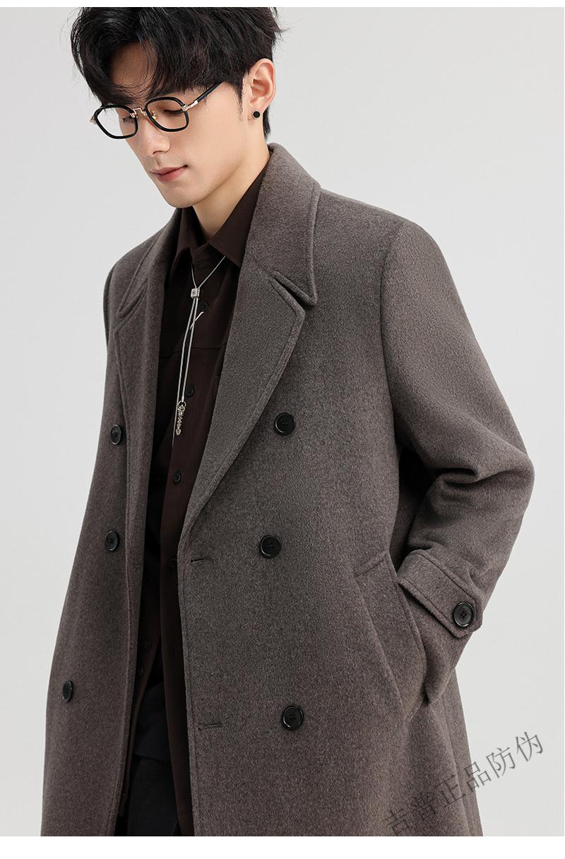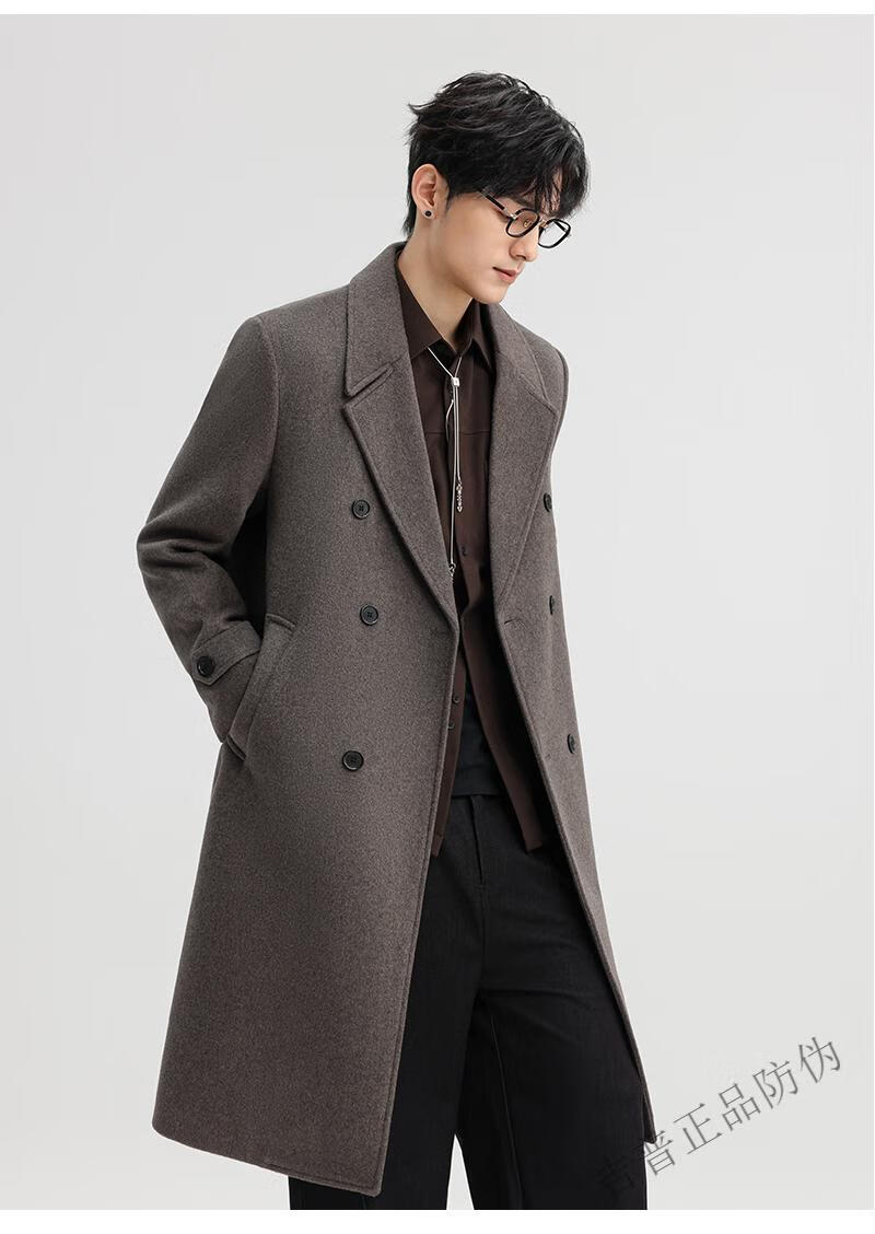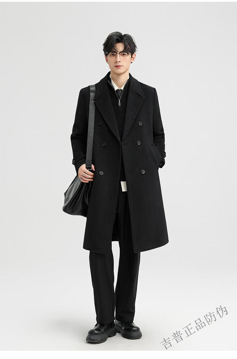 JEEP SPIRIT New Double-sided Woolen Coat Men's Medium and Long New Autumn and Winter Double-breasted Casual Over-the-Knee Youth Woolen Woolen Jacket Gray Coffee M 170 Recommended 100-120Jin Jin is equal to 0.5 kg
