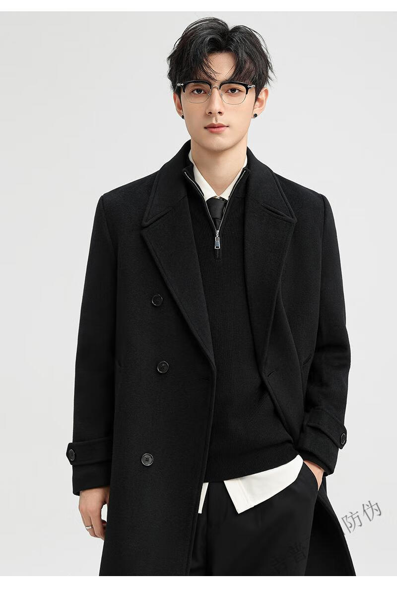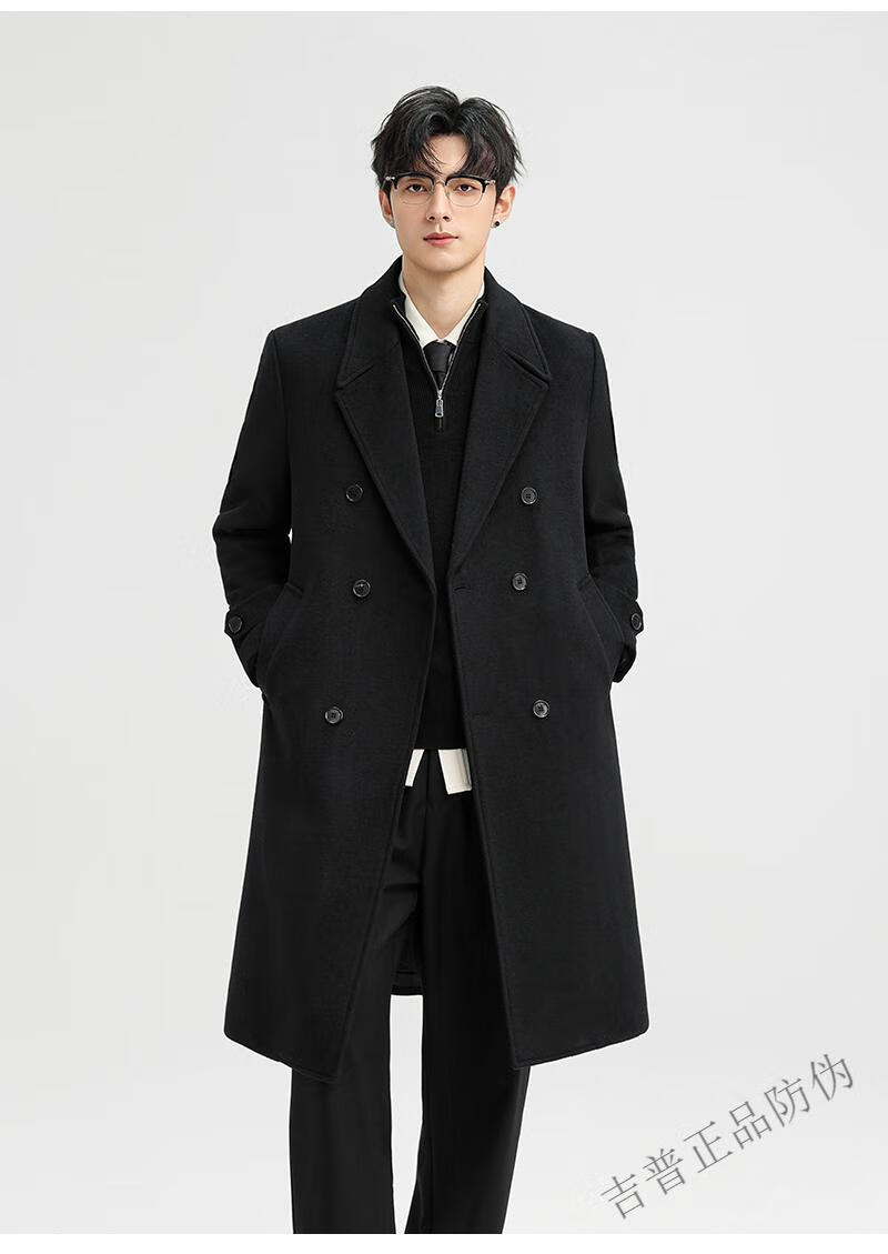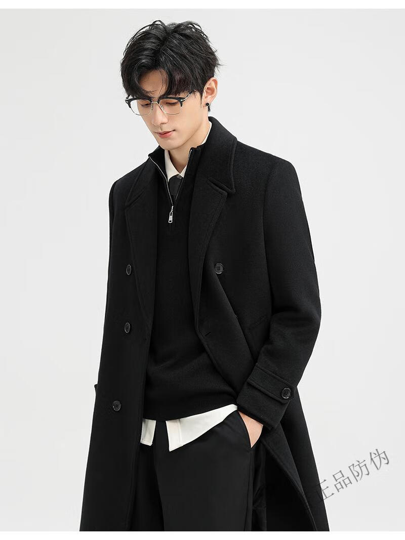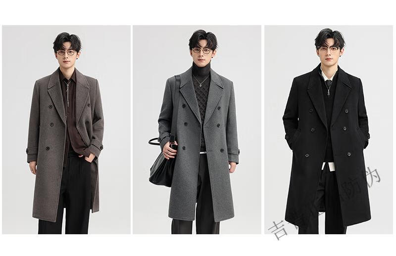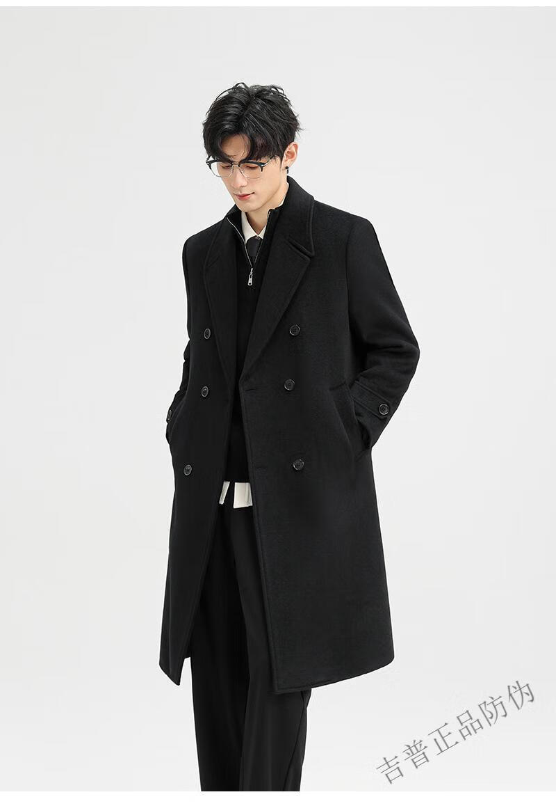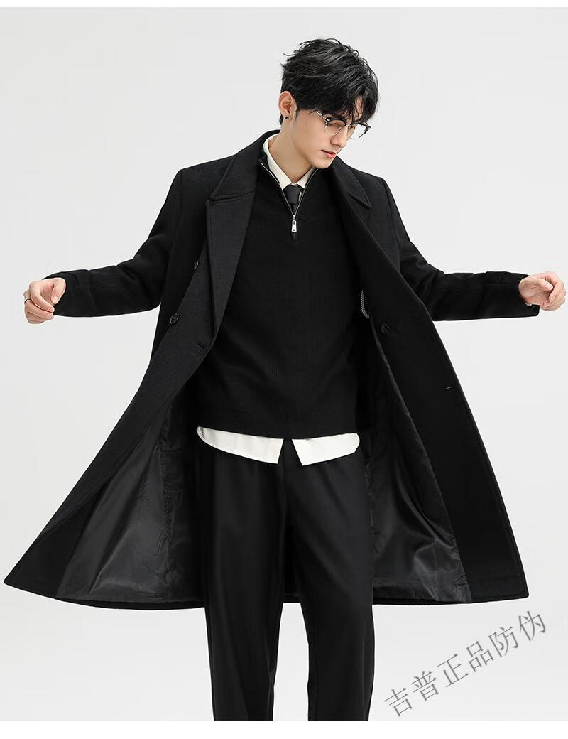 JEEP SPIRIT New Double-sided Woolen Coat Men's Medium and Long New Autumn and Winter Double-breasted Casual Over-the-Knee Youth Woolen Woolen Jacket Gray Coffee M 170 Recommended 100-120Jin Jin is equal to 0.5 kg
