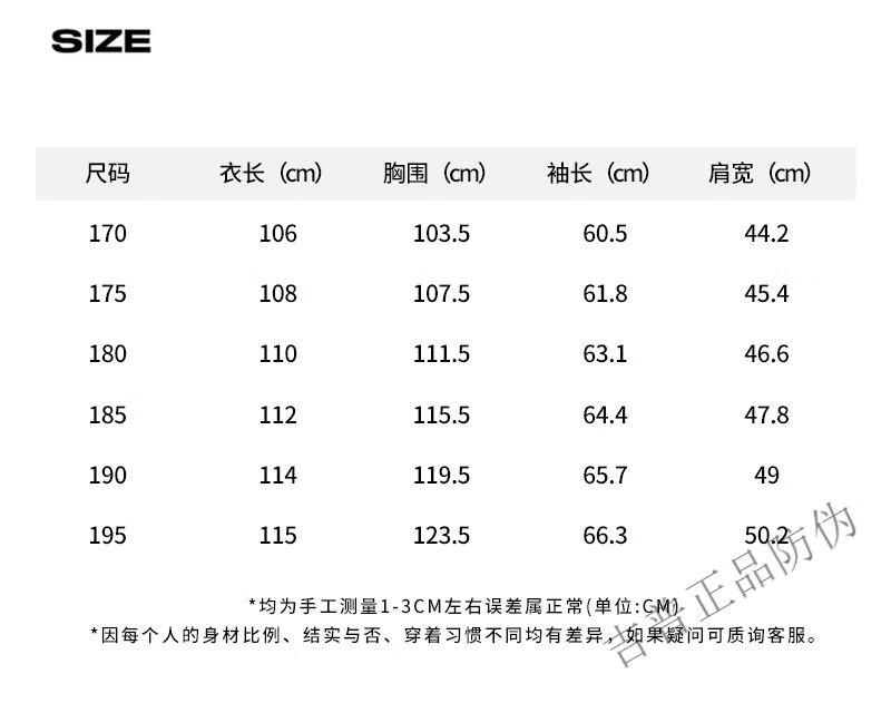 China (cm) 165 / 88-90 170 / 96-98 175 / 108-110 180 / 118-122 185 / 126-130