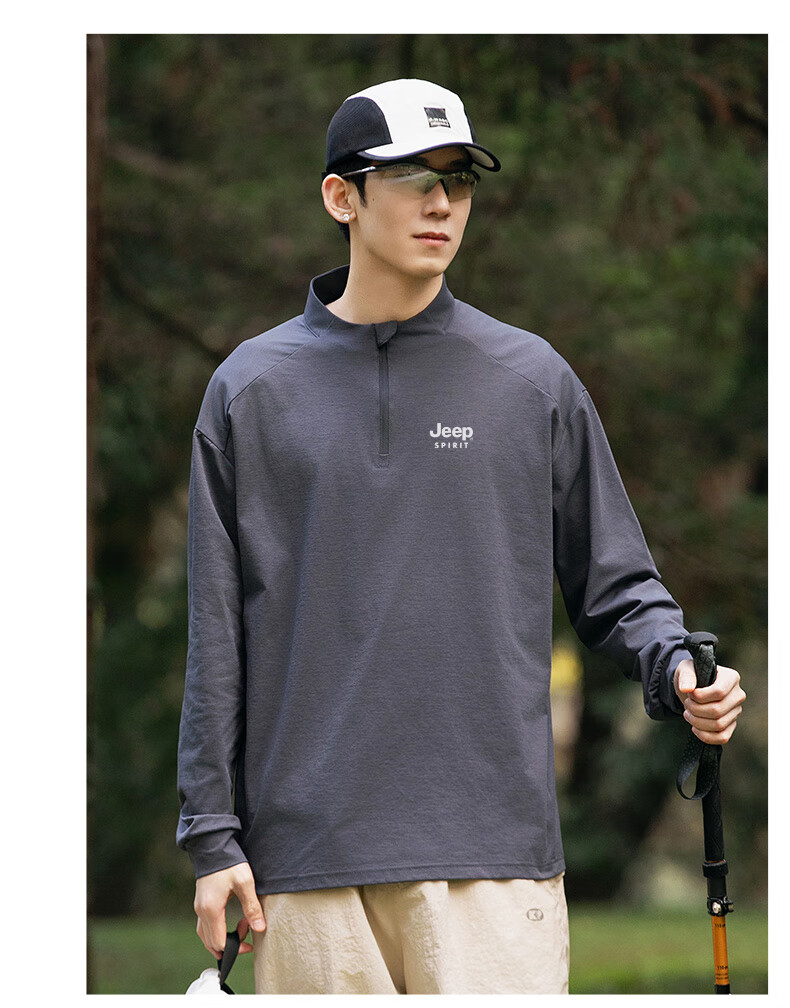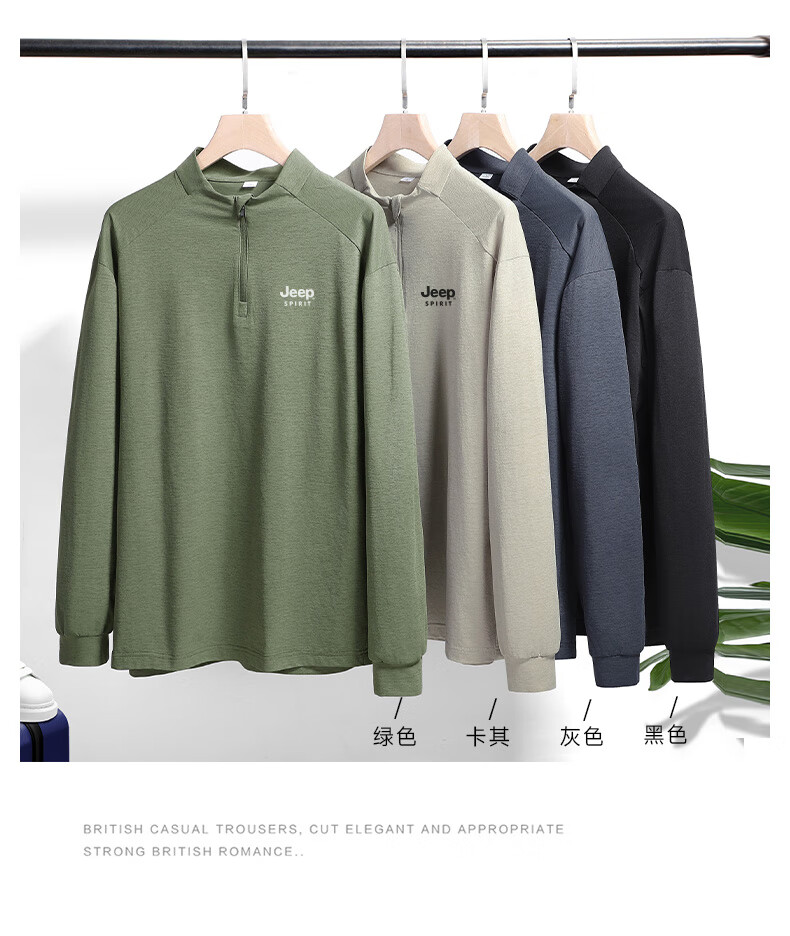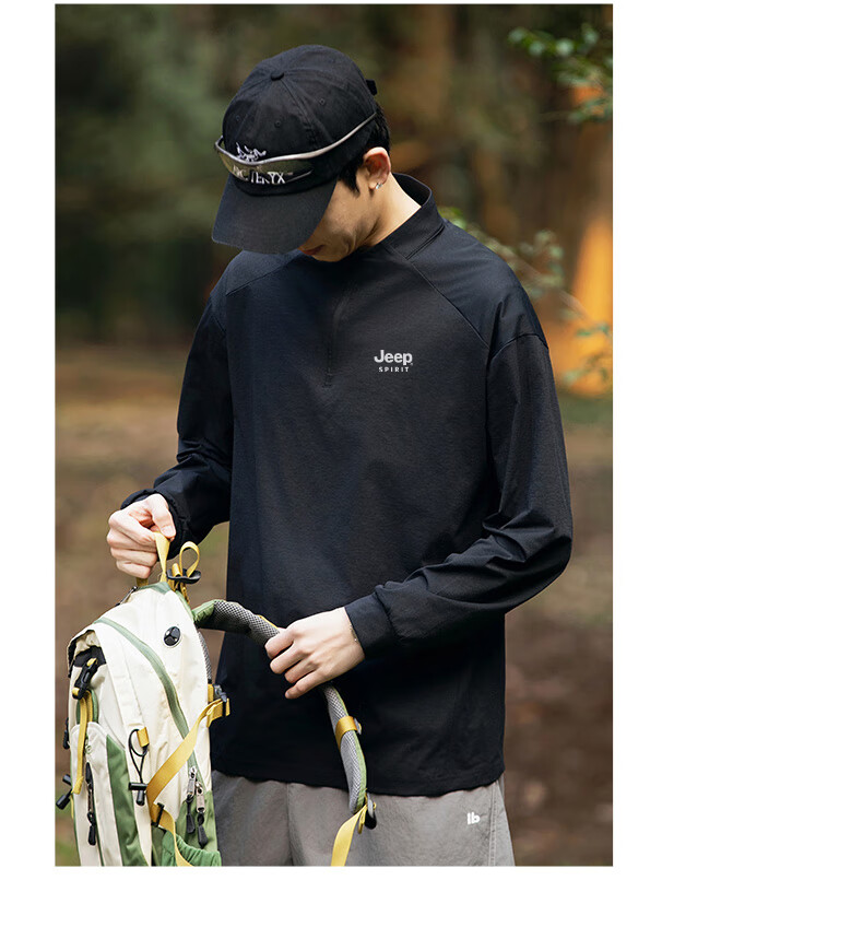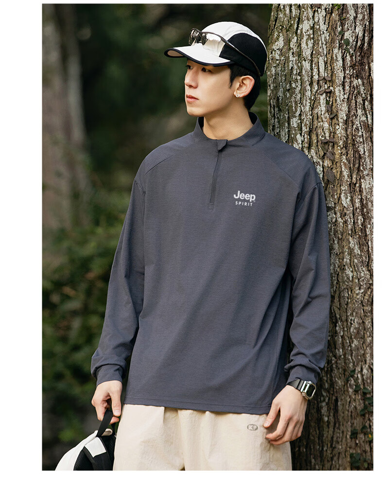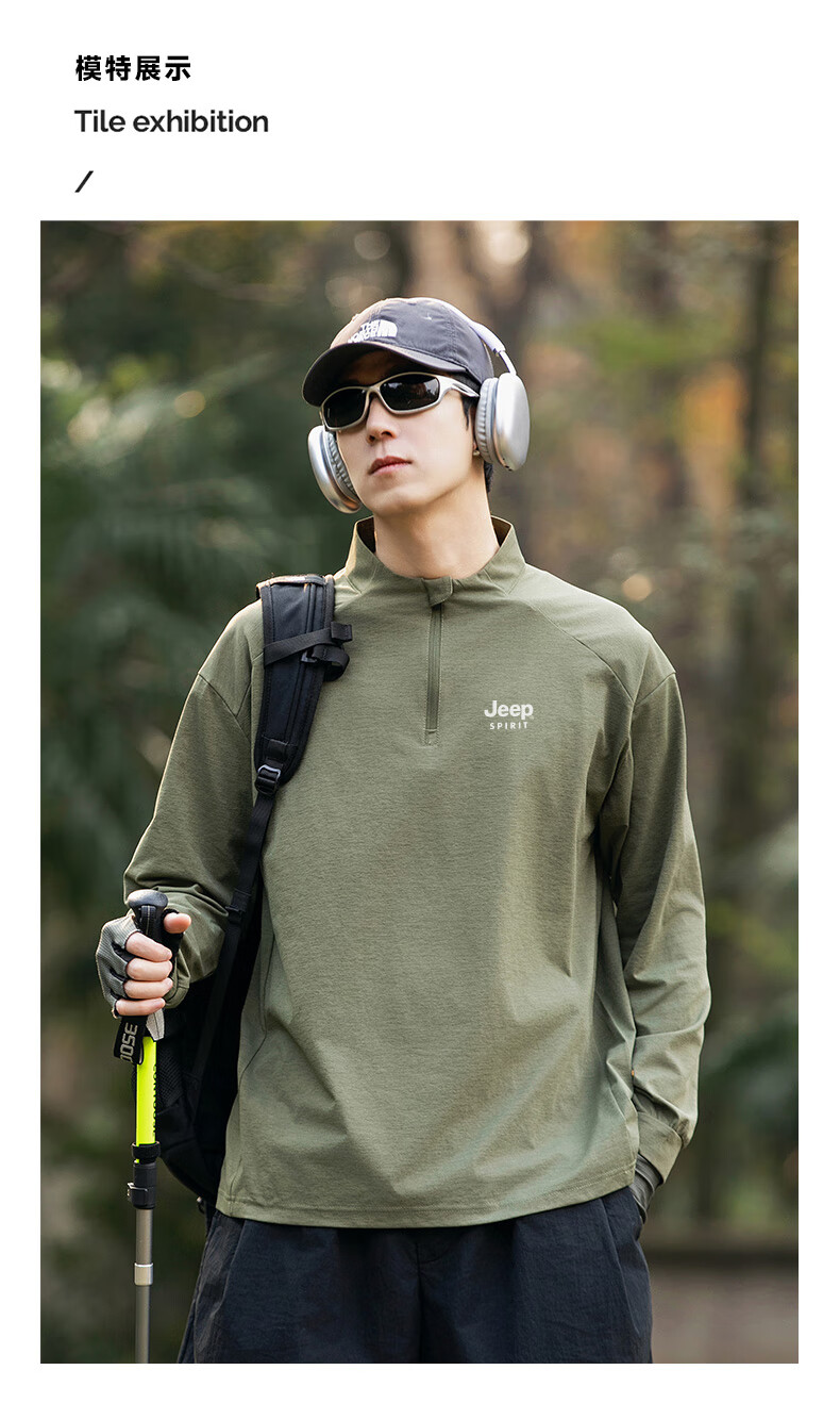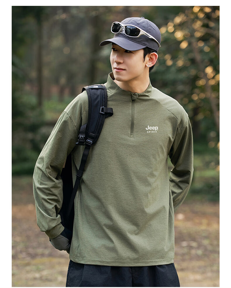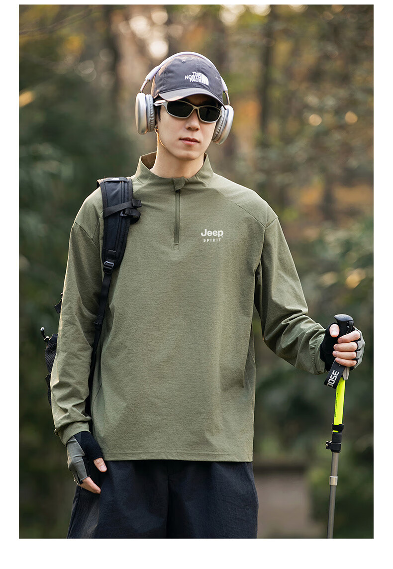 JEEP SPIRIT Jeep long-sleeved T-shirt men's 2025 new spring and autumn sports running and cycling clothing casual men's long-sleeved T-shirt Green L Recommended weight 125-140Jin Jin equals 0.5 kg