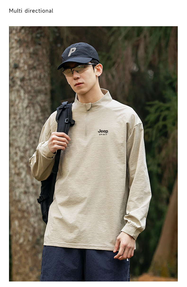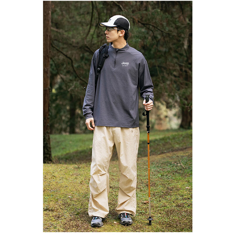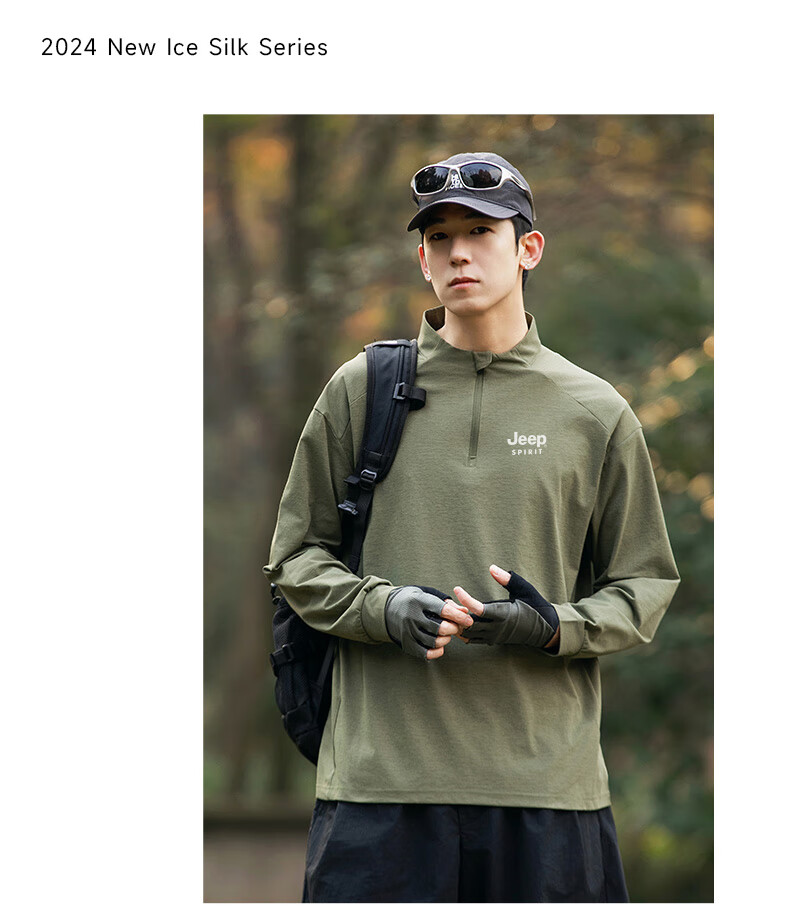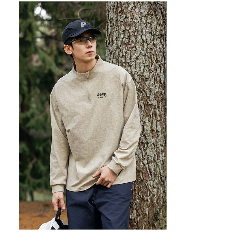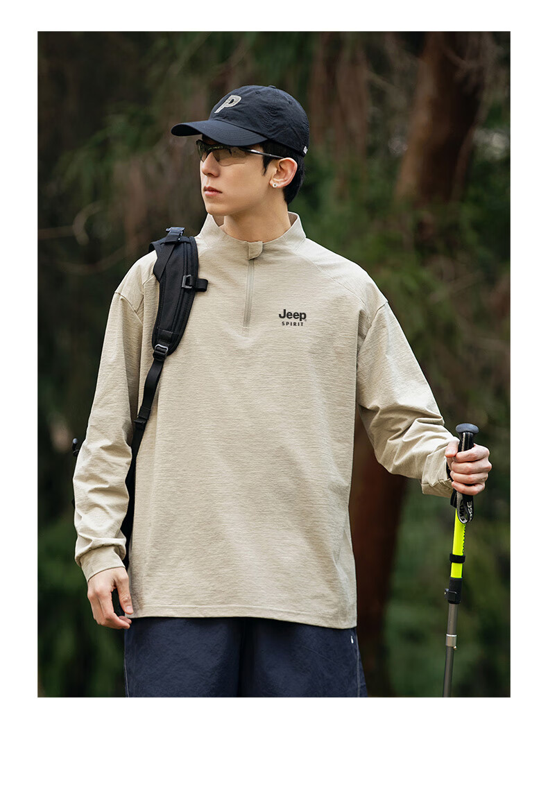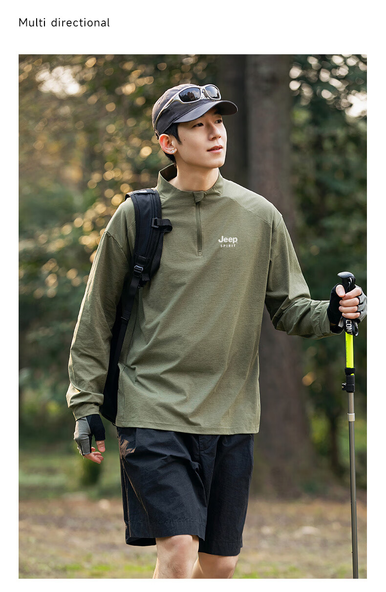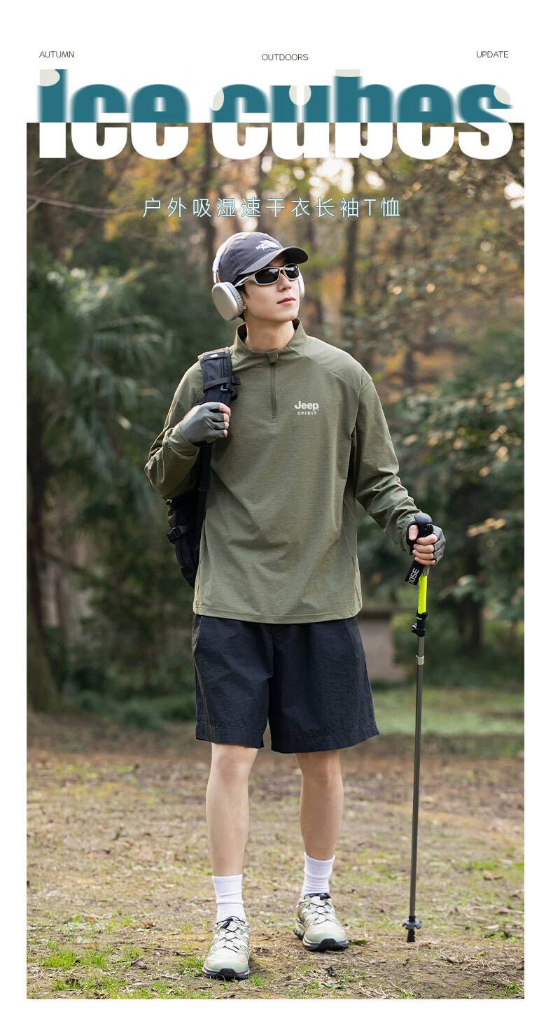JEEP SPIRIT Jeep long-sleeved T-shirt men's 2025 new spring and autumn sports running and cycling clothing casual men's long-sleeved T-shirt Green L Recommended weight 125-140Jin Jin equals 0.5 kg