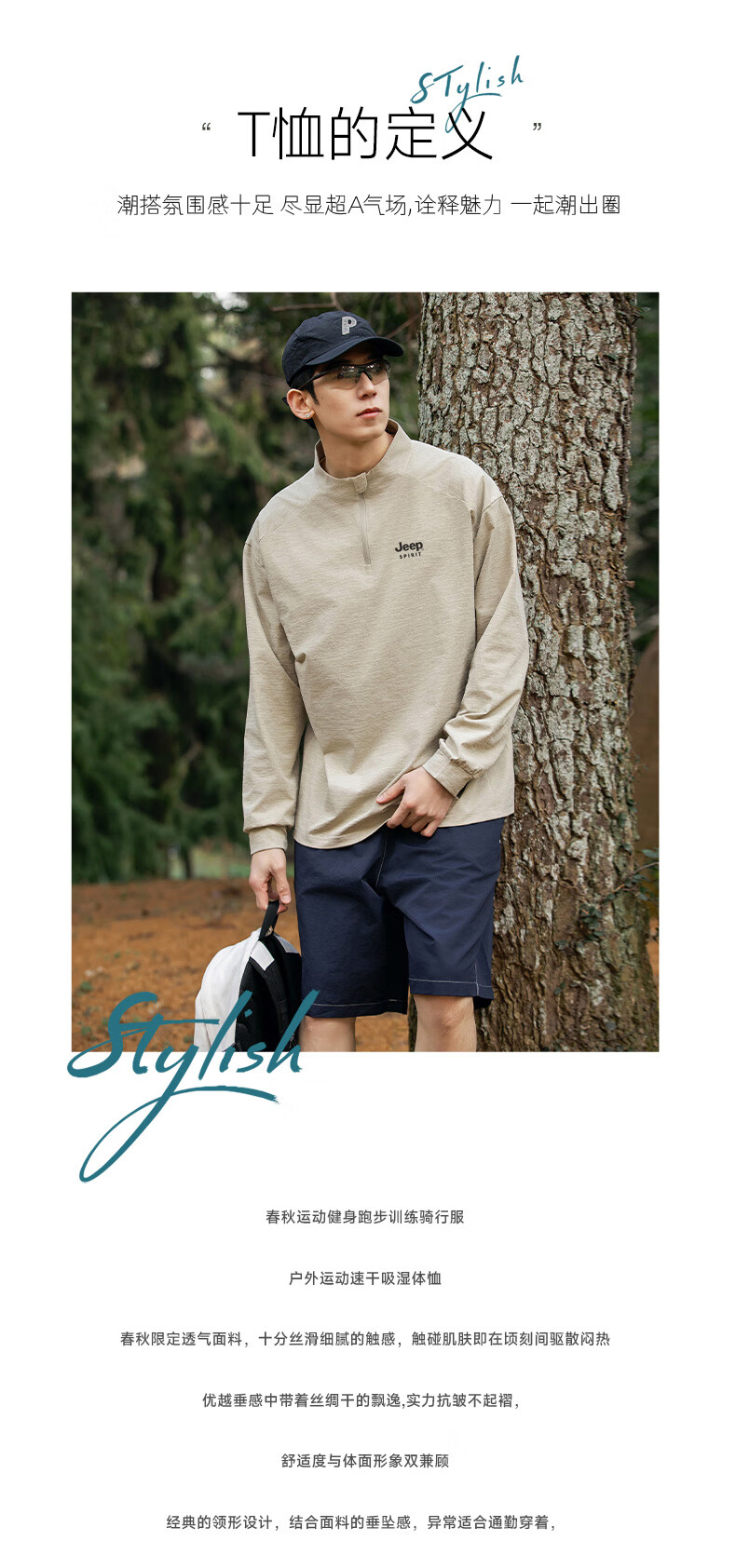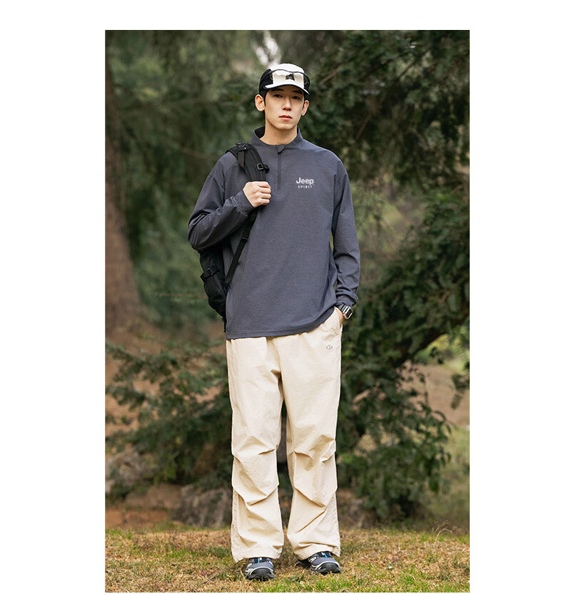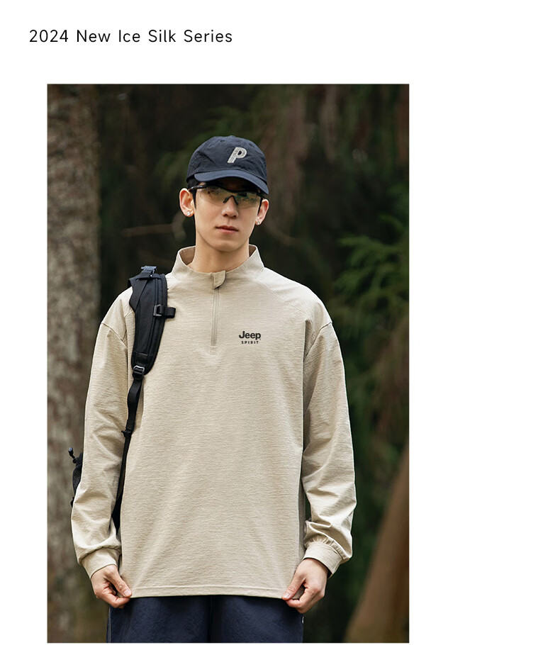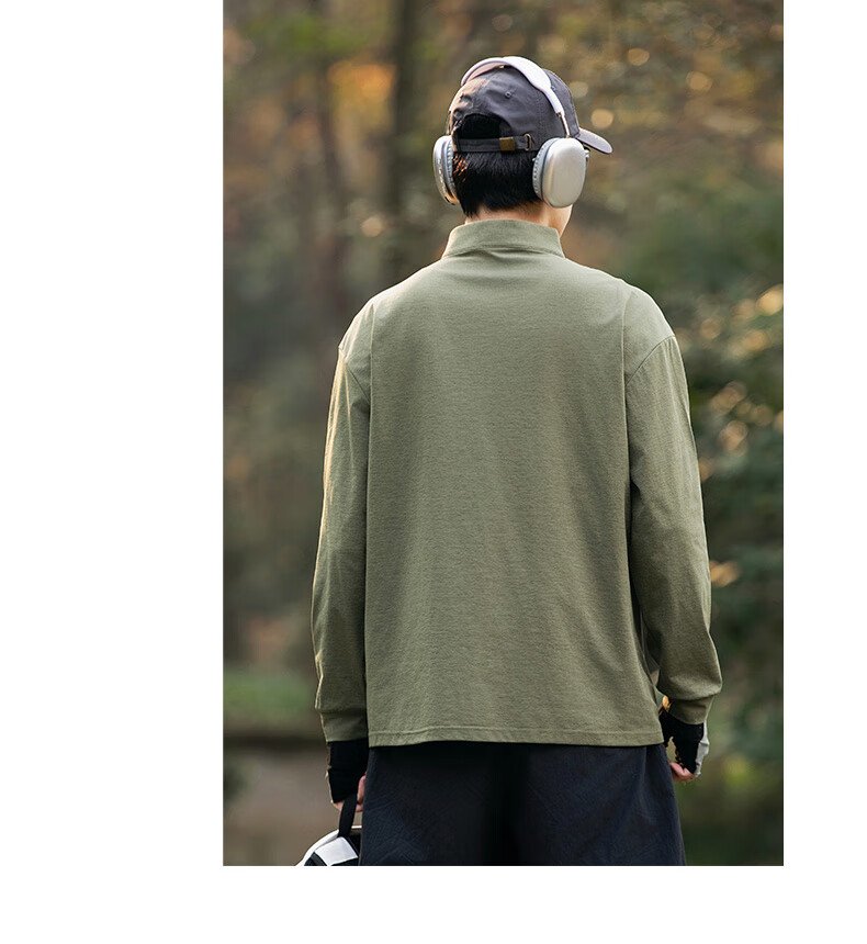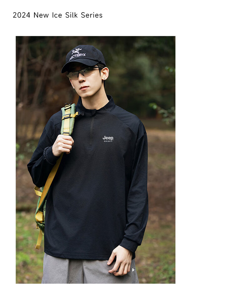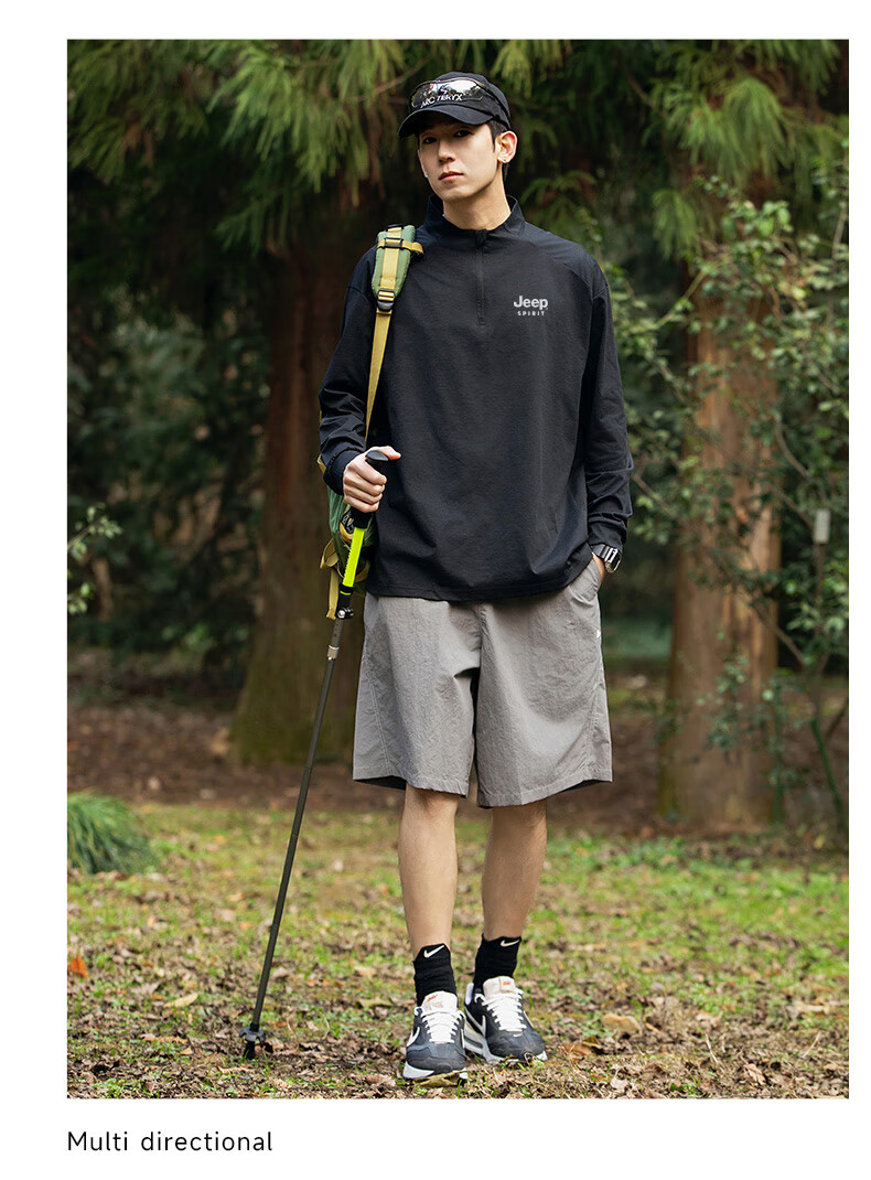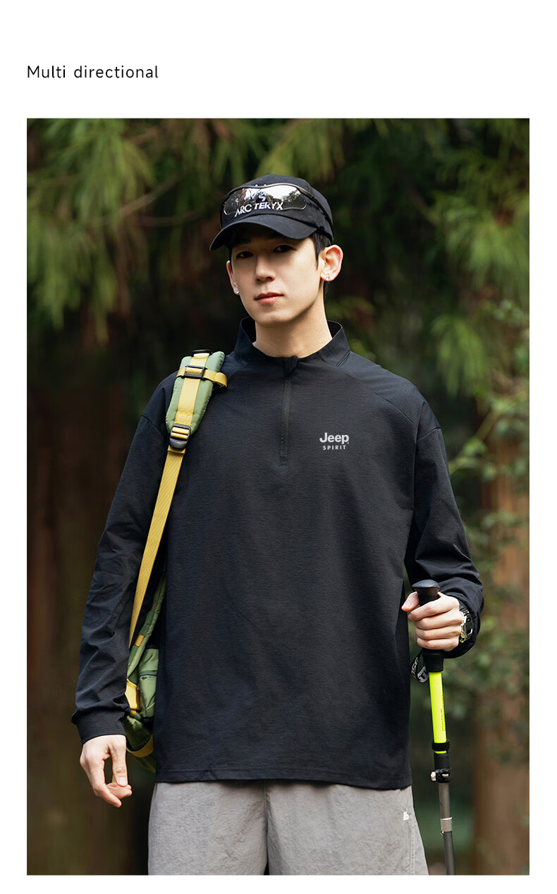 JEEP SPIRIT Jeep long-sleeved T-shirt men's 2025 new spring and autumn sports running and cycling clothing casual men's long-sleeved T-shirt Green L Recommended weight 125-140Jin Jin equals 0.5 kg