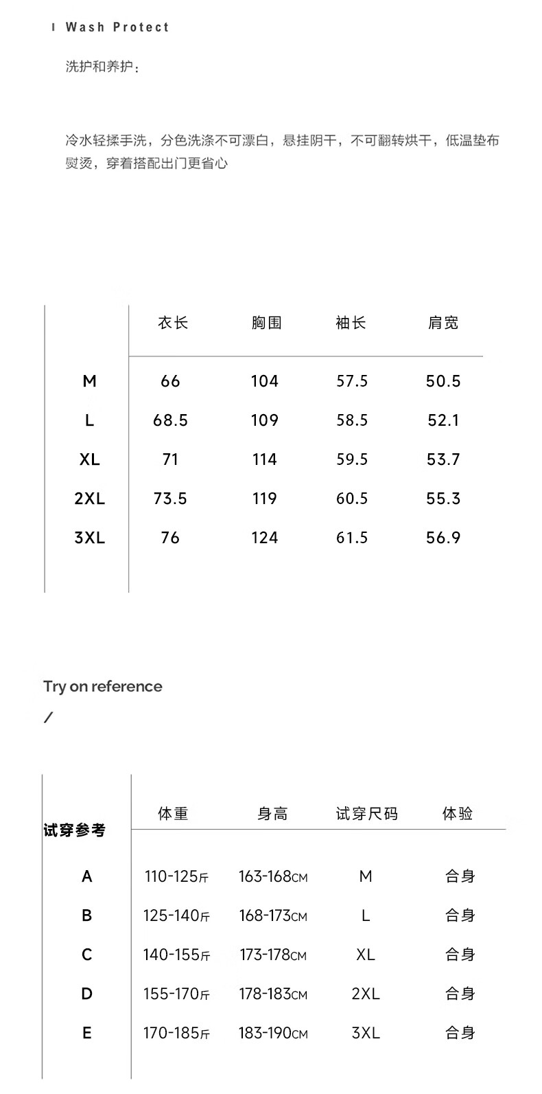 China (cm) 165 / 88-90 170 / 96-98 175 / 108-110 180 / 118-122 185 / 126-130