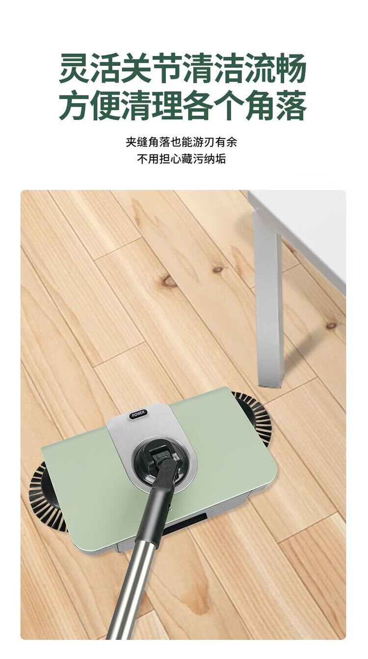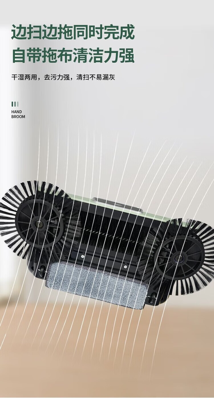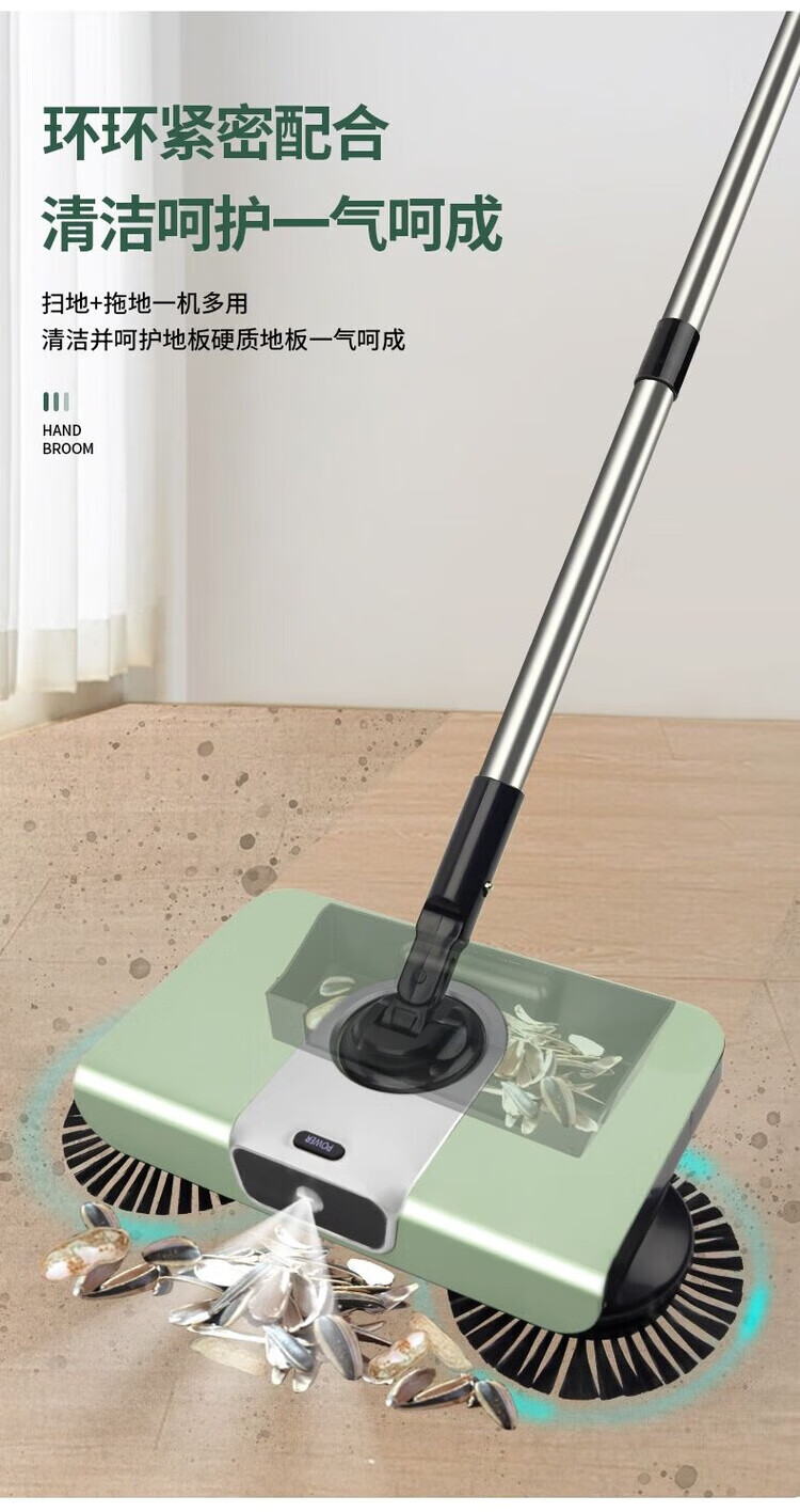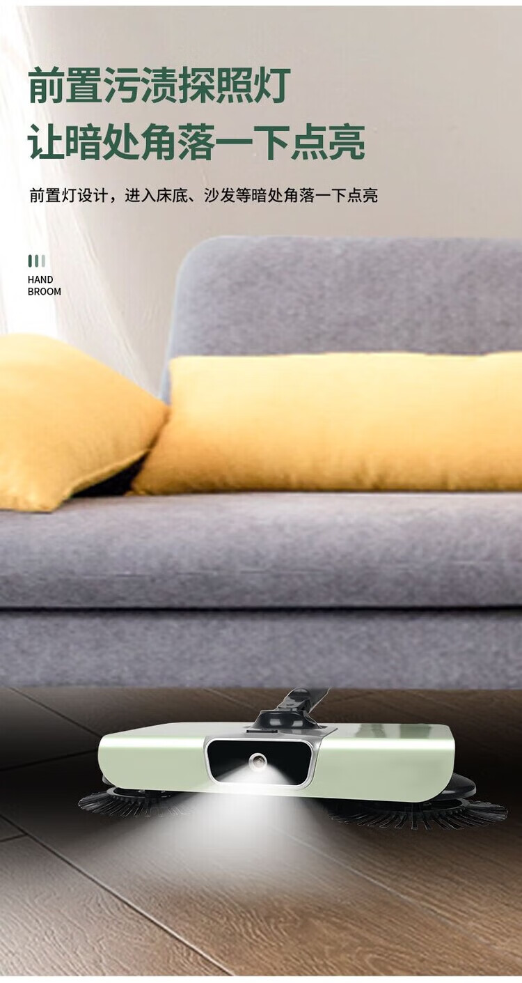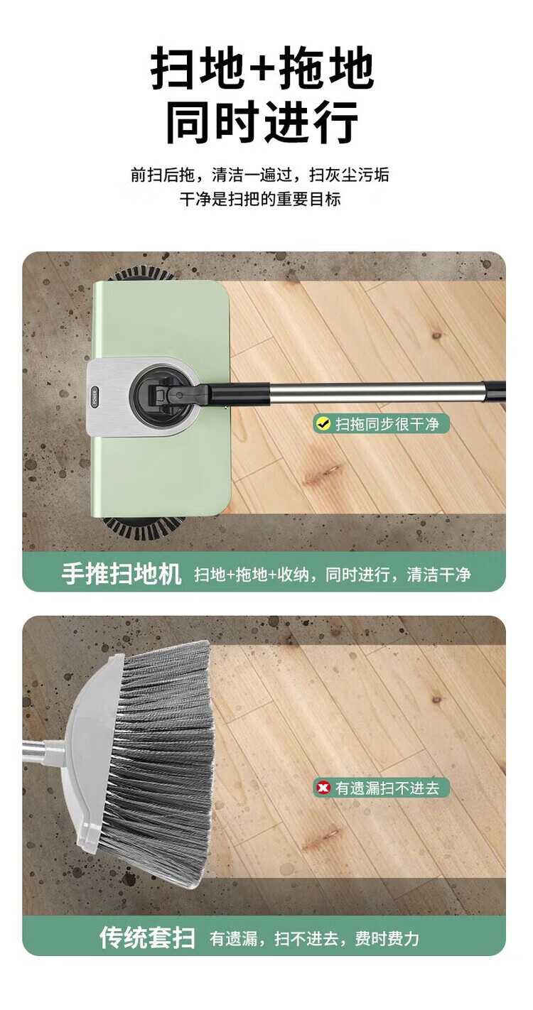 何佳功扫把簸箕套装神器刮板家用吸尘扫帚家用智能机器人黑科技神 旋风绿色【3块布带灯可抽出尘盒】