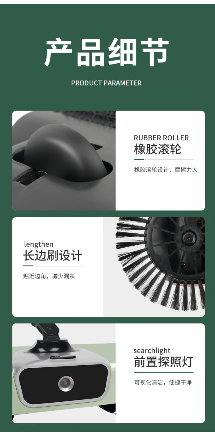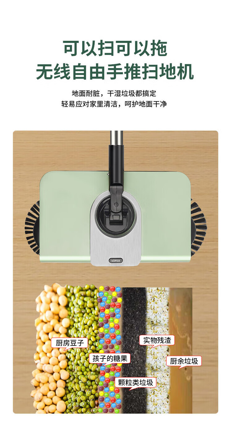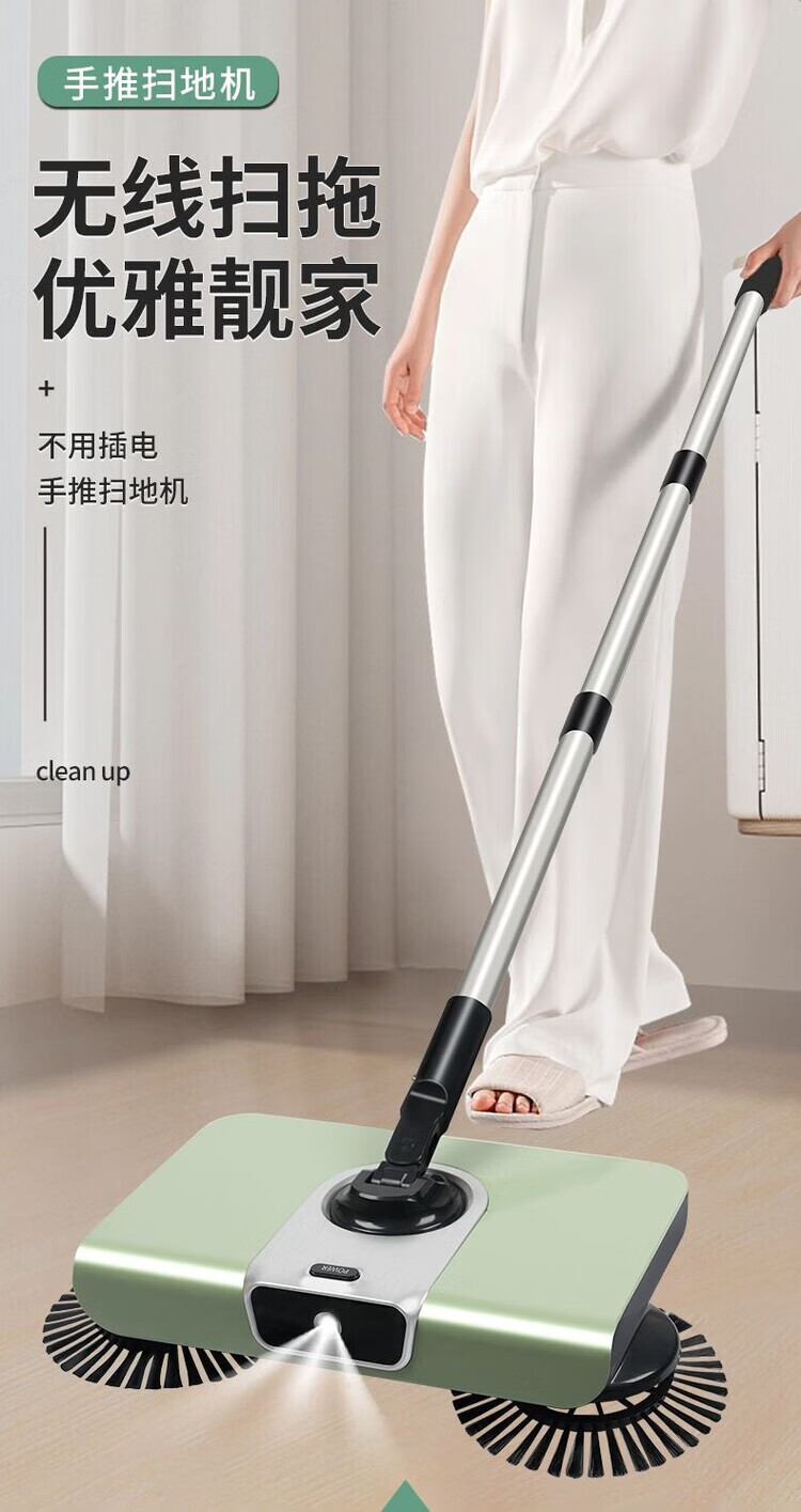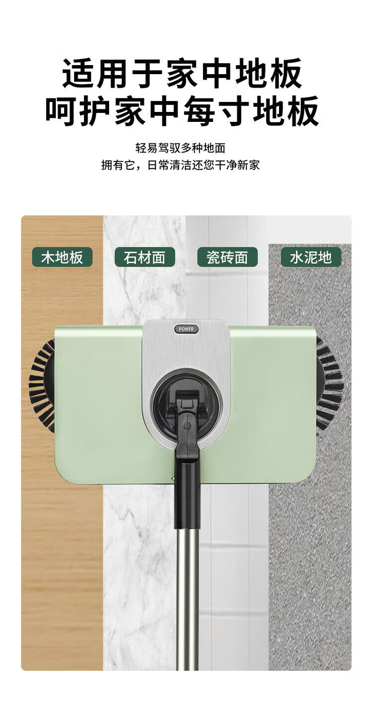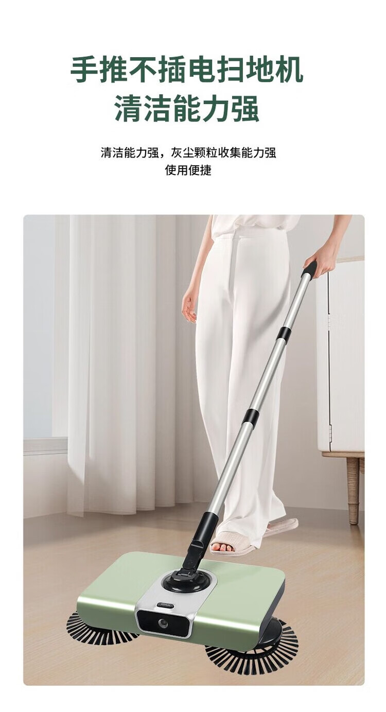 何佳功扫把簸箕套装神器刮板家用吸尘扫帚家用智能机器人黑科技神 旋风绿色【3块布带灯可抽出尘盒】