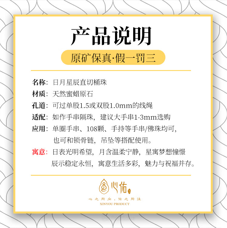 Xinyou natural Russian material beeswax sun and moon stars straight cut bucket beads Xingyue accessories diy cultural toy bracelets separated beads top beads beeswax sun and moon stars diameter about 7.5mm