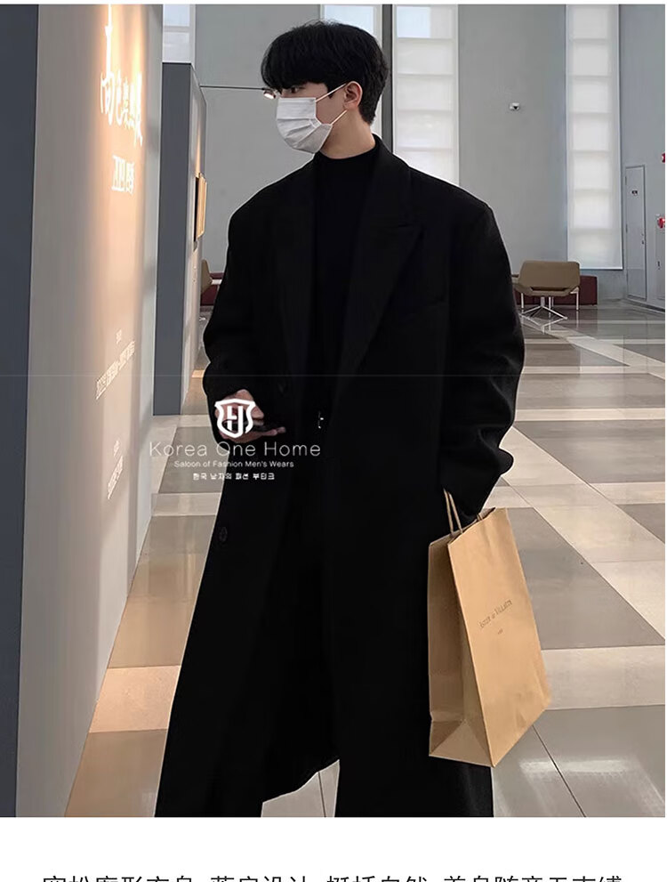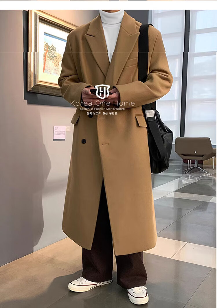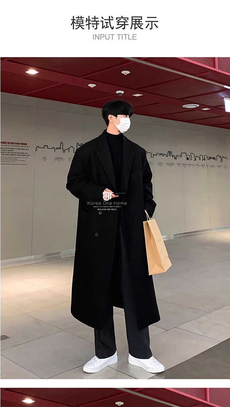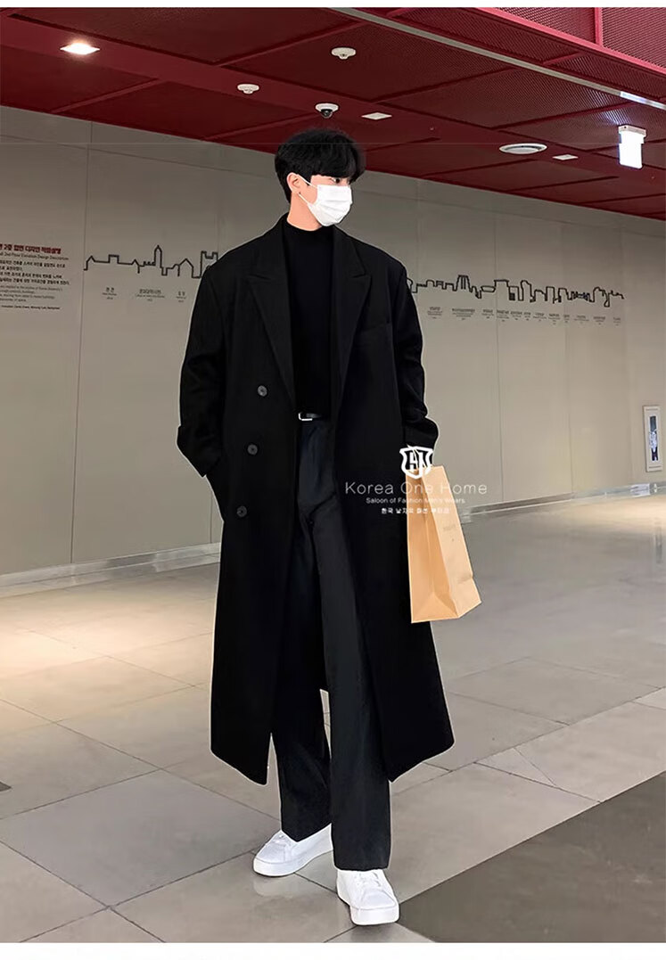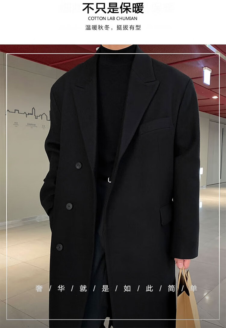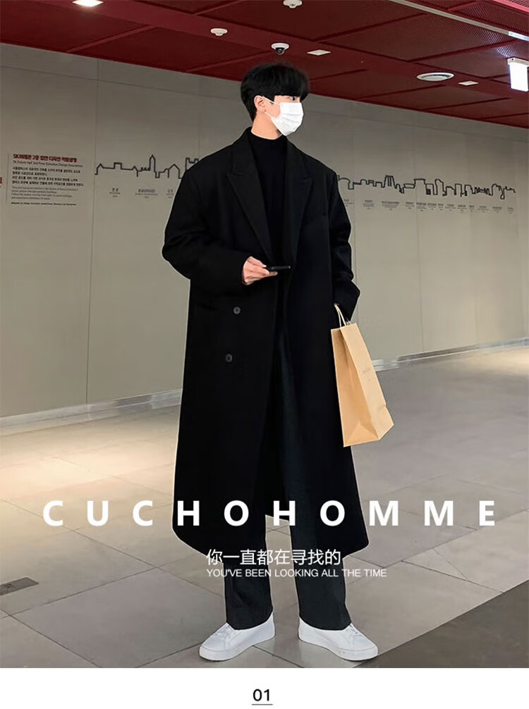 Woodpecker Windbreaker Jacket Men's Autumn and Winter 2025 New Korean Style Versatile Loose Off-Shoulder Mid-Length Over-the-Knee Thickened Woolen Coat Black Regular Style L Recommended 125-140 Jin Jin equals 0.5 kg
