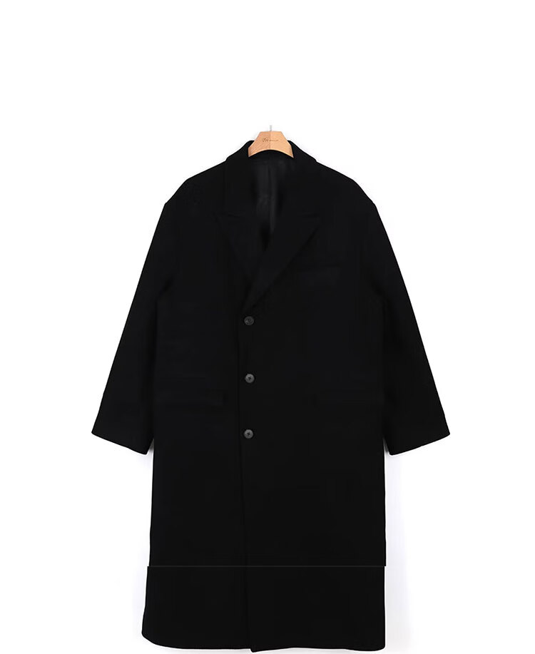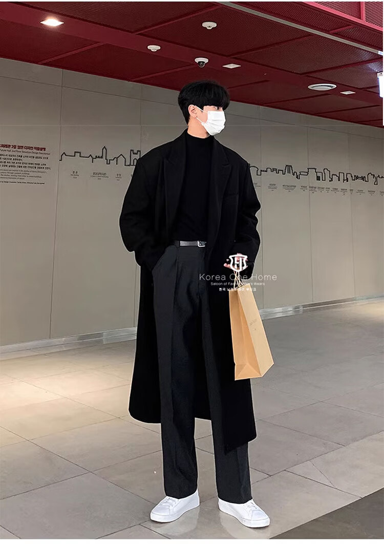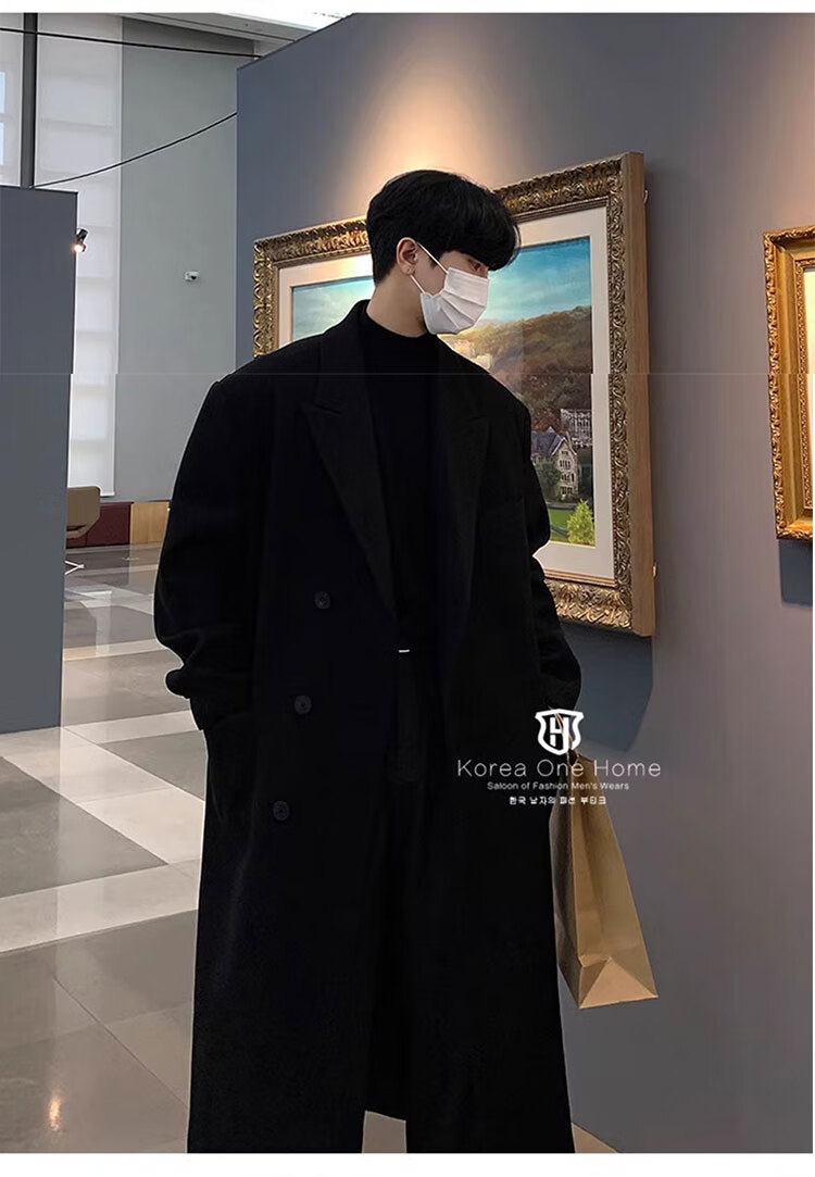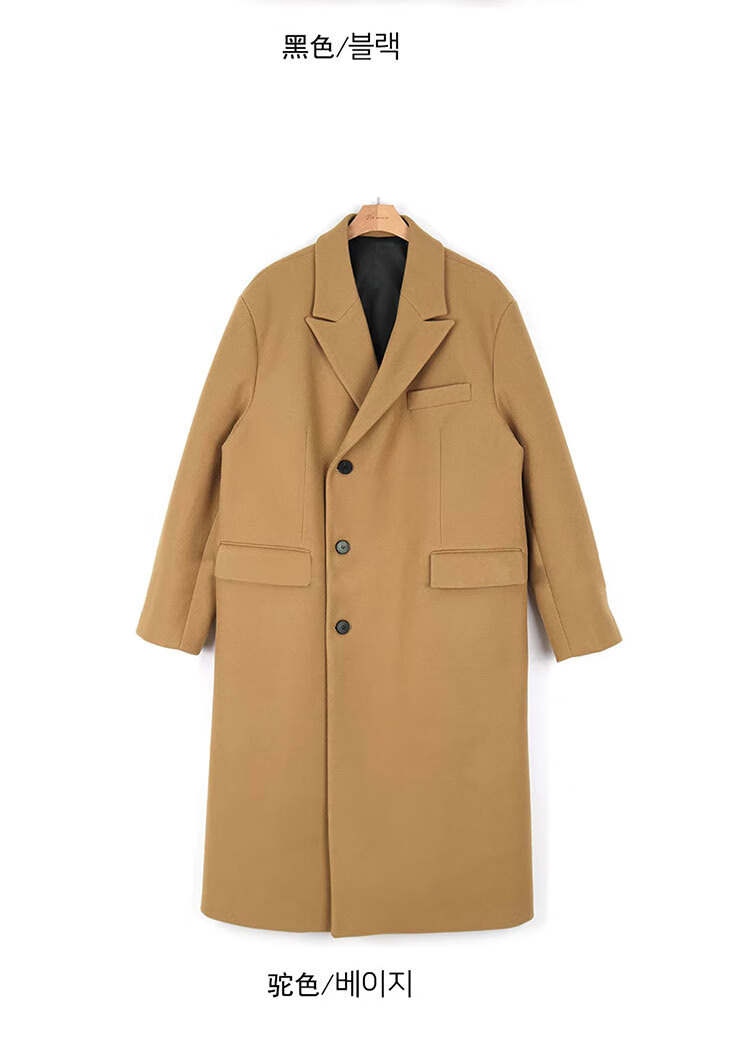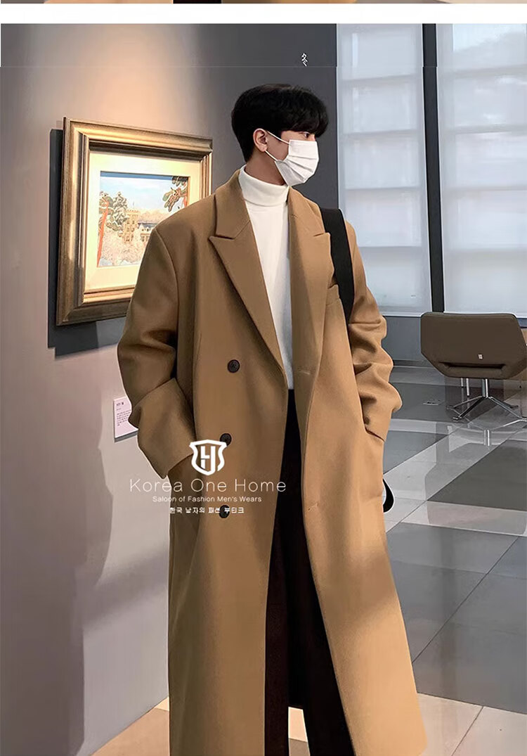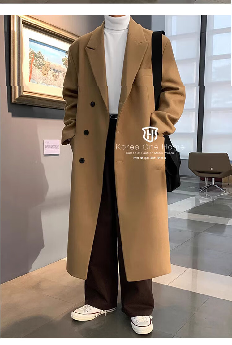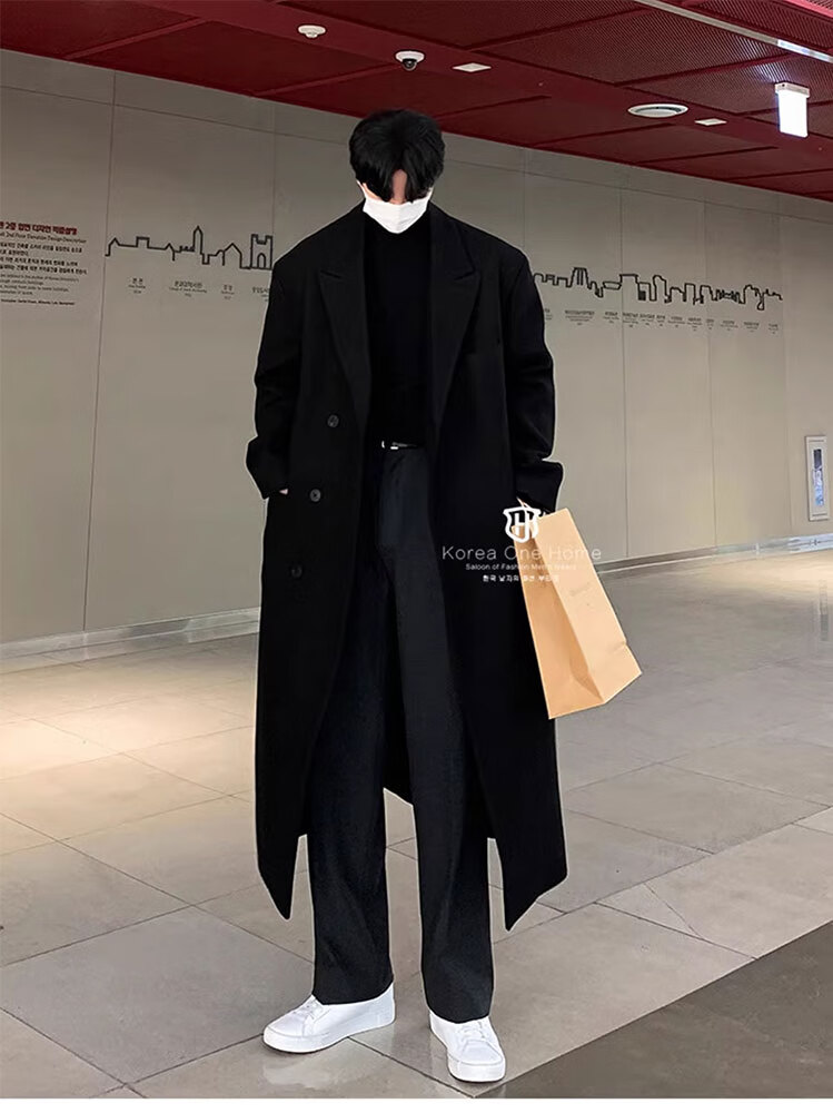 Woodpecker Windbreaker Jacket Men's Autumn and Winter 2025 New Korean Style Versatile Loose Off-Shoulder Mid-Length Over-the-Knee Thickened Woolen Coat Black Regular Style L Recommended 125-140 Jin Jin equals 0.5 kg