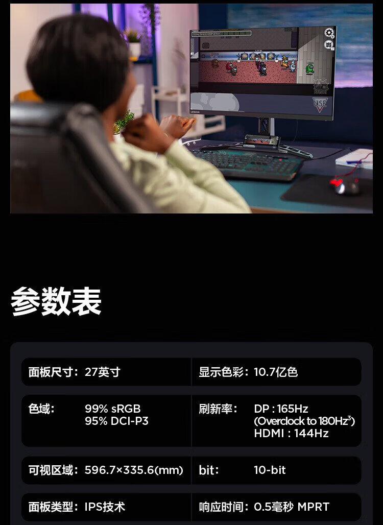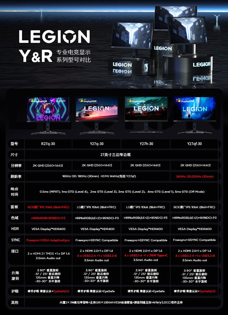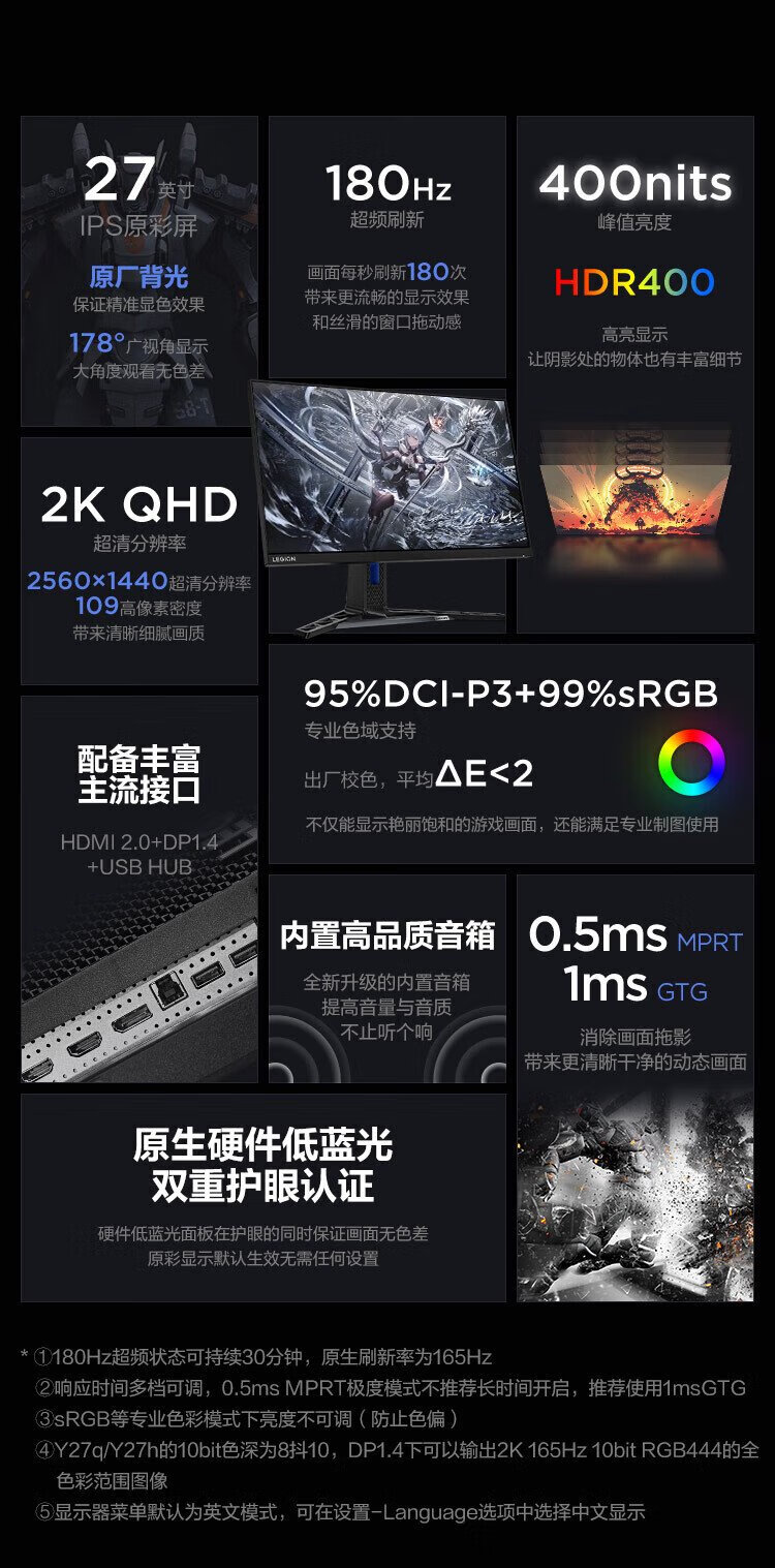 Lenovo (lenovo) Savior 27-inch 2K HD FastIPS computer display, high brush HDR400 lifting and rotating, hardware anti-blue light, gaming monitor R27qe Gen2 2K ultra-clear, native 200Hz
