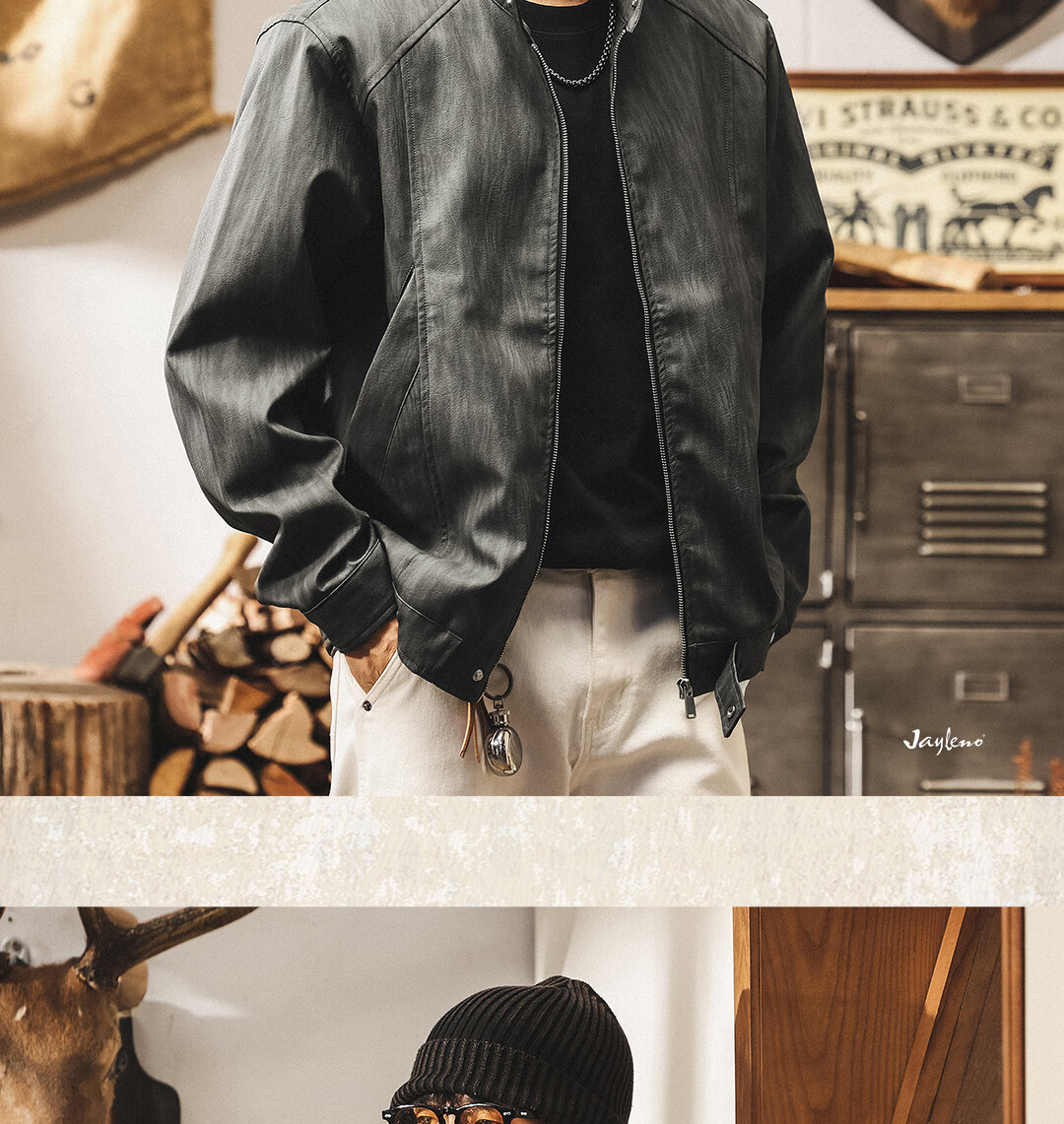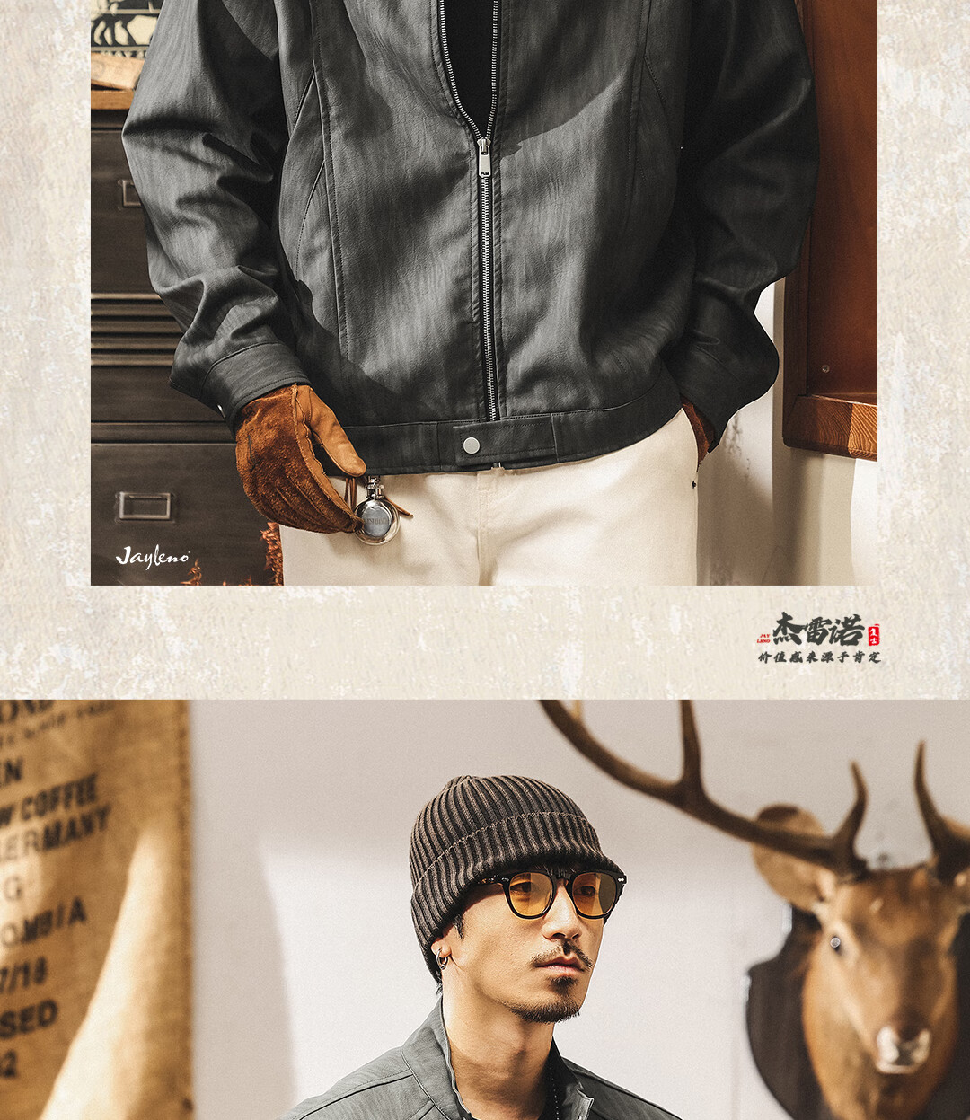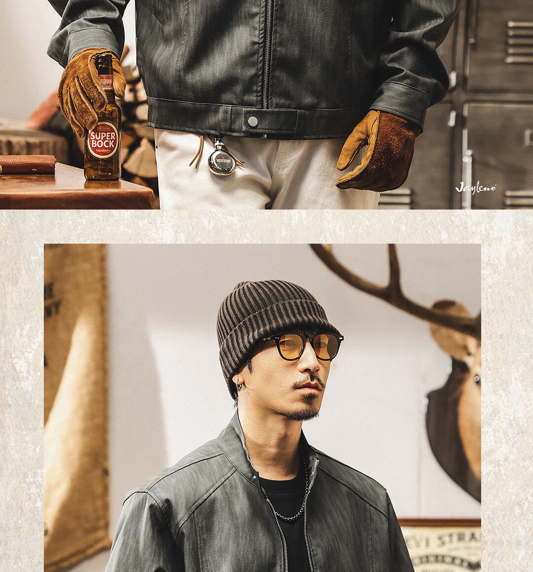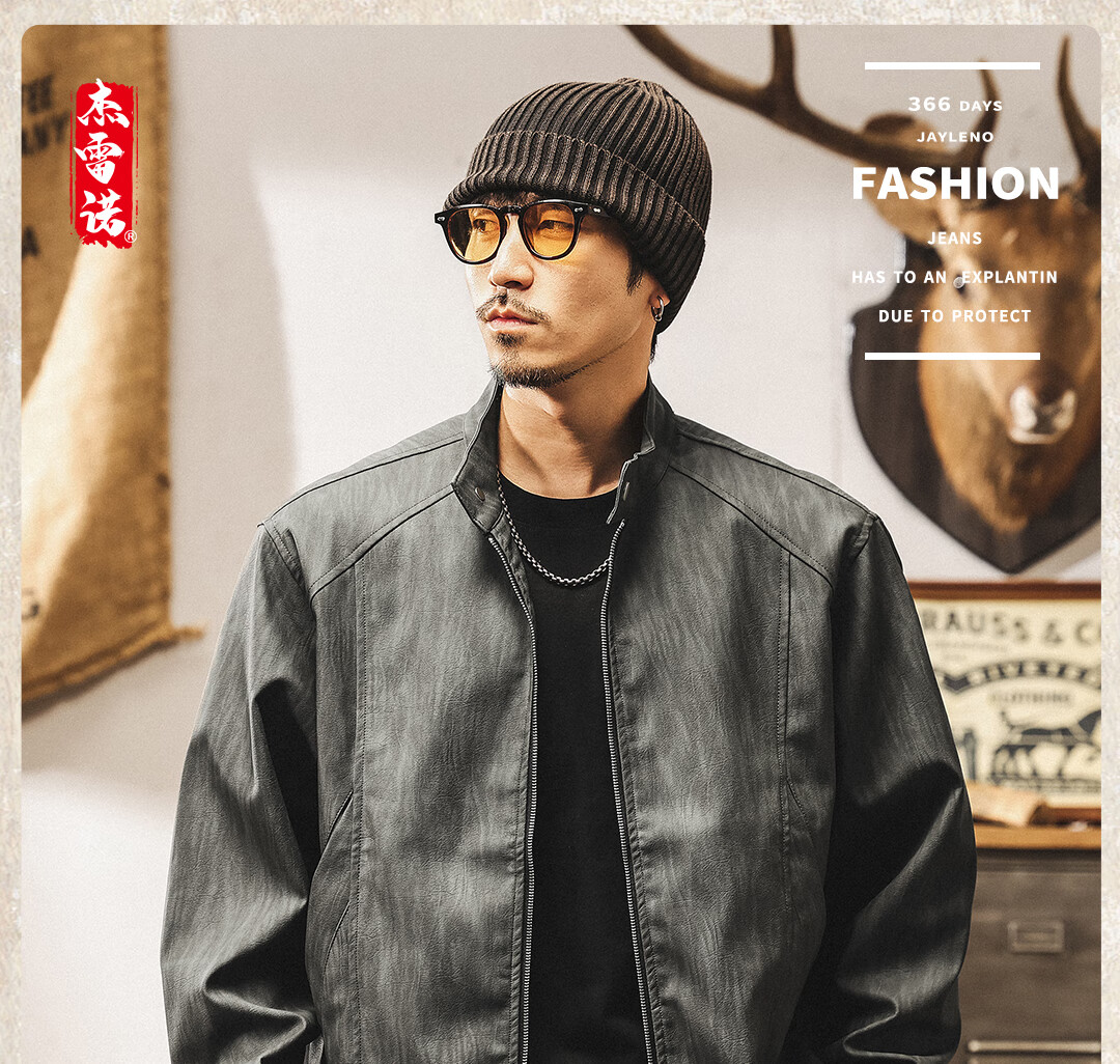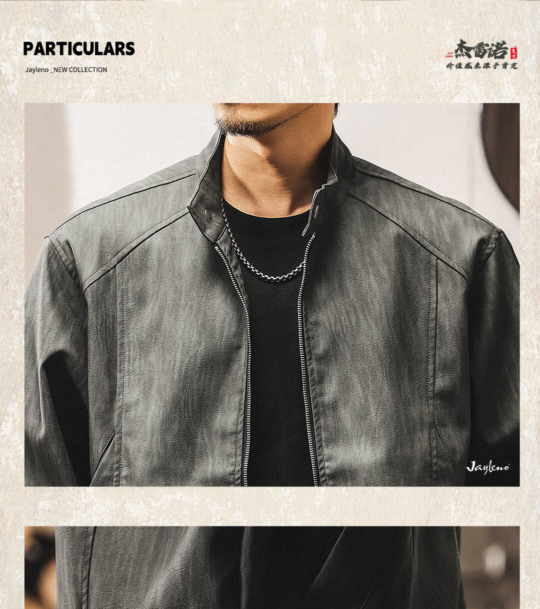 Jay Leno American retro deconstructed motorcycle leather jacket men's spring and autumn 2025 new trendy brand street tough guy handsome leather jacket gray M suitable for 100-125 Jin Jin equals 0.5 kg