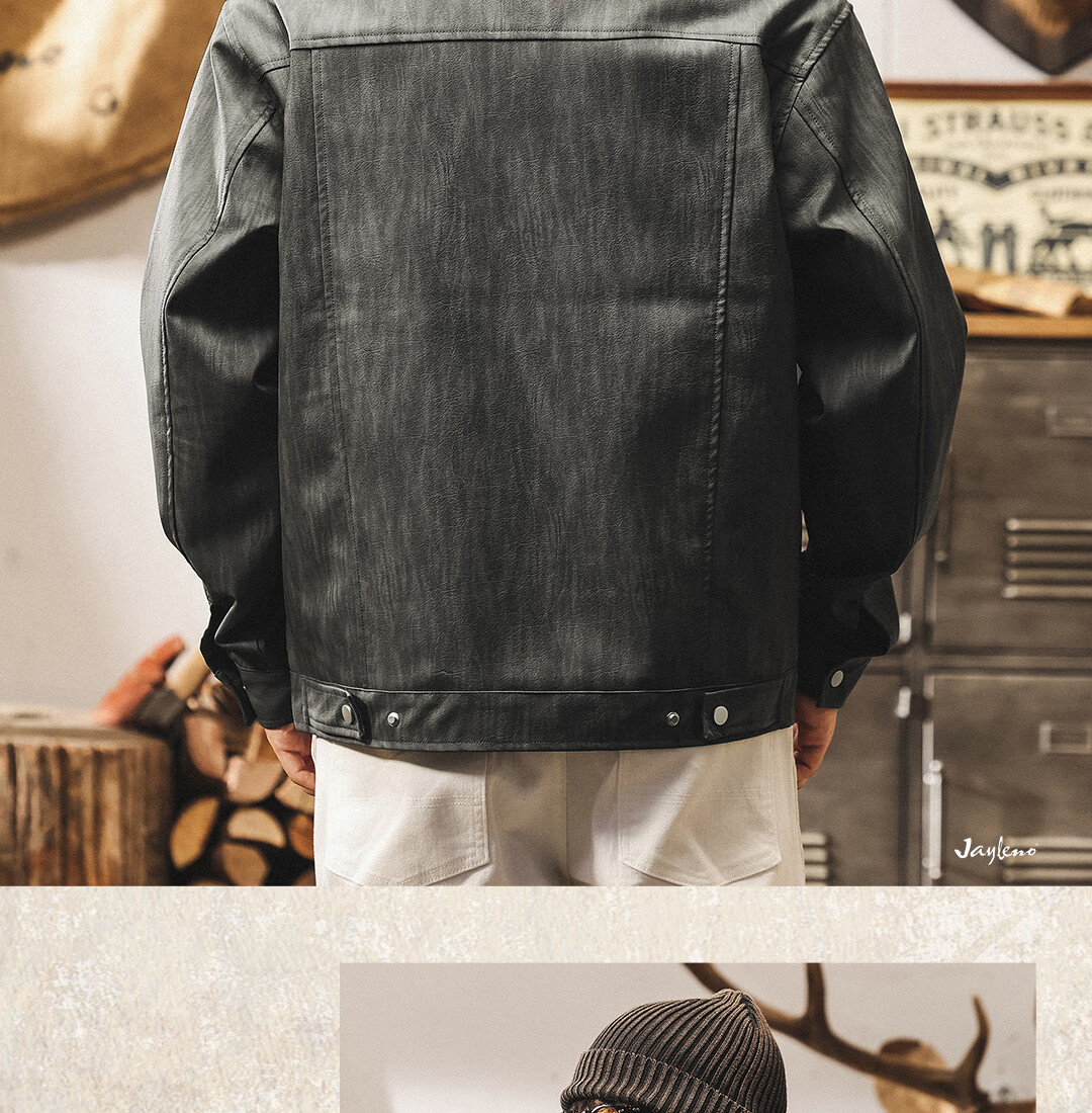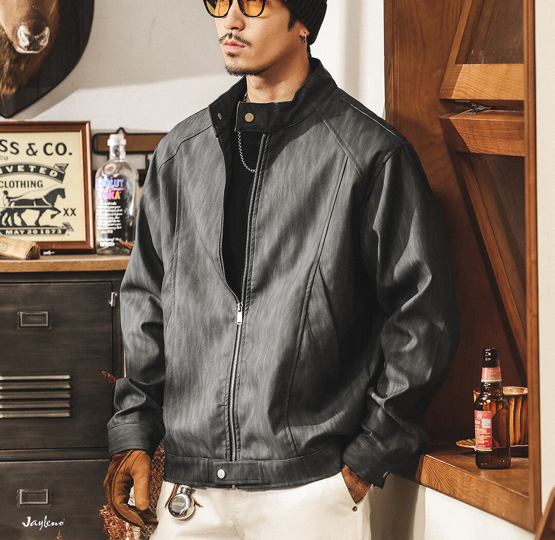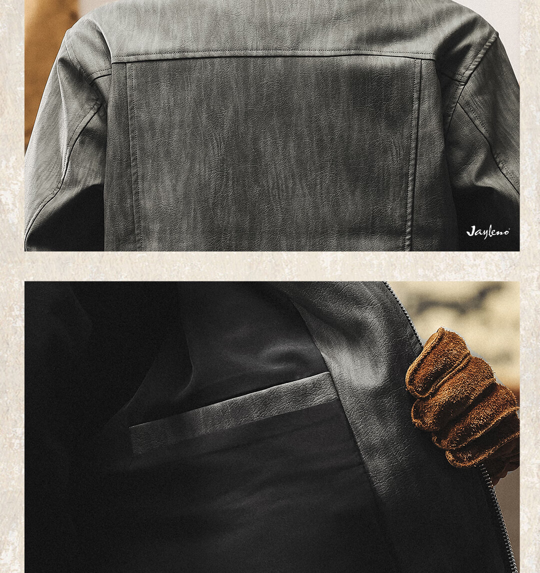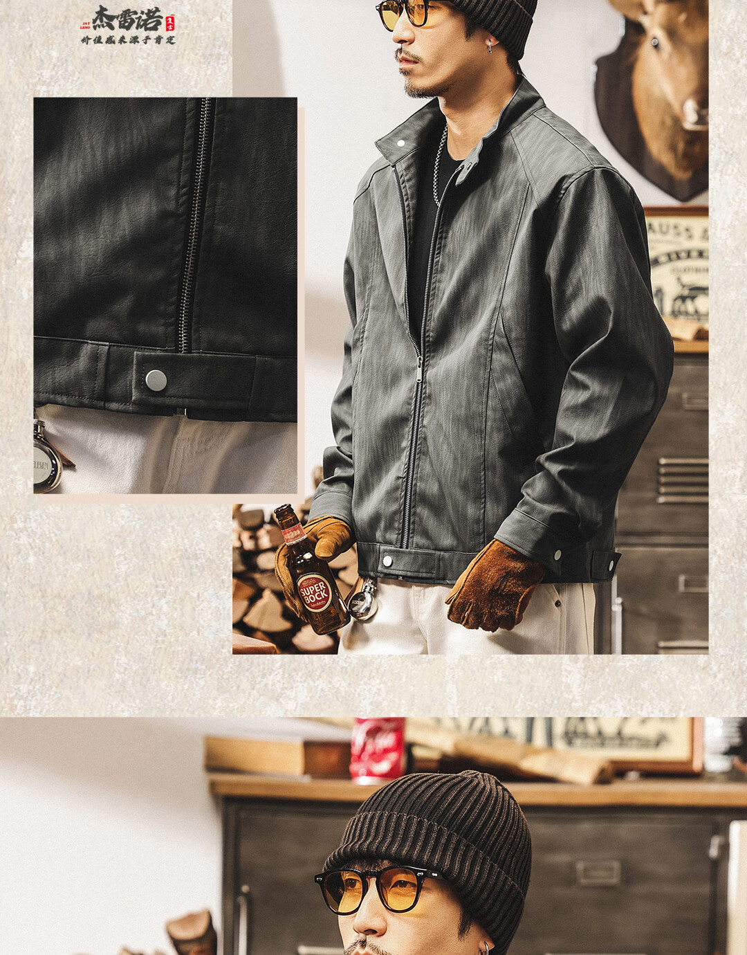Jay Leno American retro deconstructed motorcycle leather jacket men's spring and autumn 2025 new trendy brand street tough guy handsome leather jacket gray M suitable for 100-125 Jin Jin equals 0.5 kg