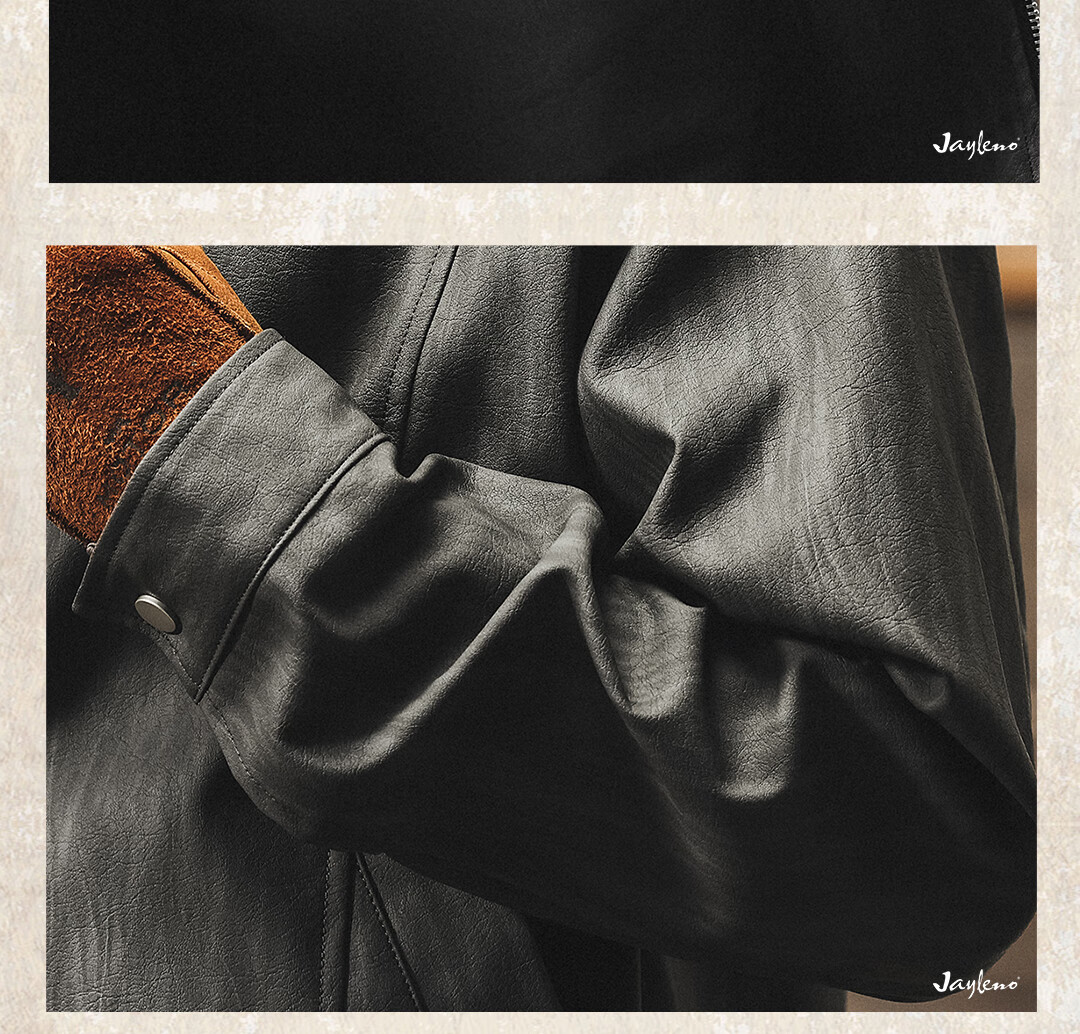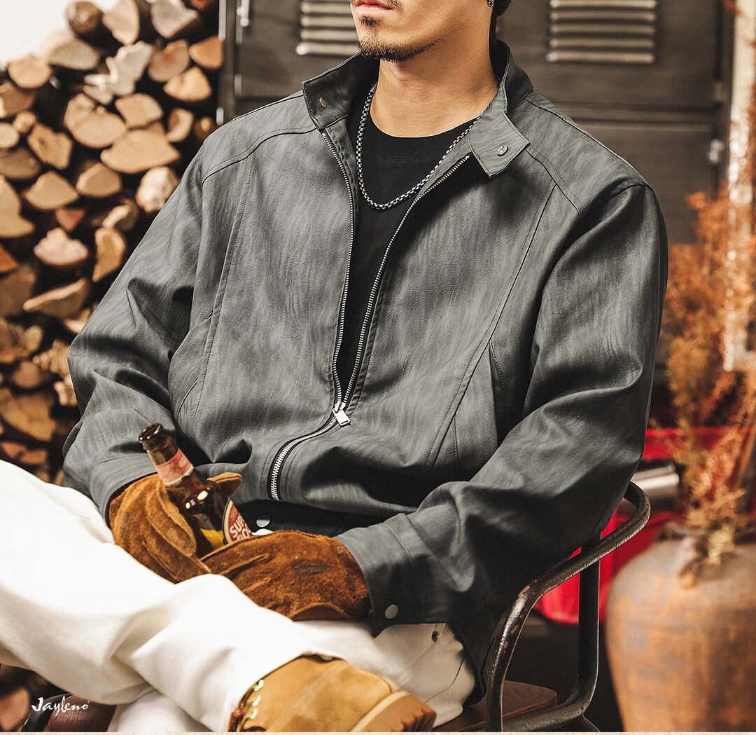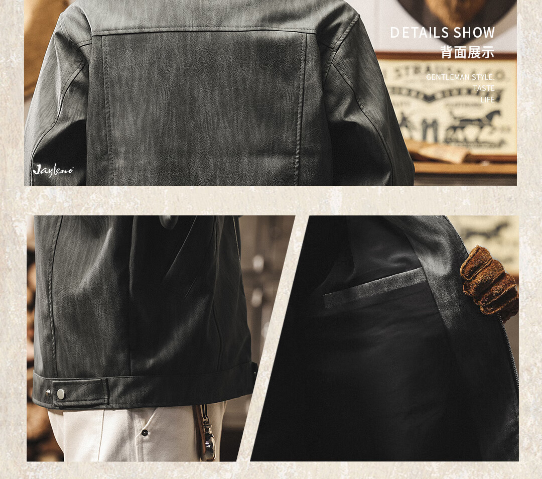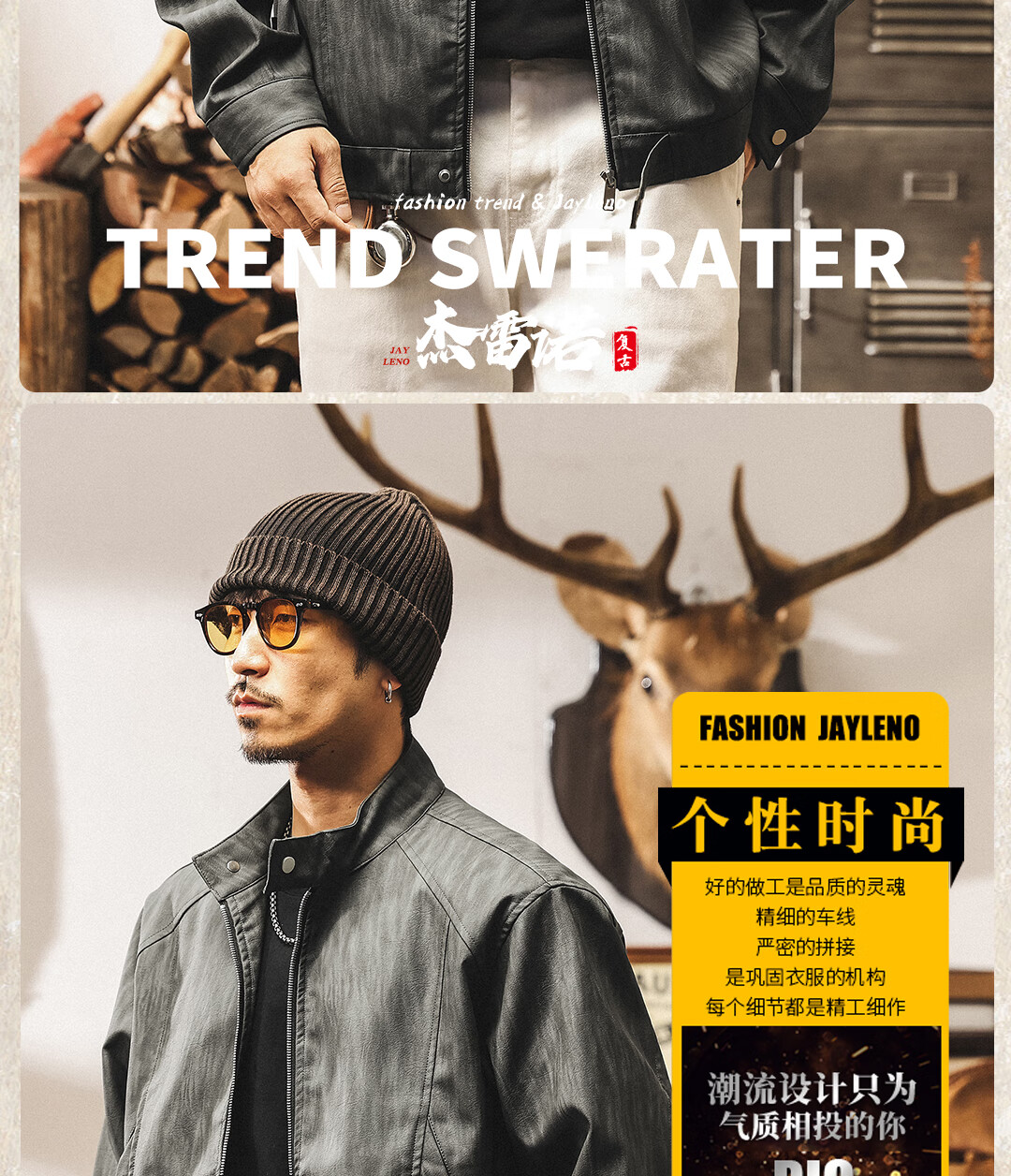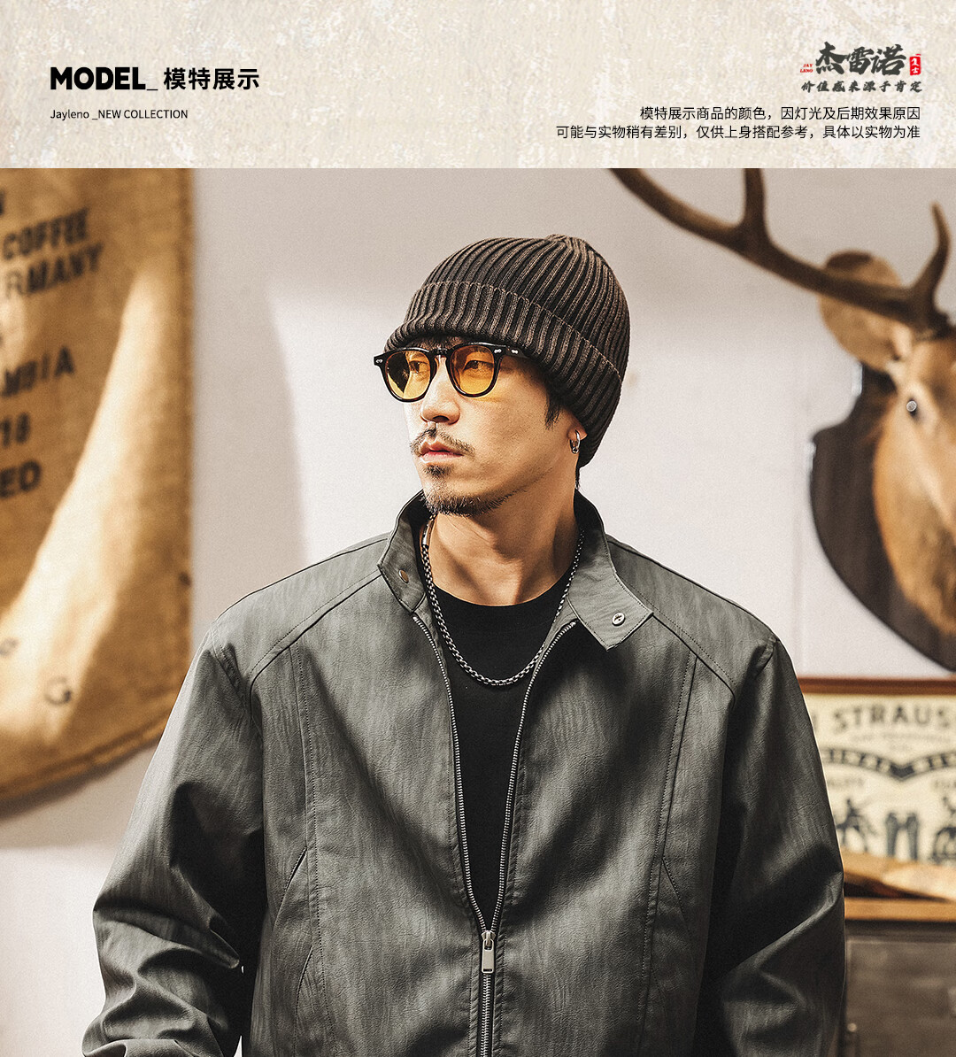 Jay Leno American retro deconstructed motorcycle leather jacket men's spring and autumn 2025 new trendy brand street tough guy handsome leather jacket gray M suitable for 100-125 Jin Jin equals 0.5 kg