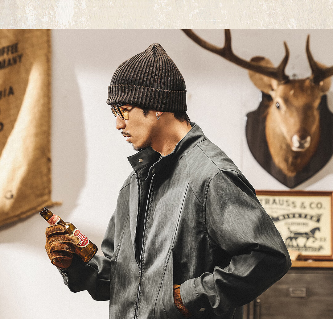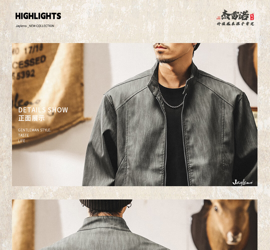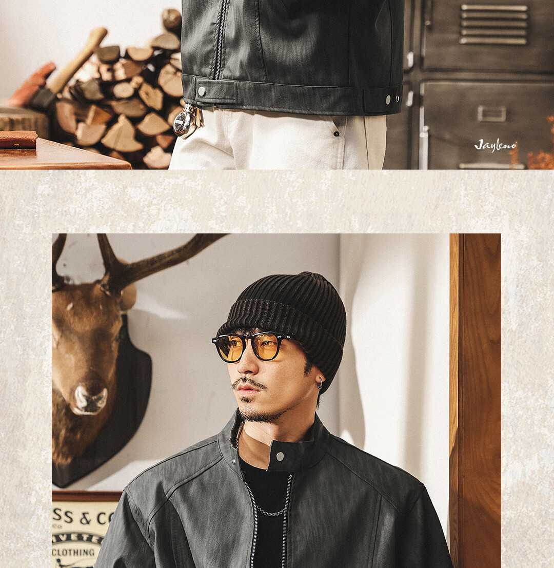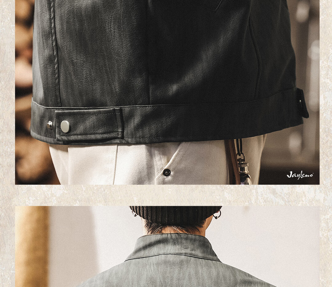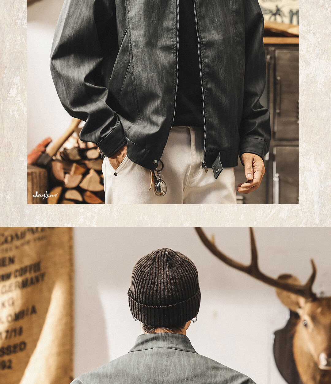 Jay Leno American retro deconstructed motorcycle leather jacket men's spring and autumn 2025 new trendy brand street tough guy handsome leather jacket gray M suitable for 100-125 Jin Jin equals 0.5 kg