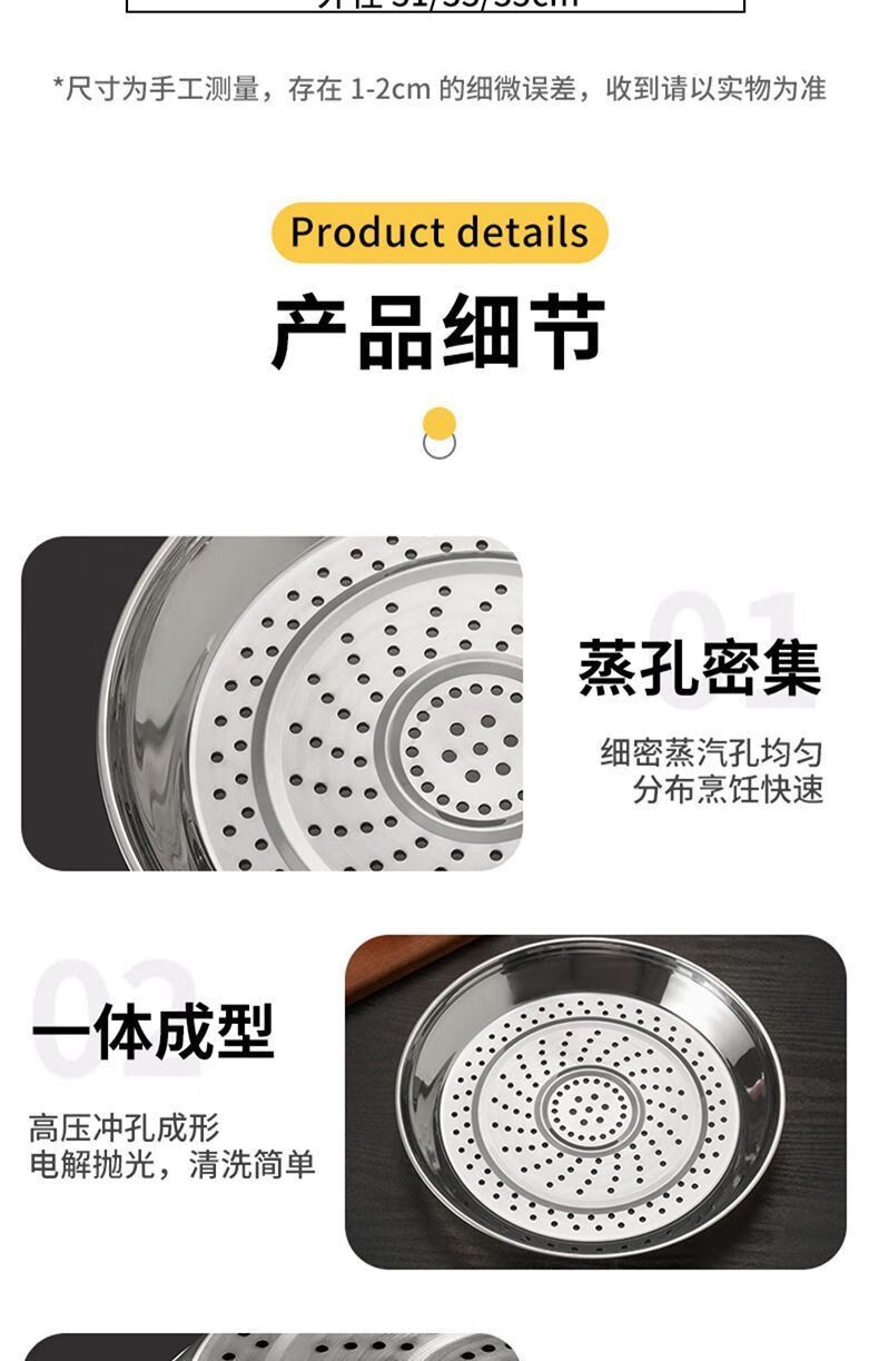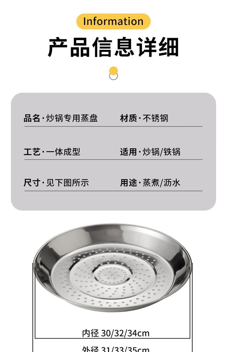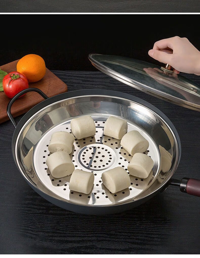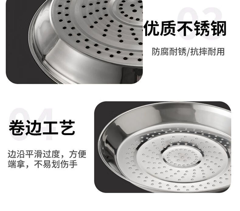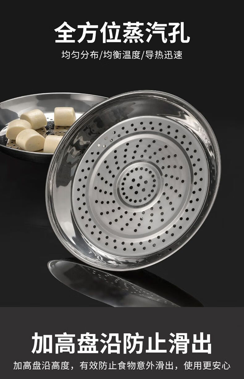 Steaming tray stainless steel steaming rack household frying pan thickened steam grid steamer rice cooker steamer basket steamer universal universal antibacterial steaming tray inner diameter 30CM