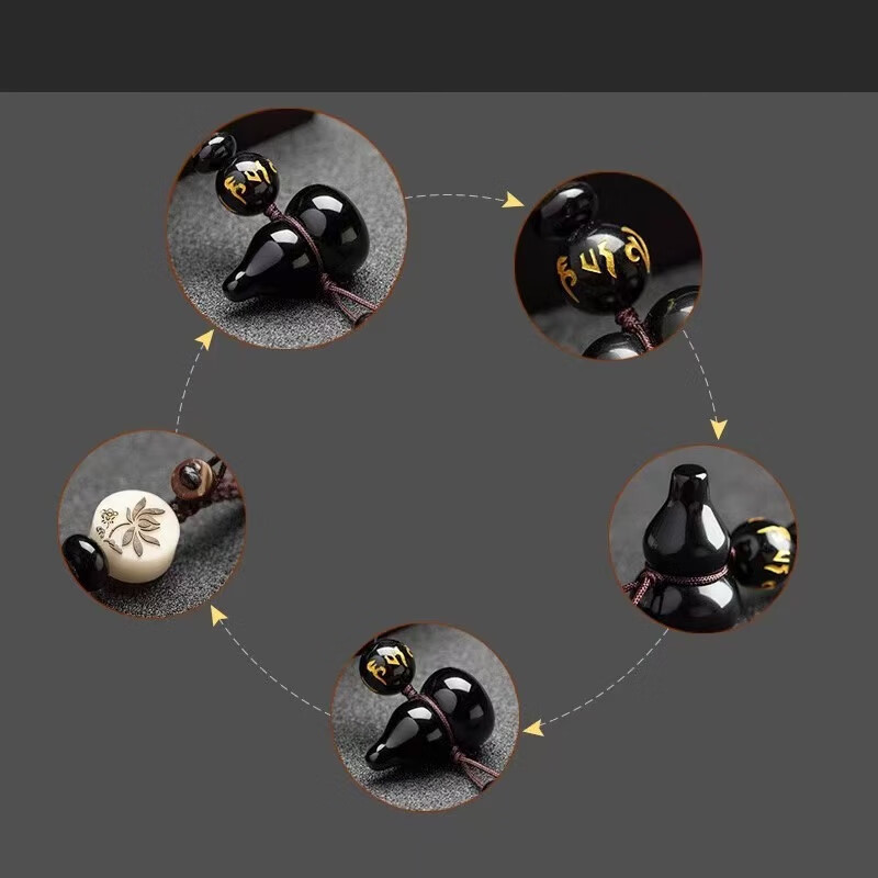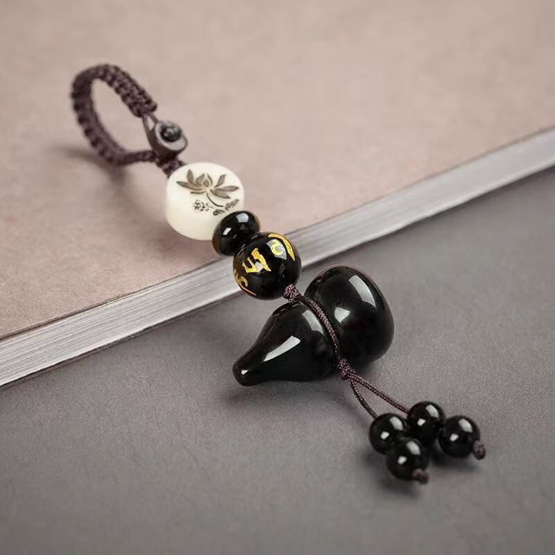 Obsidian gourd pendant keychain Fulu Lotus accessories pendant mobile phone wallet car key pendant jewelry Ping An large size