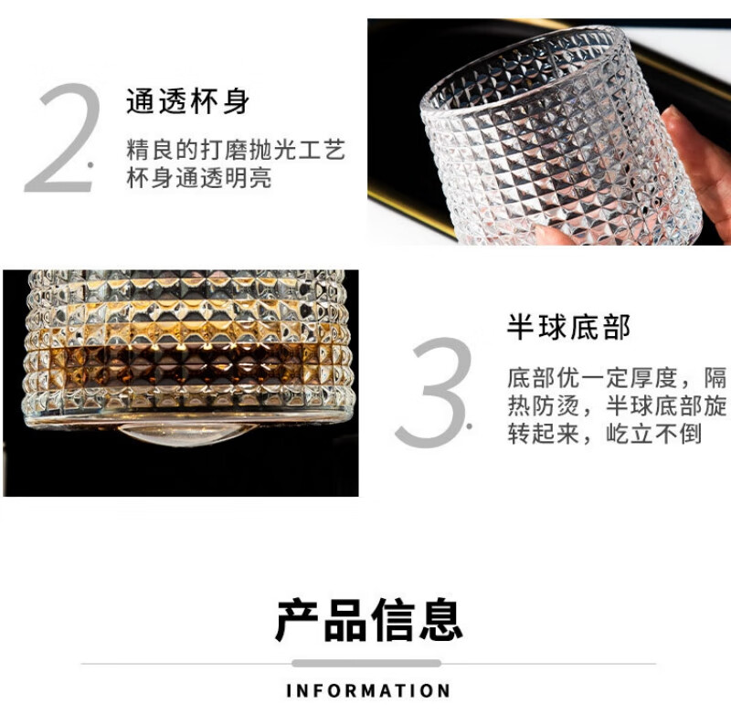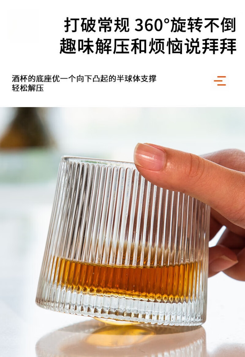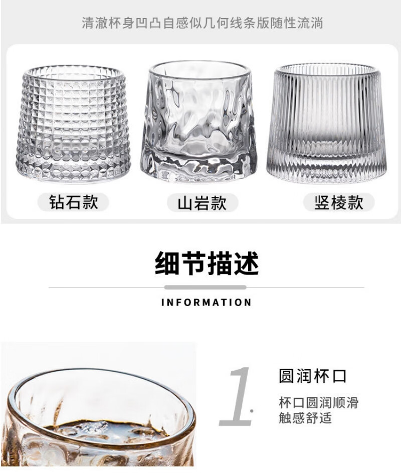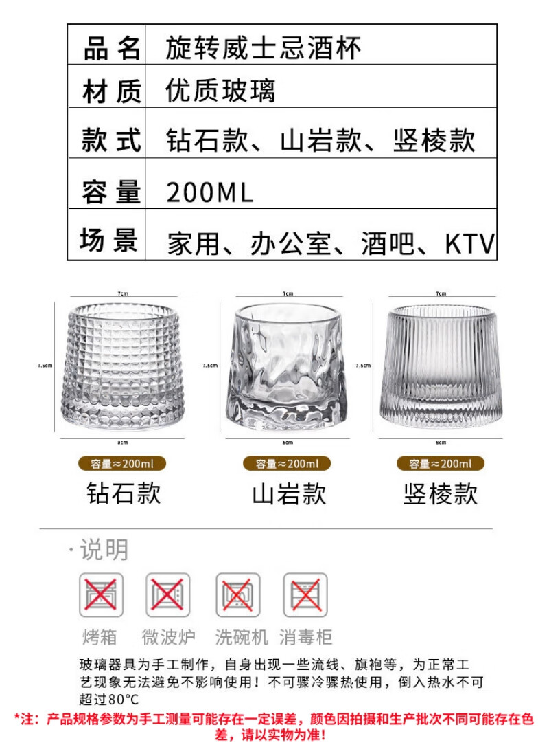 Dongzhitiandi Whiskey Glass Gyro Rotatable Crystal Glass Home Creative Tumbler Wine Glass Foreign Wine Glass Spirit Glass Glacier Style*2+Diamond Style*2+Vertical Pattern Style*2