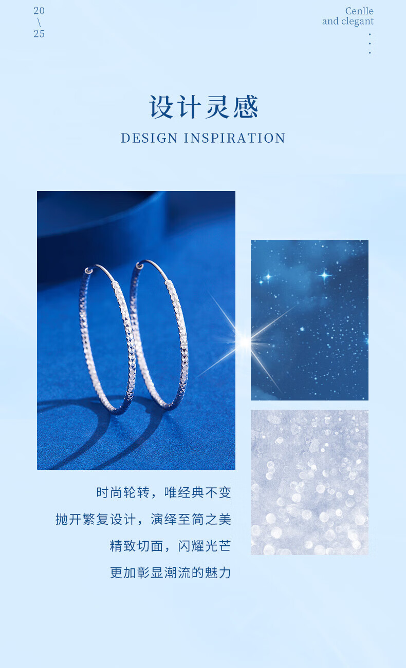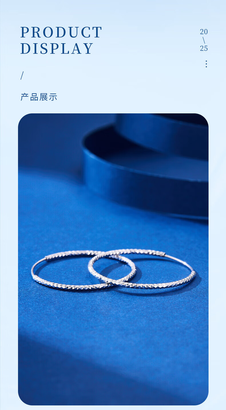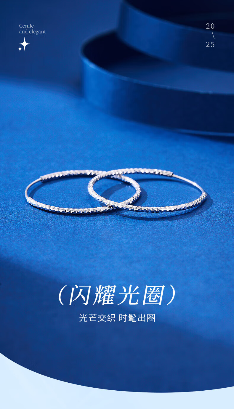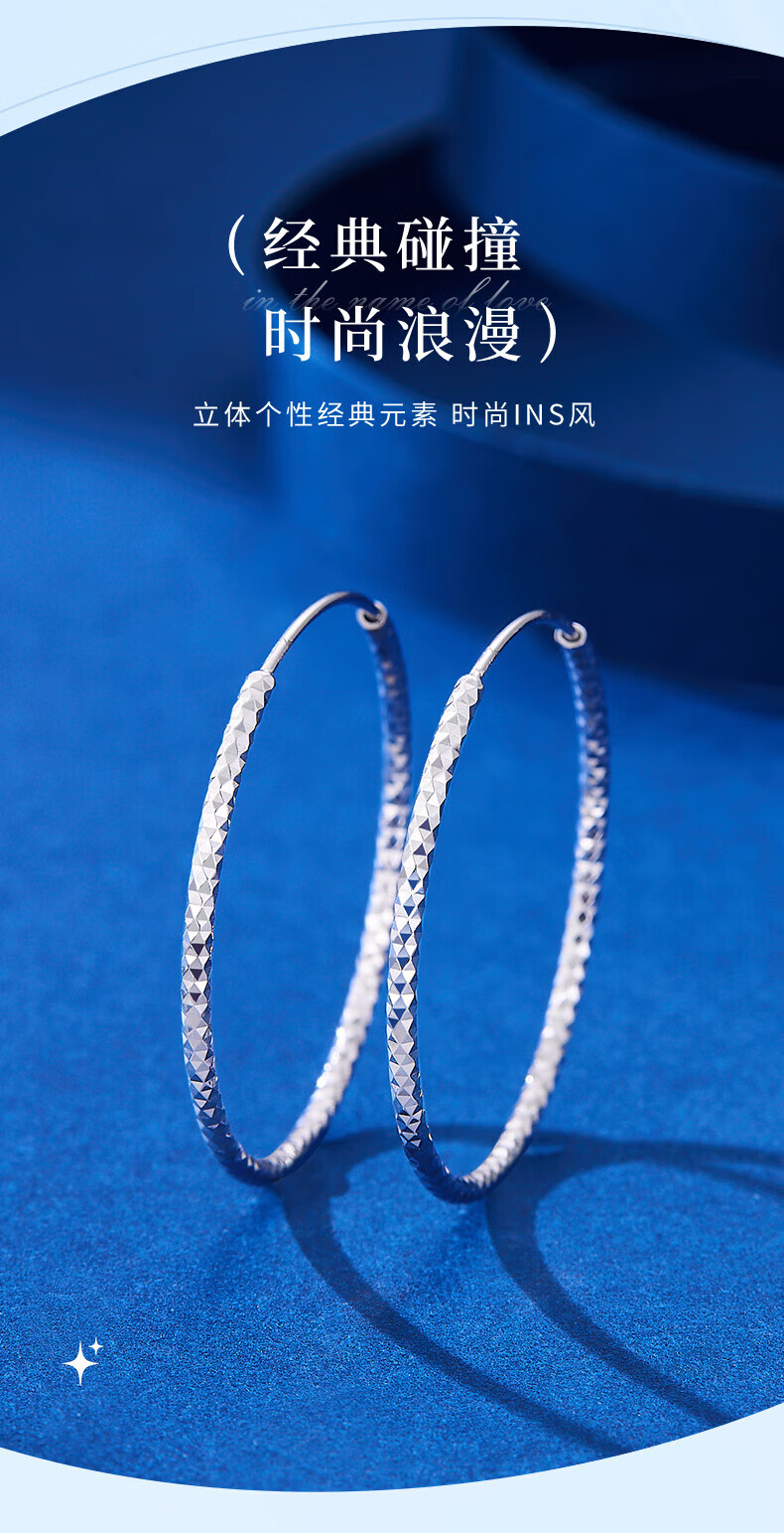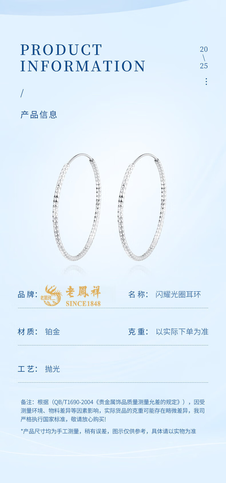 Lao Fengxiang pt950 platinum earrings for women platinum halo earrings plain hoop earrings Valentine's Day birthday gift for girlfriend and wife Platinum sparkling halo earrings about 4.3g brand gift box