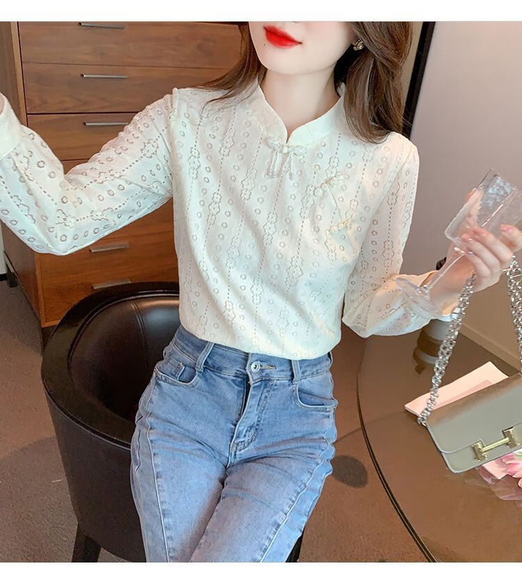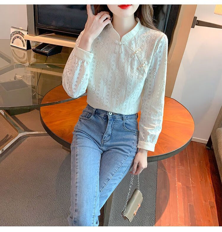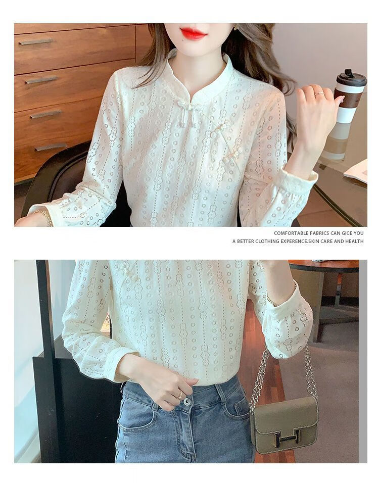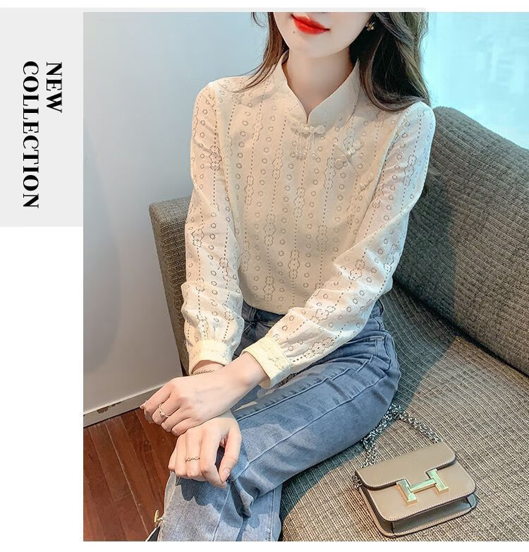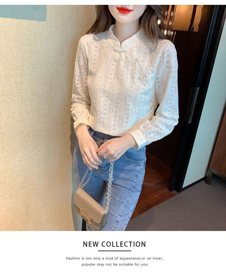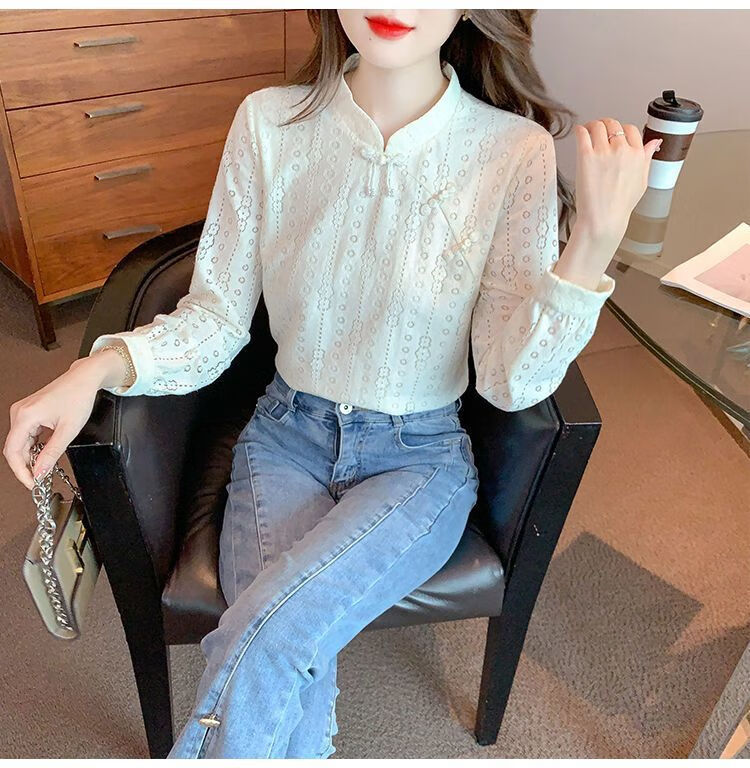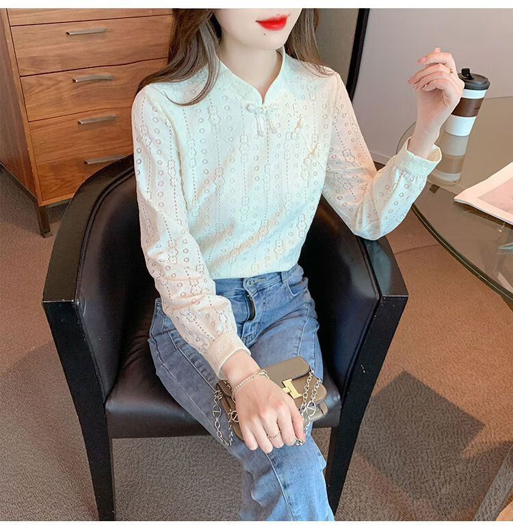 Pierre Cardin plus velvet thickened lace bottoming shirt for women autumn new button-down shirt long-sleeved shirt inner top apricot plus velvet M 95-105Jin Jin is equal to 0.5 kg