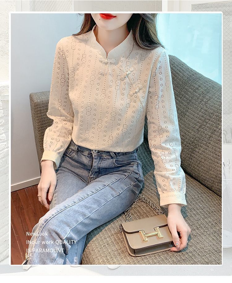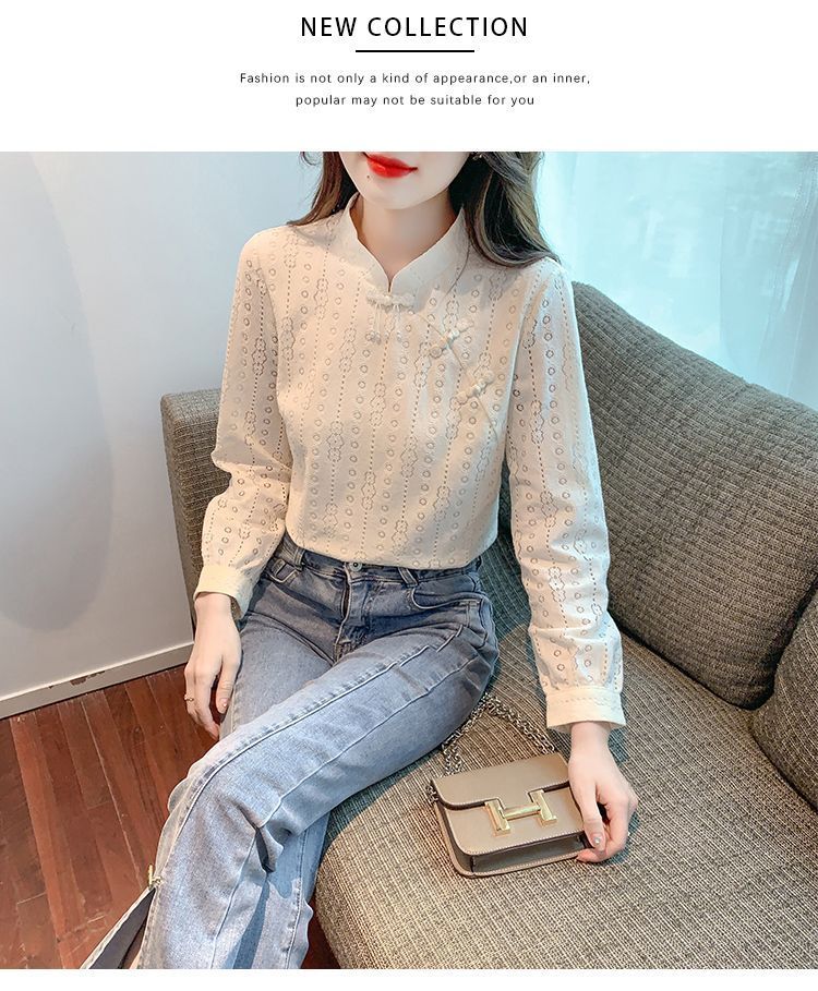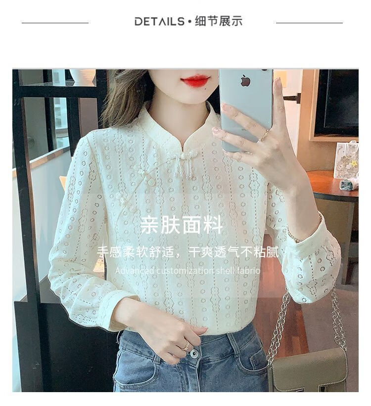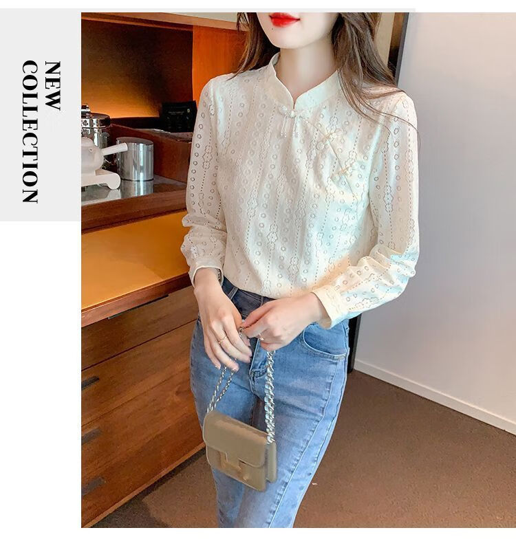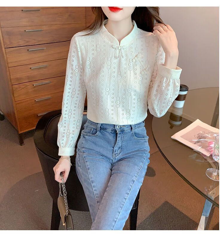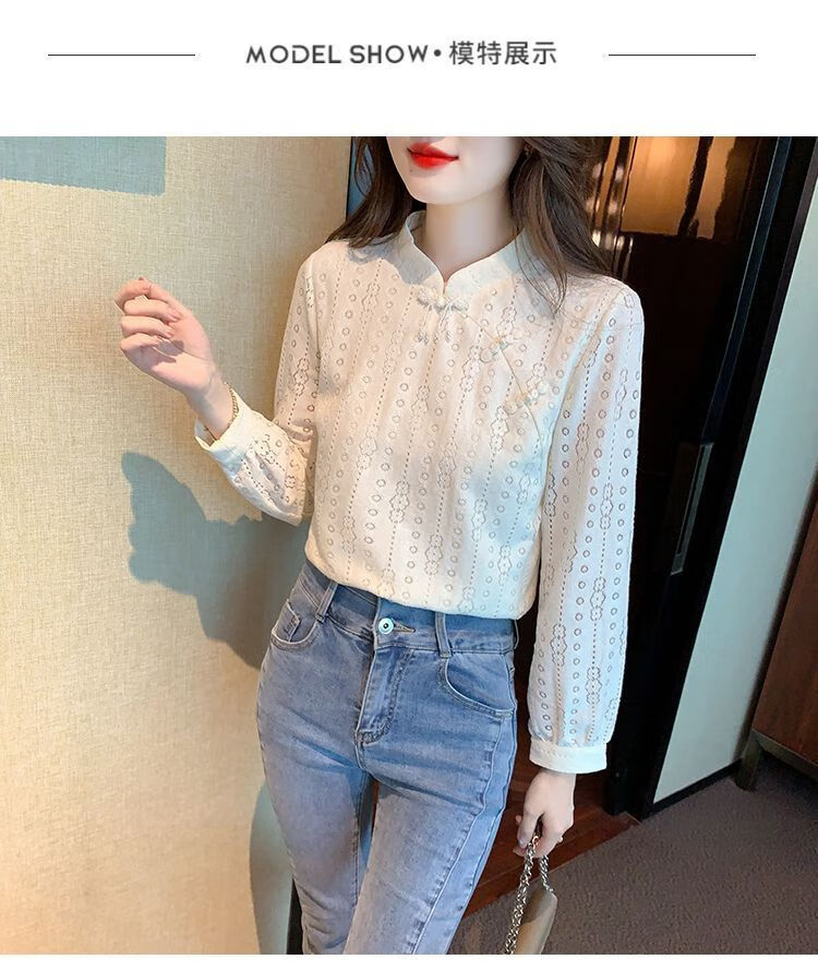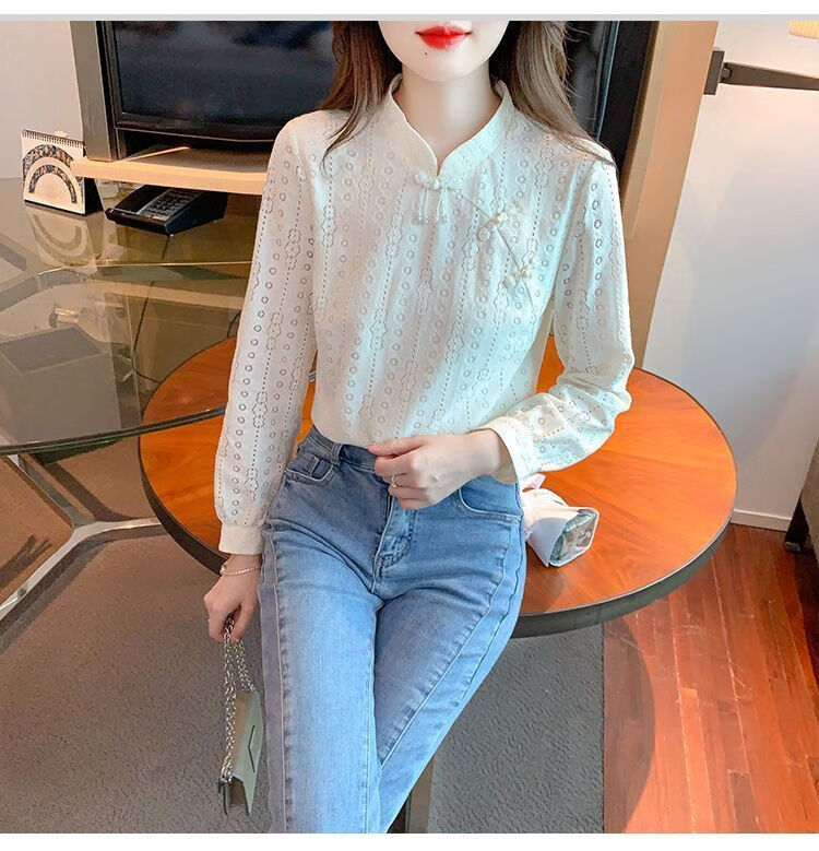 Pierre Cardin plus velvet thickened lace bottoming shirt for women autumn new button-down shirt long-sleeved shirt inner top apricot plus velvet M 95-105Jin Jin is equal to 0.5 kg
