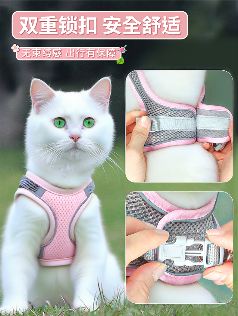 Xiaogushi Cat Traction Rope Anti-Escape Special Vest-Type Breathable Chest-Back Traction Rope for Cats to Go Out in Spring and Summer Reflective Breathable Chest-Back Traction Rope Pink Anti-Escape Model XS-Super Small Recommended 3-6 Jin Jin equals 0.5 kg