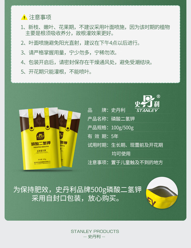 Kaooseen Stanley Potassium Dihydrogen Phosphate Fertilizer Flower Special Agricultural Phosphate Fertilizer Flower Fertilizer Phosphorus Potassium Fertilizer Foliar Fertilizer Potassium Dihydrogen Phosphate 100g