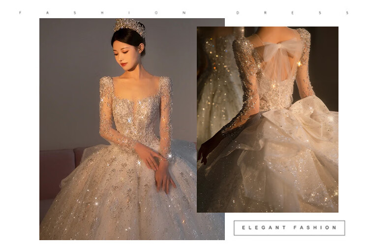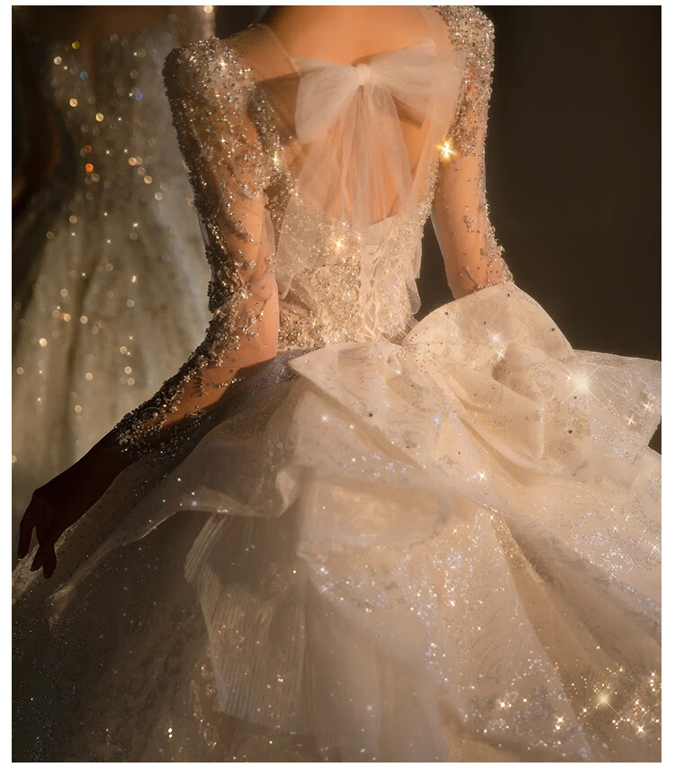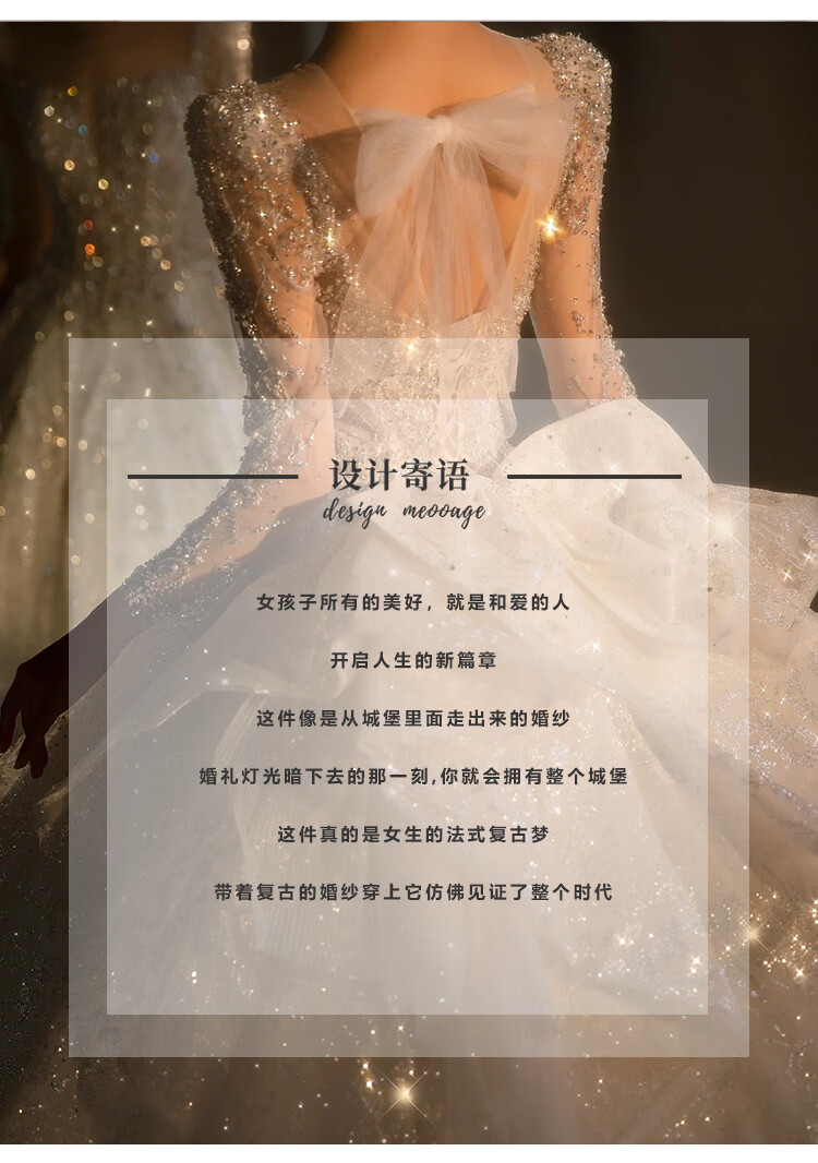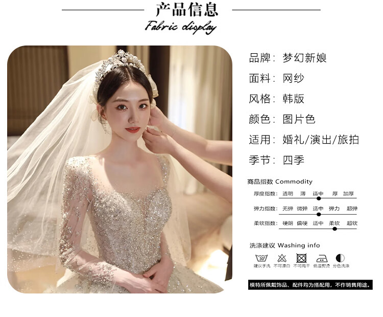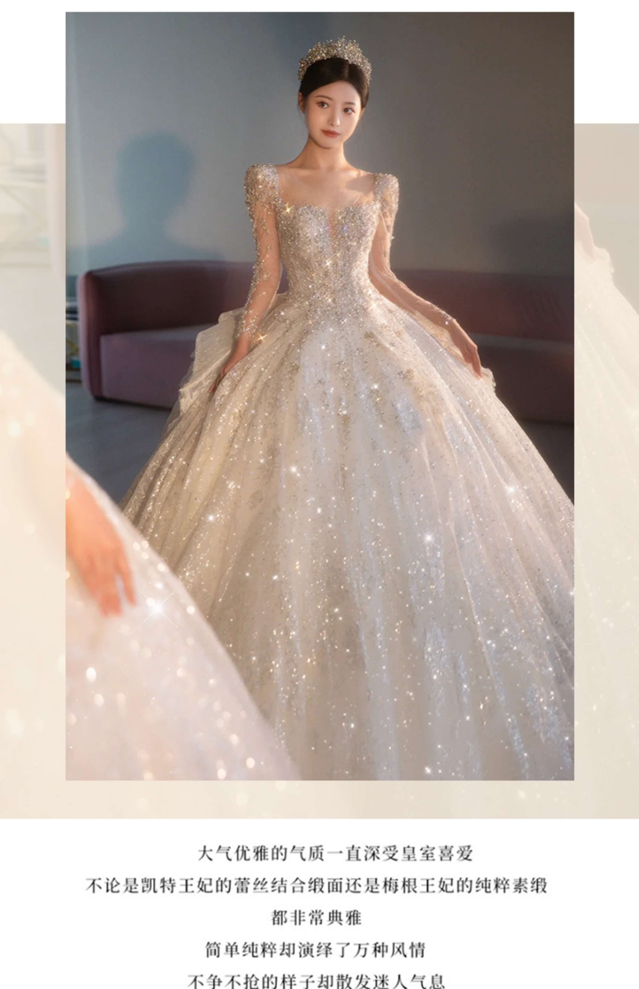 Rindu wedding dress bridal main yarn 2025 high-end winter long-sleeved heavy industry wedding dress 2025 new high-end French main yarn white white floor-length style comes with gloves + veil + skirt support S Weight 90Jin Jin is equal to about 0.5 kg