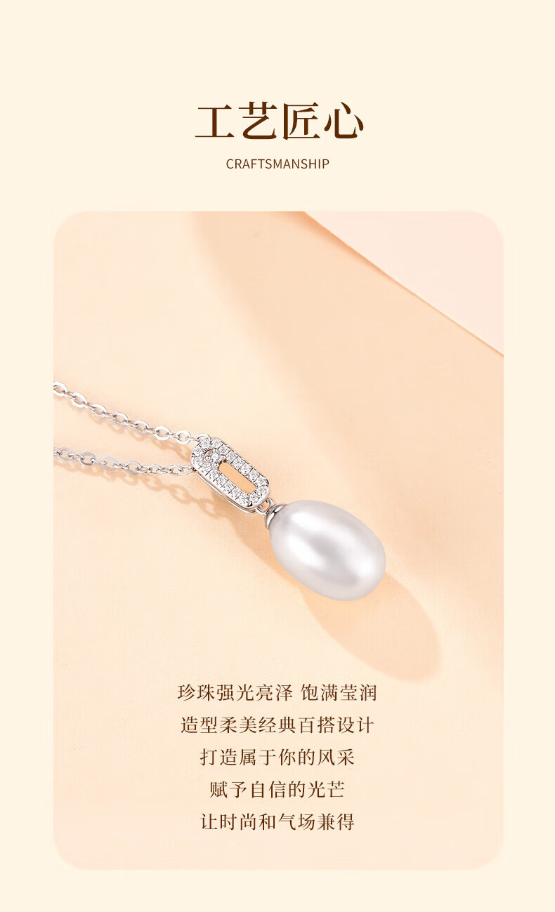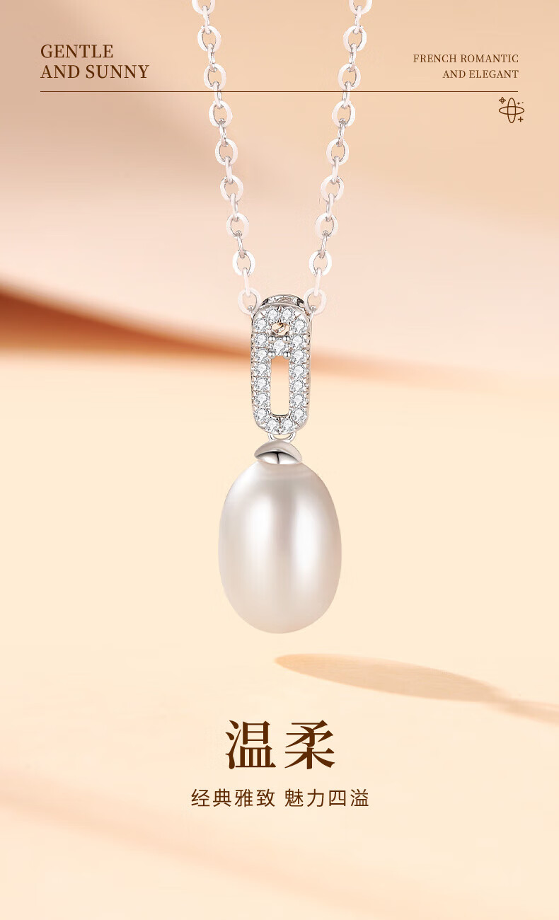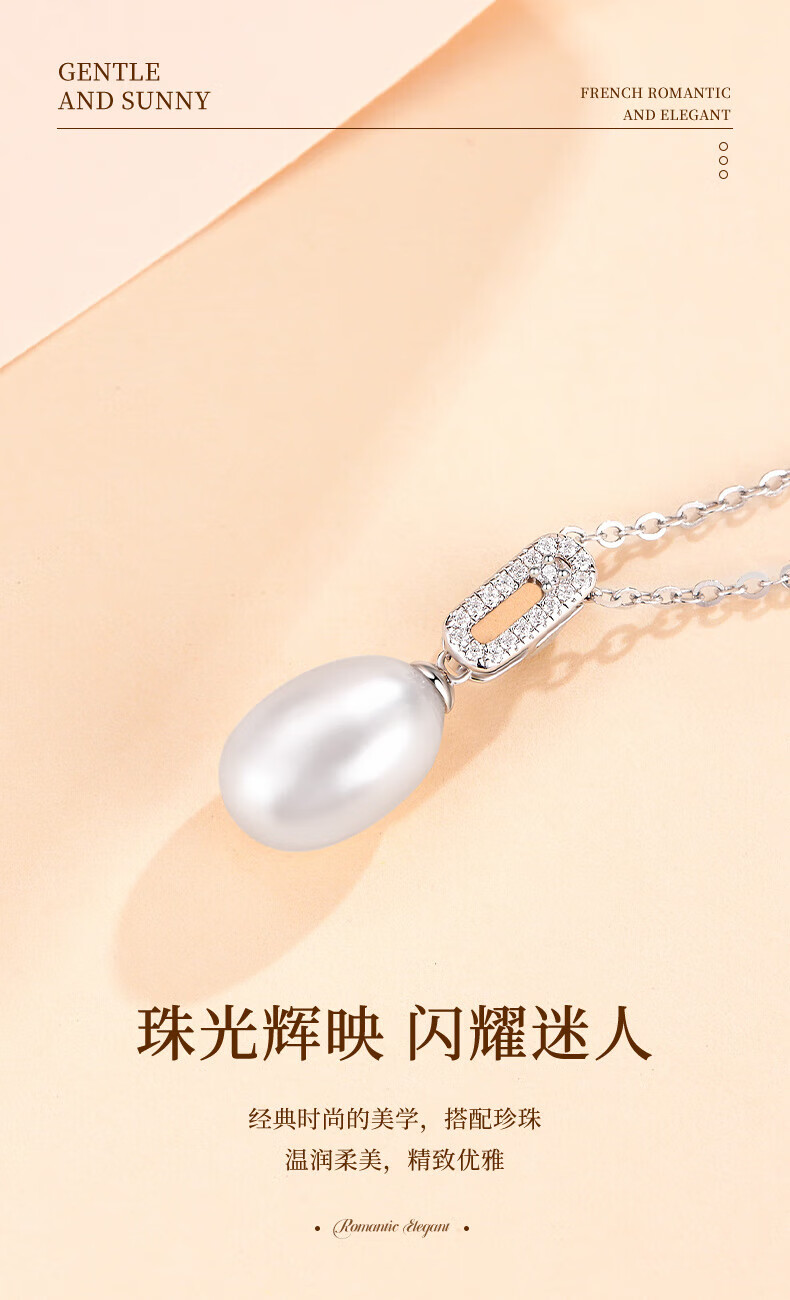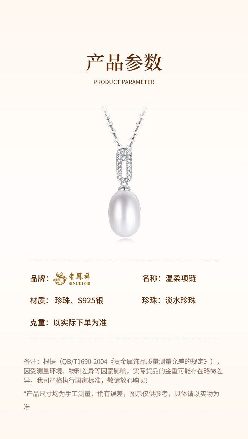Lao Fengxiang 925 silver pearl necklace women's light luxury niche clavicle lock women's birthday gift for mother, wife and girlfriend 925 silver-gentle pearl necklace brand gift box